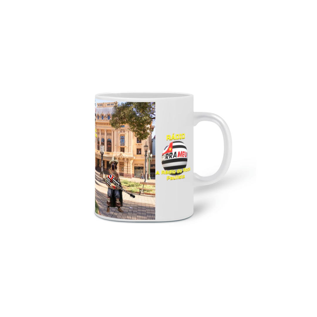 Caneca com os mascotes da ORRA MEU Rádio e TV , na PÇA XV em Ribeirão Preto SP.