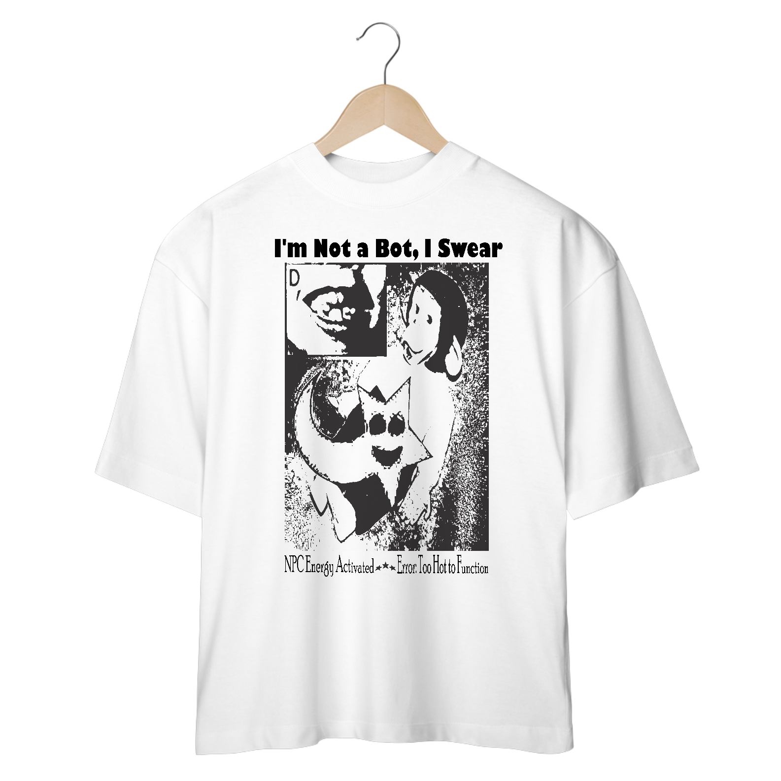 Camiseta oversized Branca Y2K, Im Not a Bot, I Swear