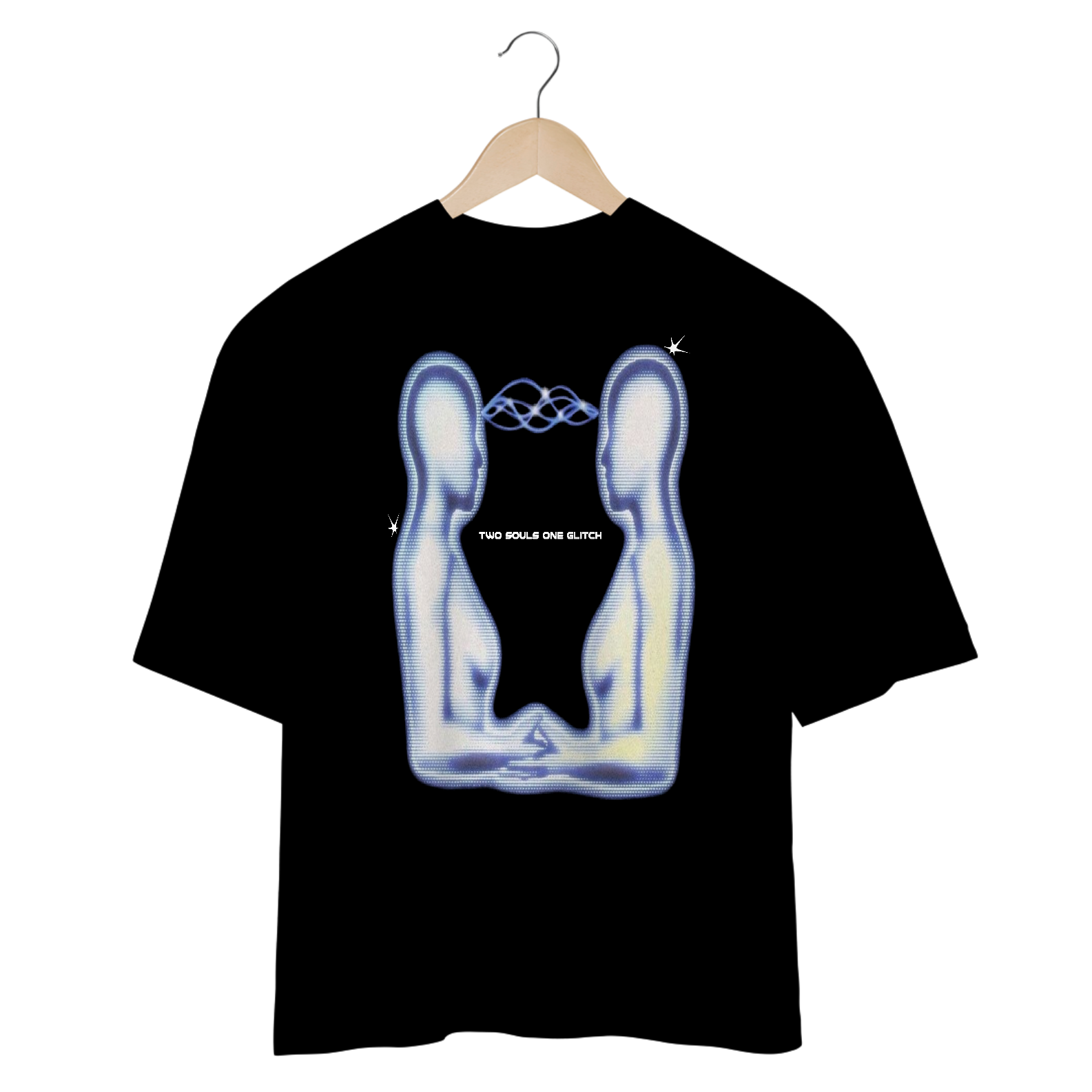 Camiseta Oversized Preta Two souls One Glitch no estilo Piscodélico com elementos y2k, essencial para quem ama camisetas diferenciadas e fora do padrão.