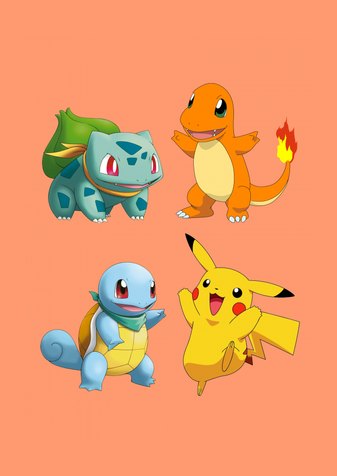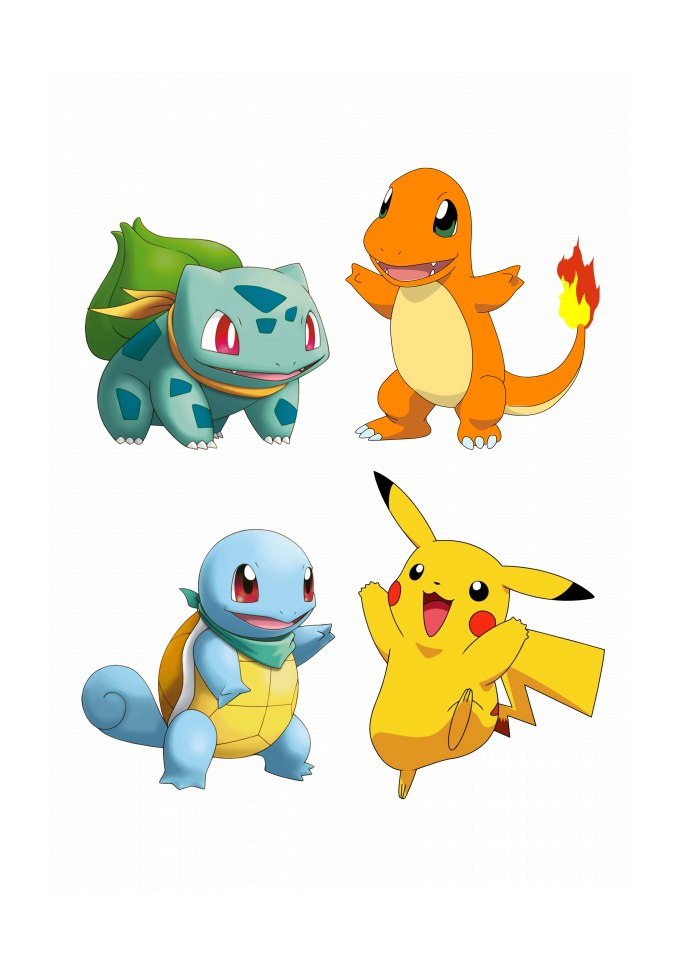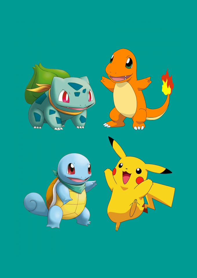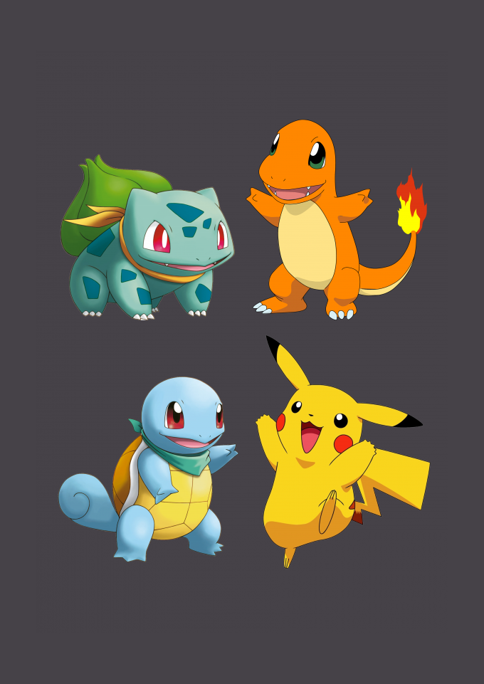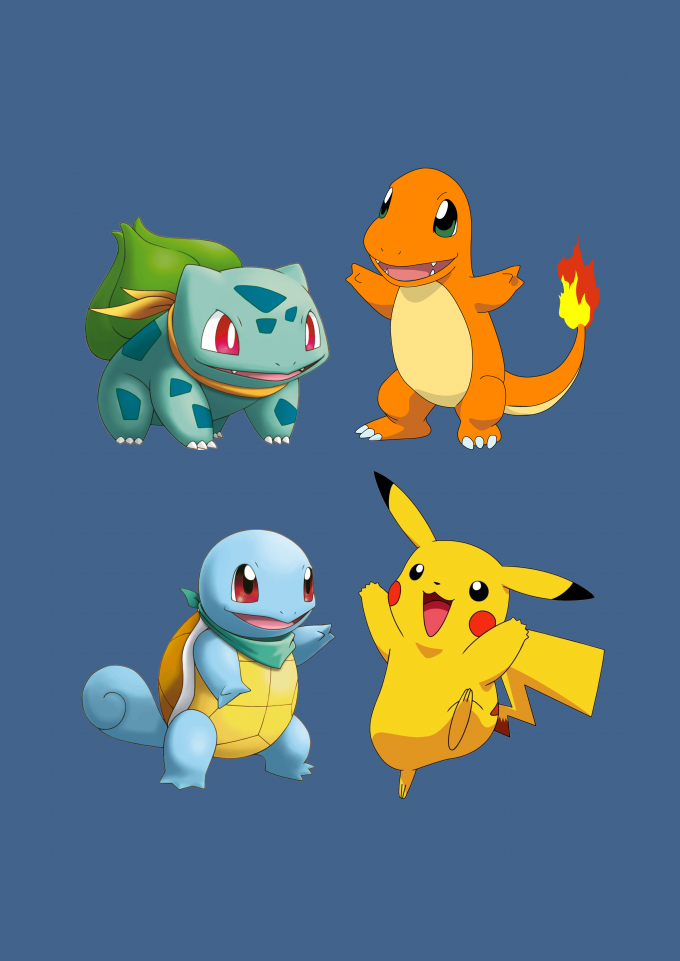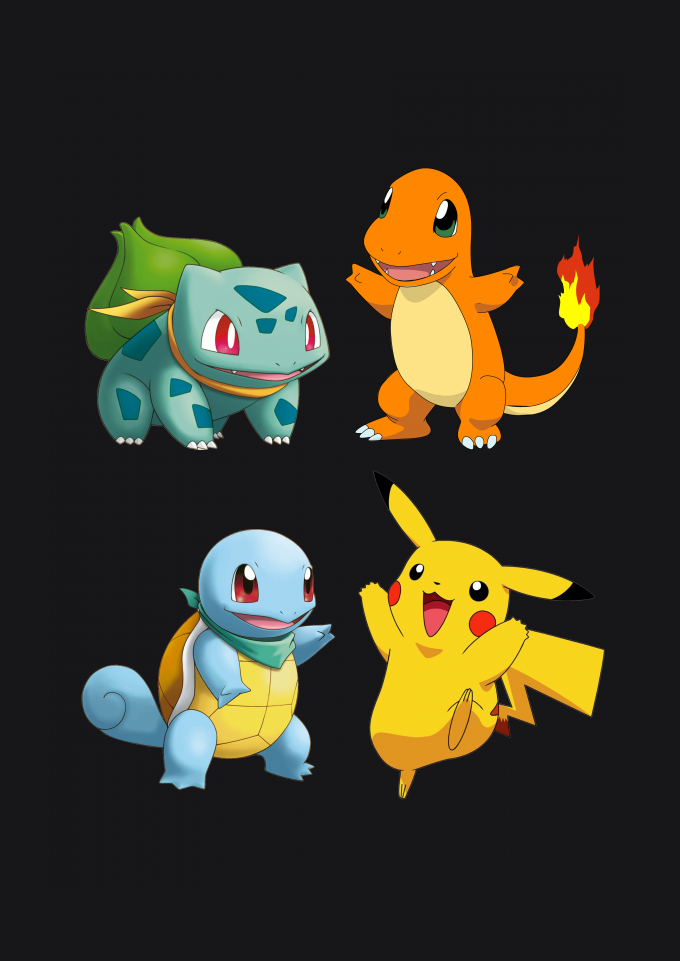 Camiseta estampada pokemon pikachu bulbasaur squirtle charmander