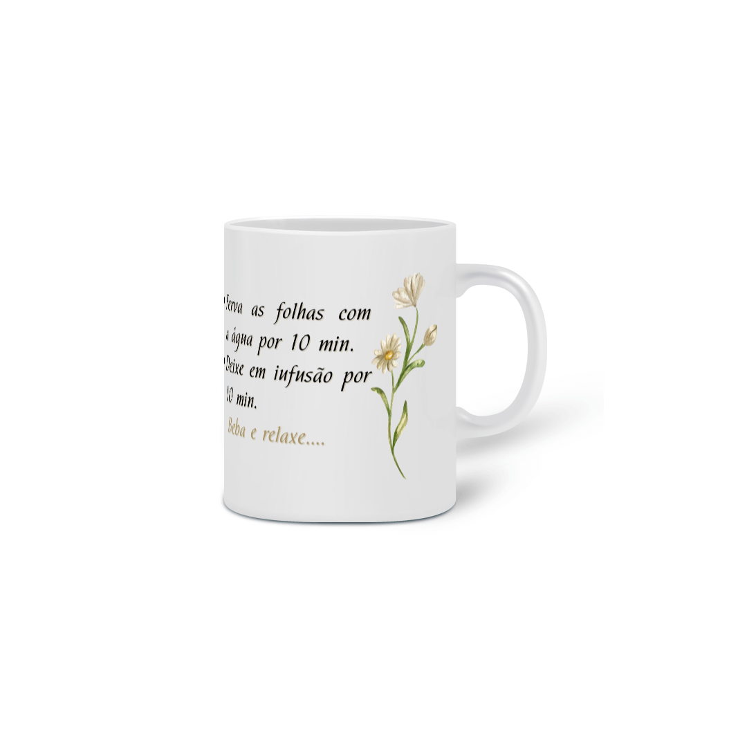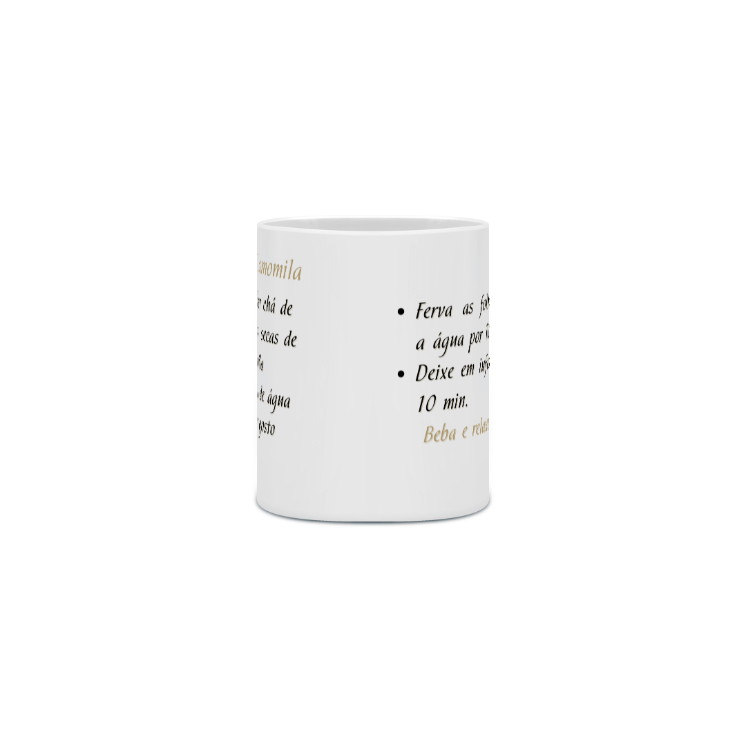 Canecas com a receita do chá:  um convite ao relaxamento em cada gole, com charme e aconchego.