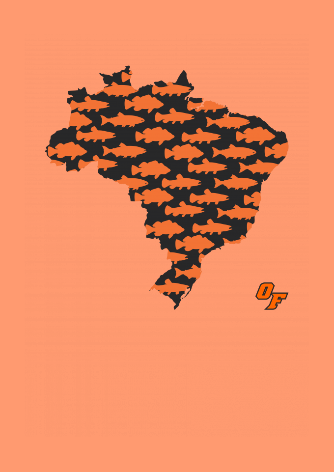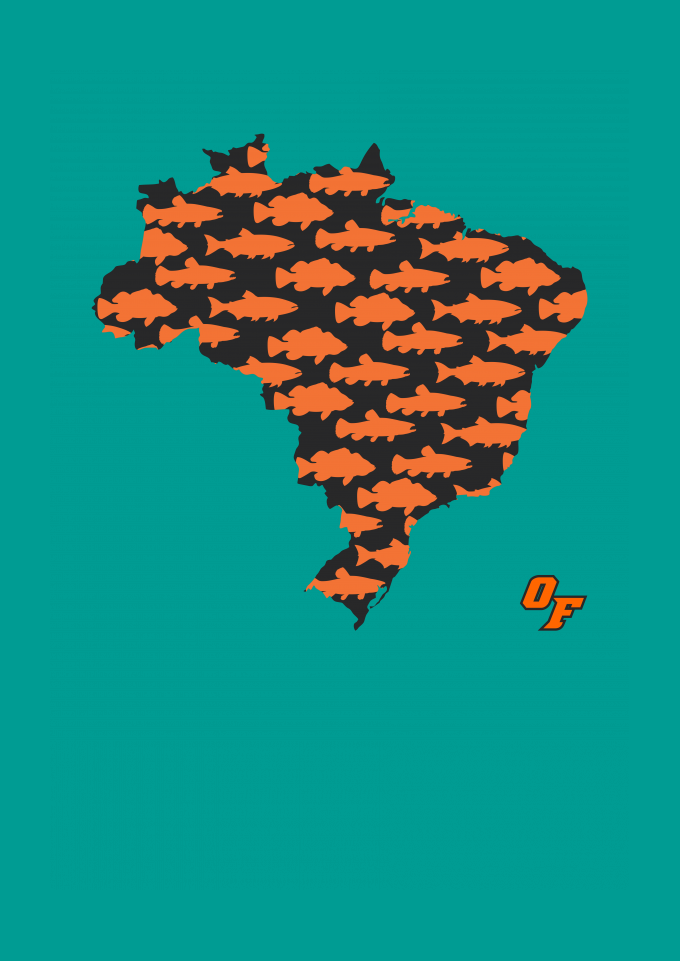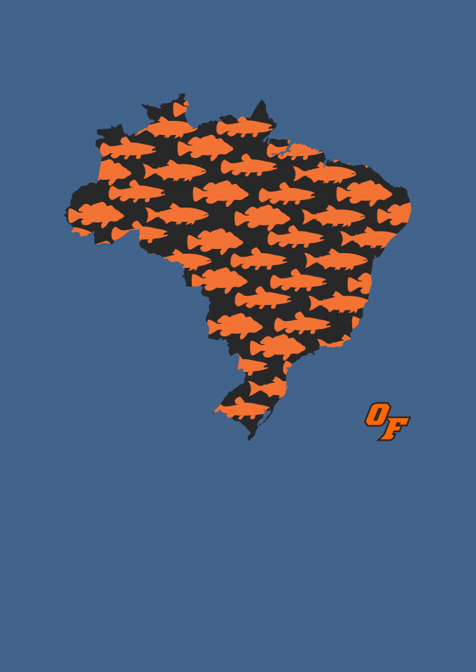 Nessa estampa homenageamos os principais peixes da pesca esportiva de água doce presentes no Brasil.