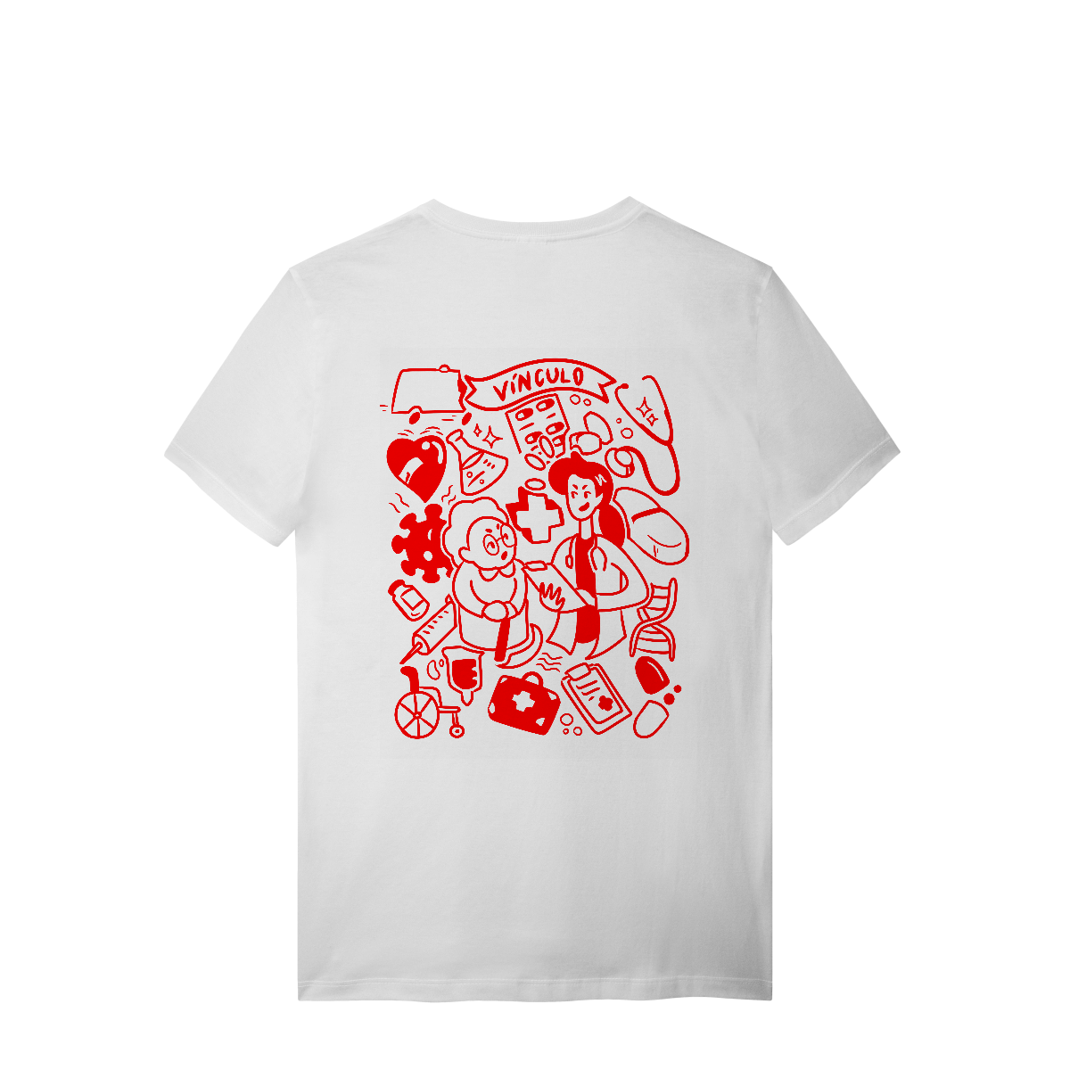 A Camiseta MFC: Vínculo foi criada por estudantes de medicina para homenagear o verdadeiro coração da Medicina de Família e Comunidade: o relacionamento humano. A arte original retrata o cuidado, a escuta e a confiança que fazem da consulta um espaço de transformação.
