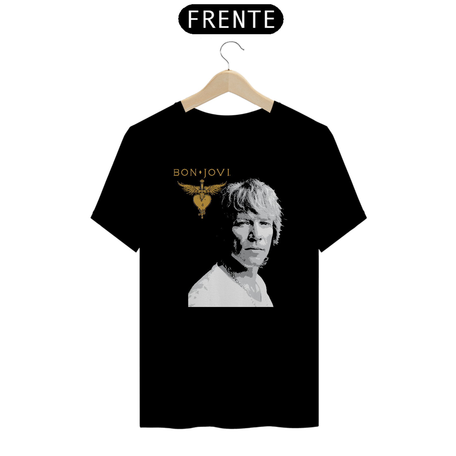 Esta camiseta apresenta uma estampa inspirada na banda Bon Jovi, ideal para os fãs de música rock. Fabricada com 100% de algodão e meia malha cardada, oferece conforto e maciez. A costura simples e gola em ribana garantem um ajuste confortável. Com 145g de peso e fio 24.1, é uma opção leve e respirável. A técnica de impressão utilizada é o Silk Digital HD, proporcionando uma reprodução nítida e vibrante da estampa.