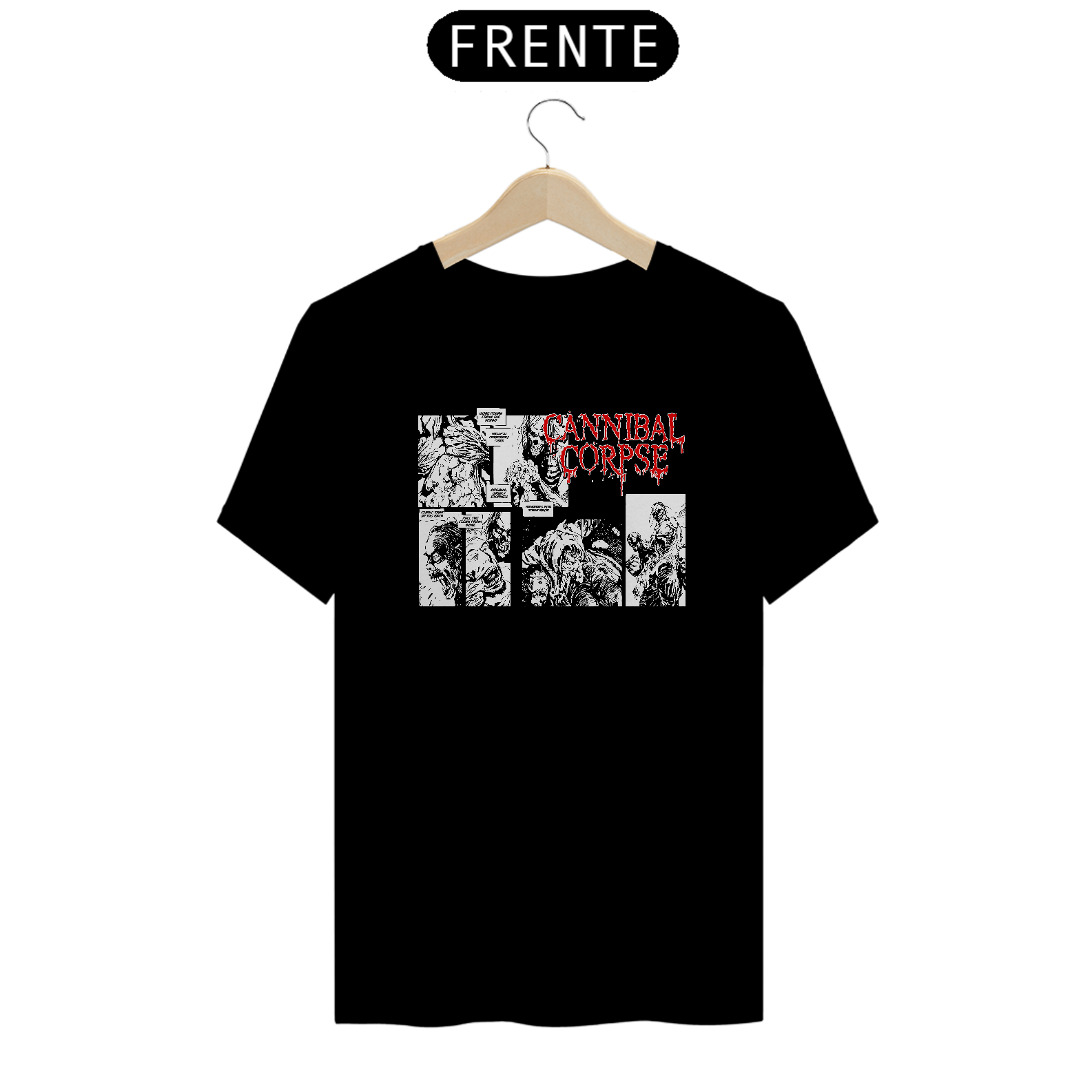 Esta camiseta apresenta uma estampa da banda Cannibal Corpse, ideal para os fãs de metal extremo. Fabricada com 100% de algodão e meia malha cardada, oferece conforto e respirabilidade. A costura simples e gola em ribana proporcionam um acabamento simples e eficiente. Com 145g de peso e fio 24.1, é uma peça leve e confortável para uso casual. A técnica de impressão utilizada é o Silk Digital HD, garantindo uma reprodução detalhada e de alta qualidade da estampa.