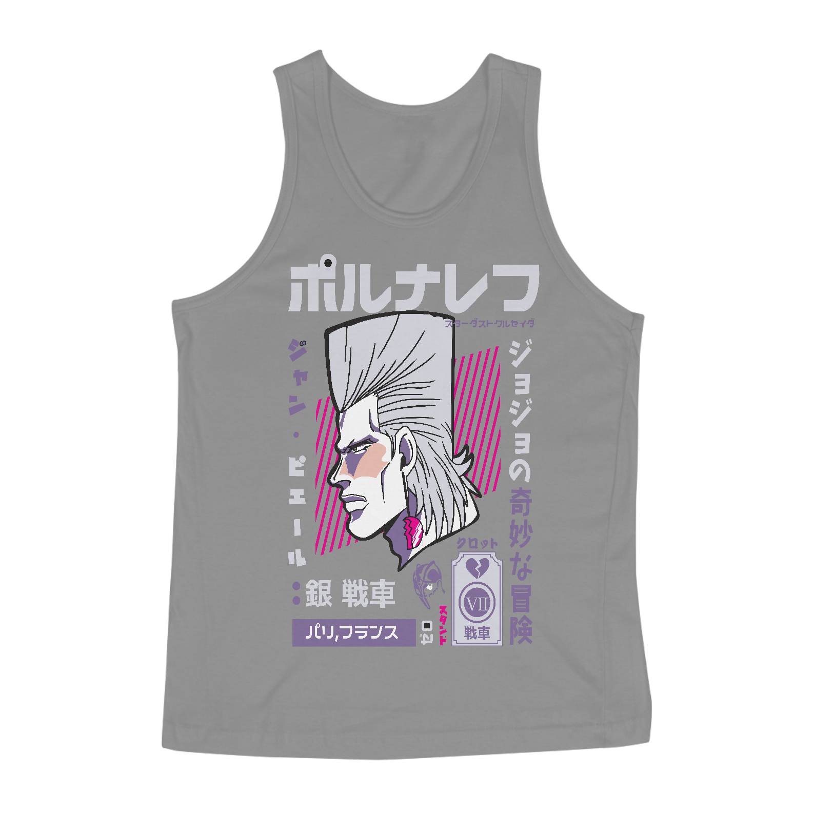 Liberte seu Stand interior e leve sua paixão por JoJo’s Bizarre Adventure para seus treinos! Feita com tecido leve e respirável, esta regata é perfeita para academia, treinos ao ar livre ou para compor um look casual cheio de atitude. Com um design inspirado na icônica saga Joestar, ela une conforto, resistência e estilo para quem quer se destacar dentro e fora do gym.