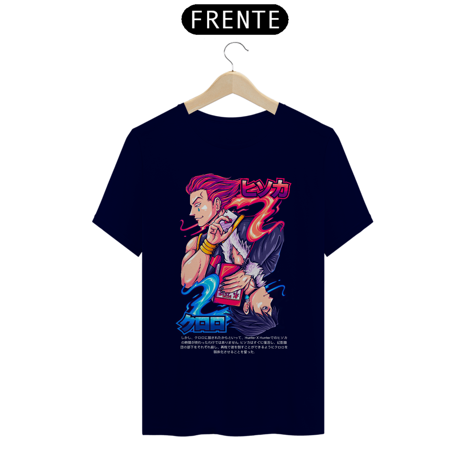 Camiseta com estampa inspirada em Hunter x Hunter, perfeita para os fãs do anime. Fabricada com 100% algodão e meia malha penteada para proporcionar conforto e durabilidade. Costura reforçada para maior resistência. Gola em ribana para um ajuste confortável ao redor do pescoço. Leve e macia, pesando 165g e utilizando fio 30.1 para uma sensação suave ao toque.