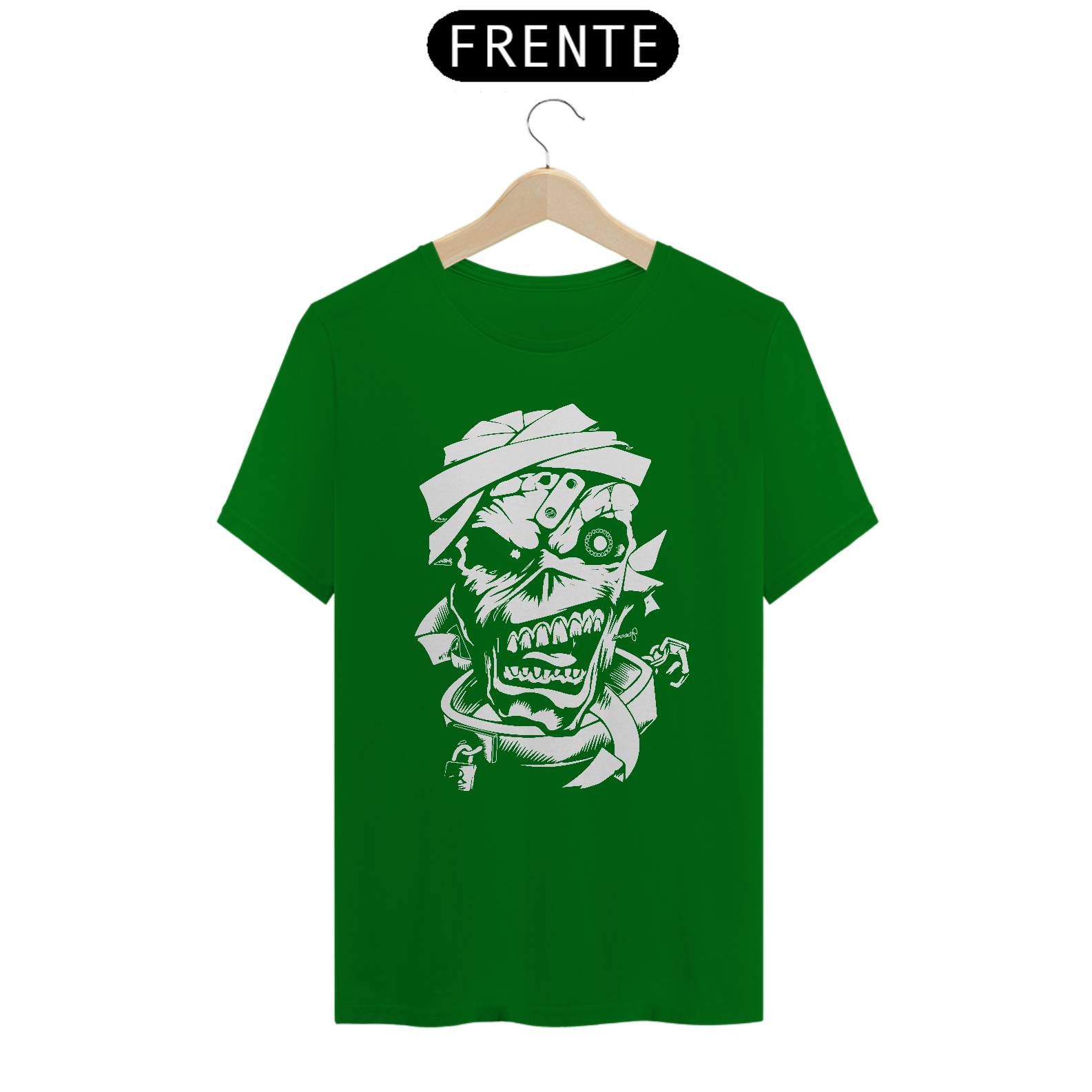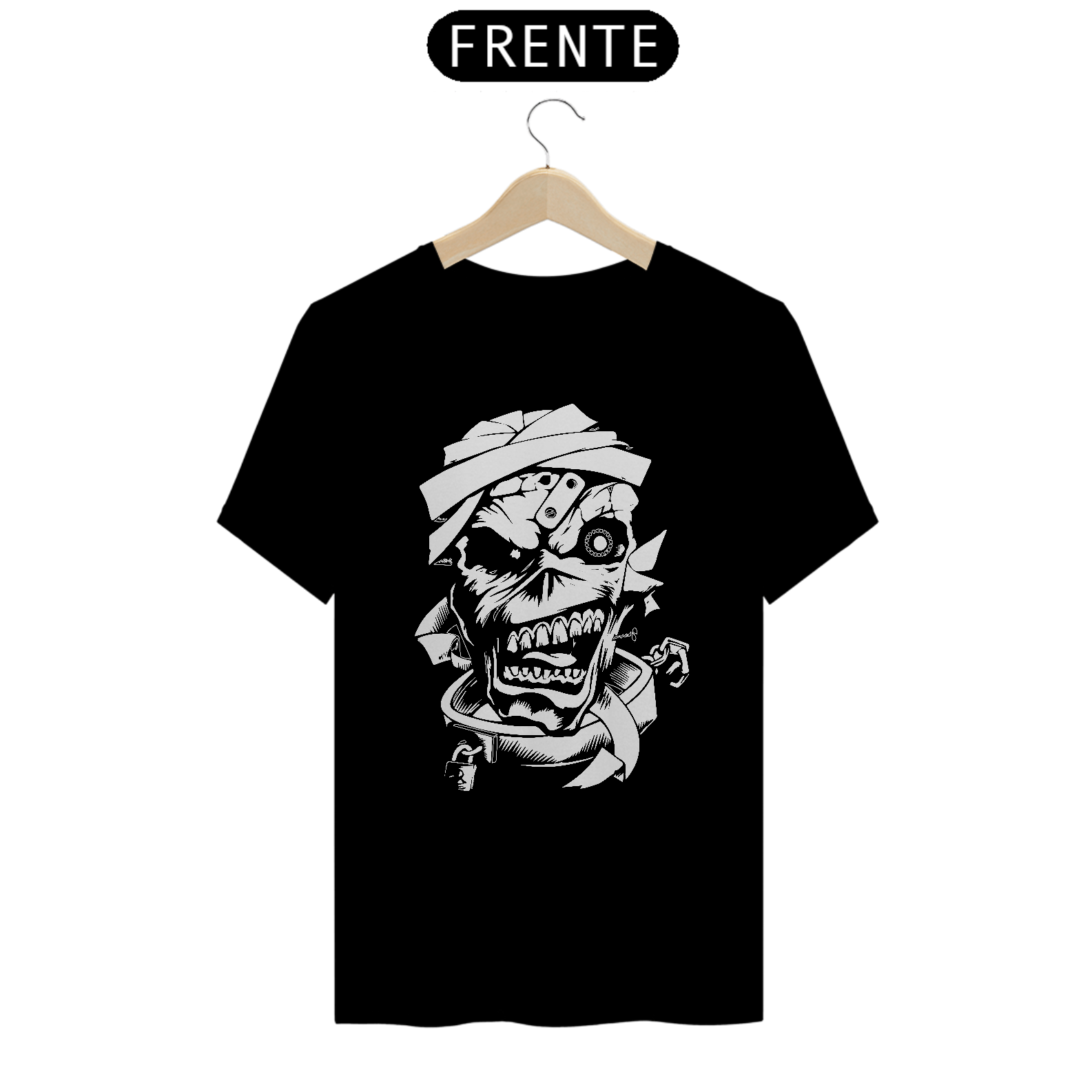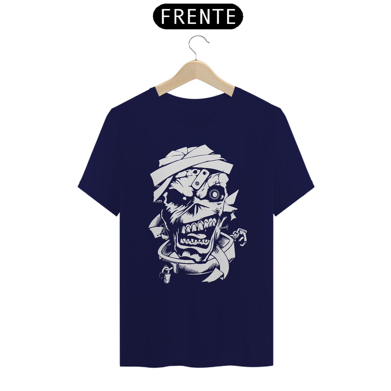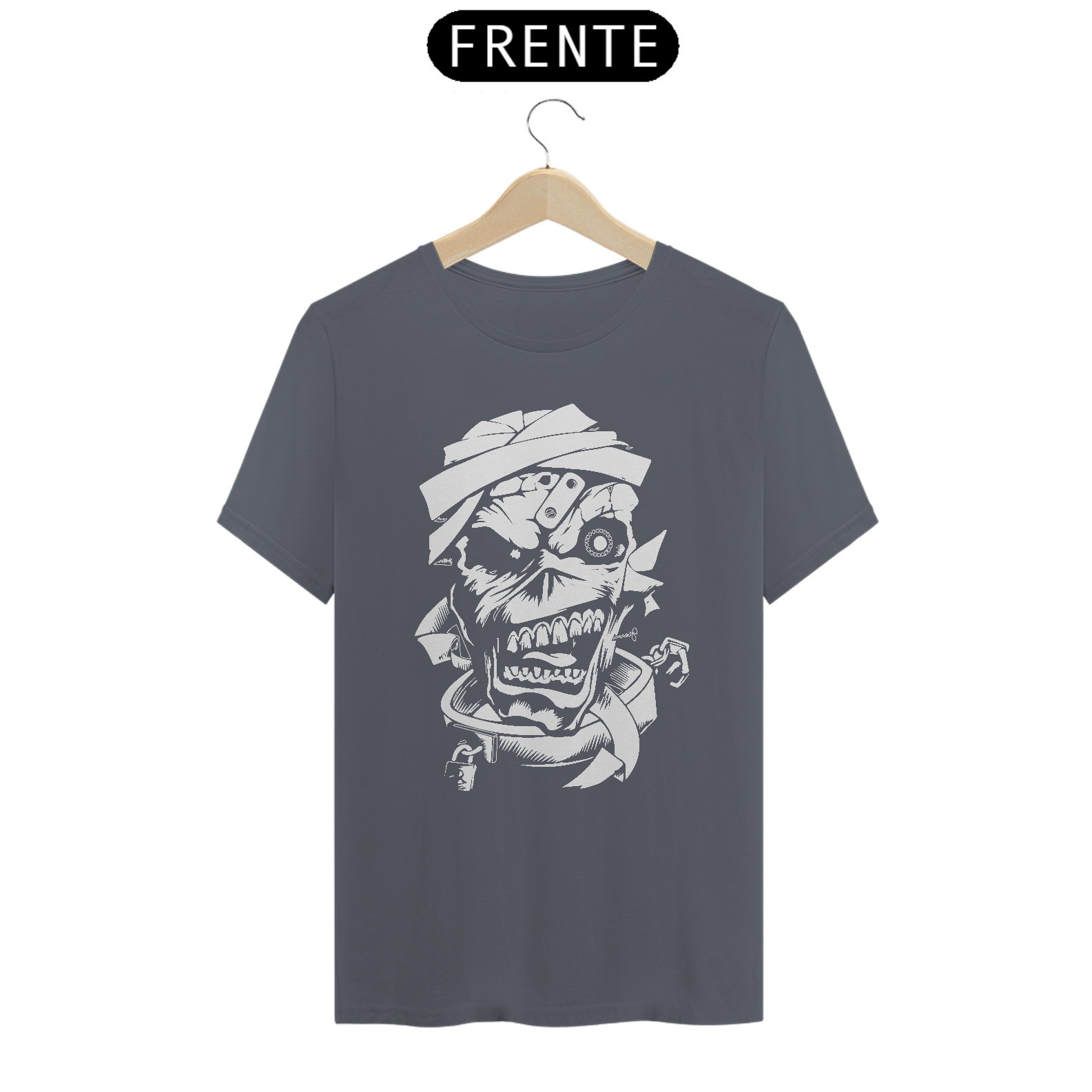 Esta camiseta apresenta uma estampa inspirada na lendária banda Iron Maiden, perfeita para os fãs de heavy metal. Fabricada com 100% de algodão e meia malha cardada, oferece conforto e maciez ao toque. A costura simples e gola em ribana garantem um acabamento clássico e casual. Com 145g de peso e fio 24.1, é uma peça leve e ideal para uso em todas as estações. A técnica de impressão utilizada é o Silk Digital HD, proporcionando uma reprodução nítida e vibrante da estampa.