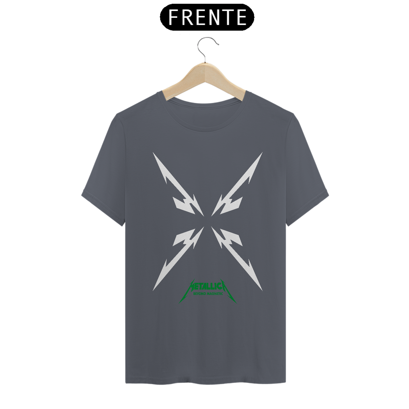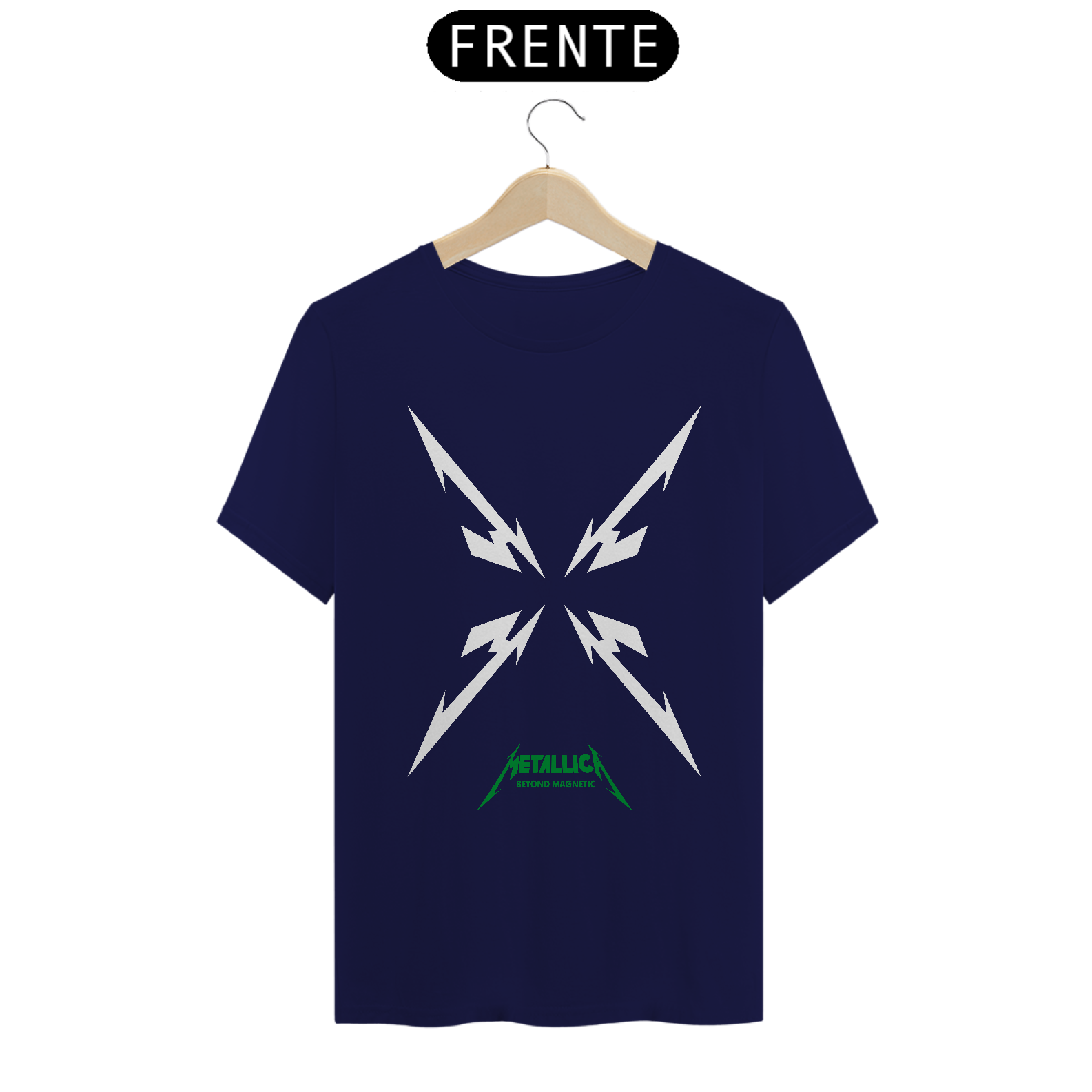 Esta camiseta destaca uma estampa inspirada na banda Metallica, ideal para os fãs de heavy metal. Fabricada com 100% de algodão e meia malha cardada, proporciona conforto e maciez. A costura simples e gola em ribana garantem um acabamento clássico. Com 145g de peso e fio 24.1, é uma peça leve e respirável, perfeita para o uso diário. A técnica de impressão utilizada é o Silk Digital HD, garantindo uma reprodução vívida e detalhada da estampa.