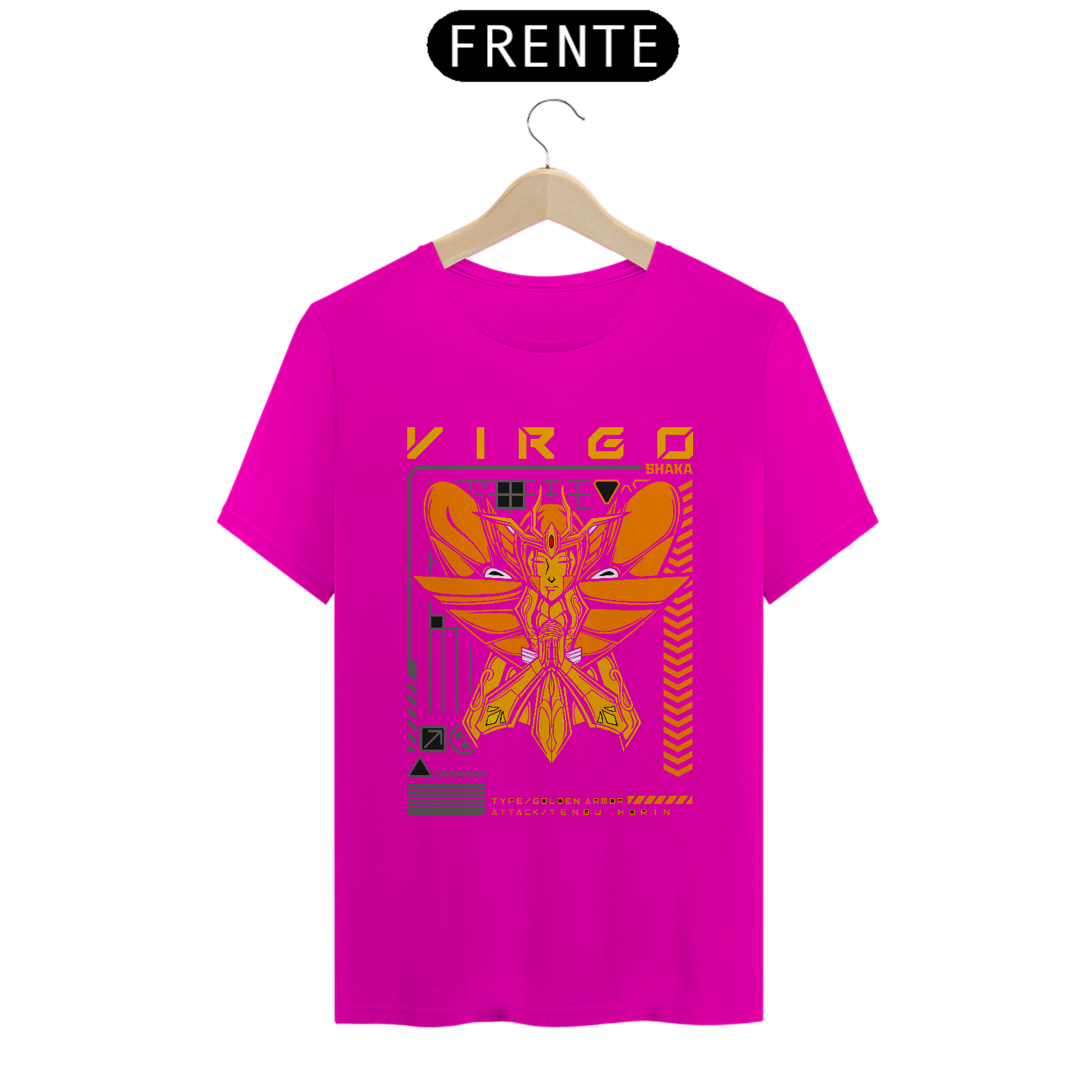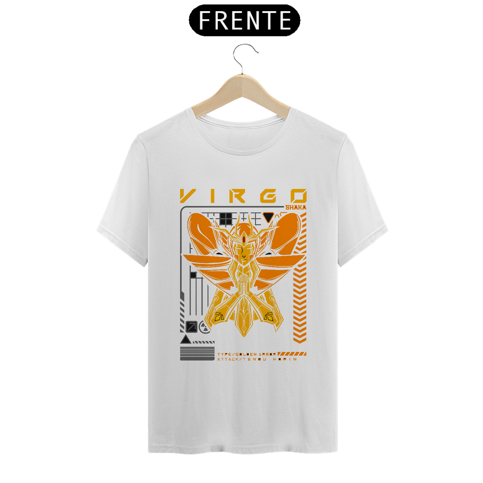 Além disso, a impressão silk digital em alta definição confere à estampa uma nitidez excepcional, trazendo à vida cada detalhe do design com cores vibrantes e duradouras. Seja para os fãs fervorosos de Saint Seiya ou para aqueles que apreciam arte e qualidade, esta camiseta é um item indispensável para qualquer guarda-roupa.