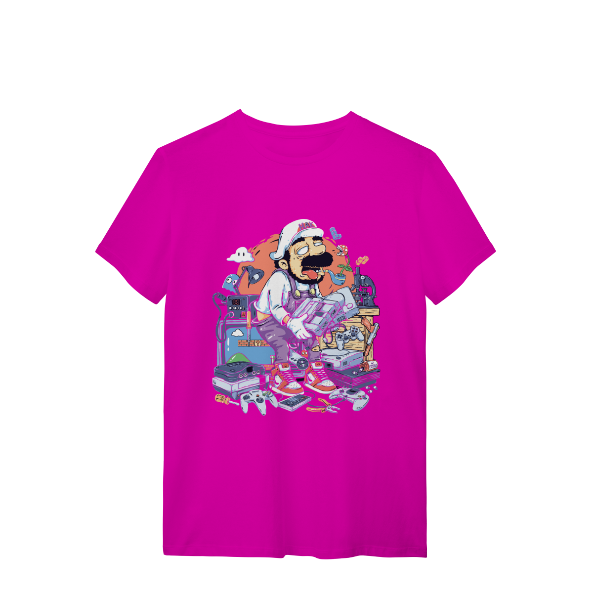 Cores do produto: Como cada tela de computador ou celular tem seu próprio jeito de mostrar cores, então a cor da sua camiseta e da estampa pode ser um pouco diferente do que você viu online.