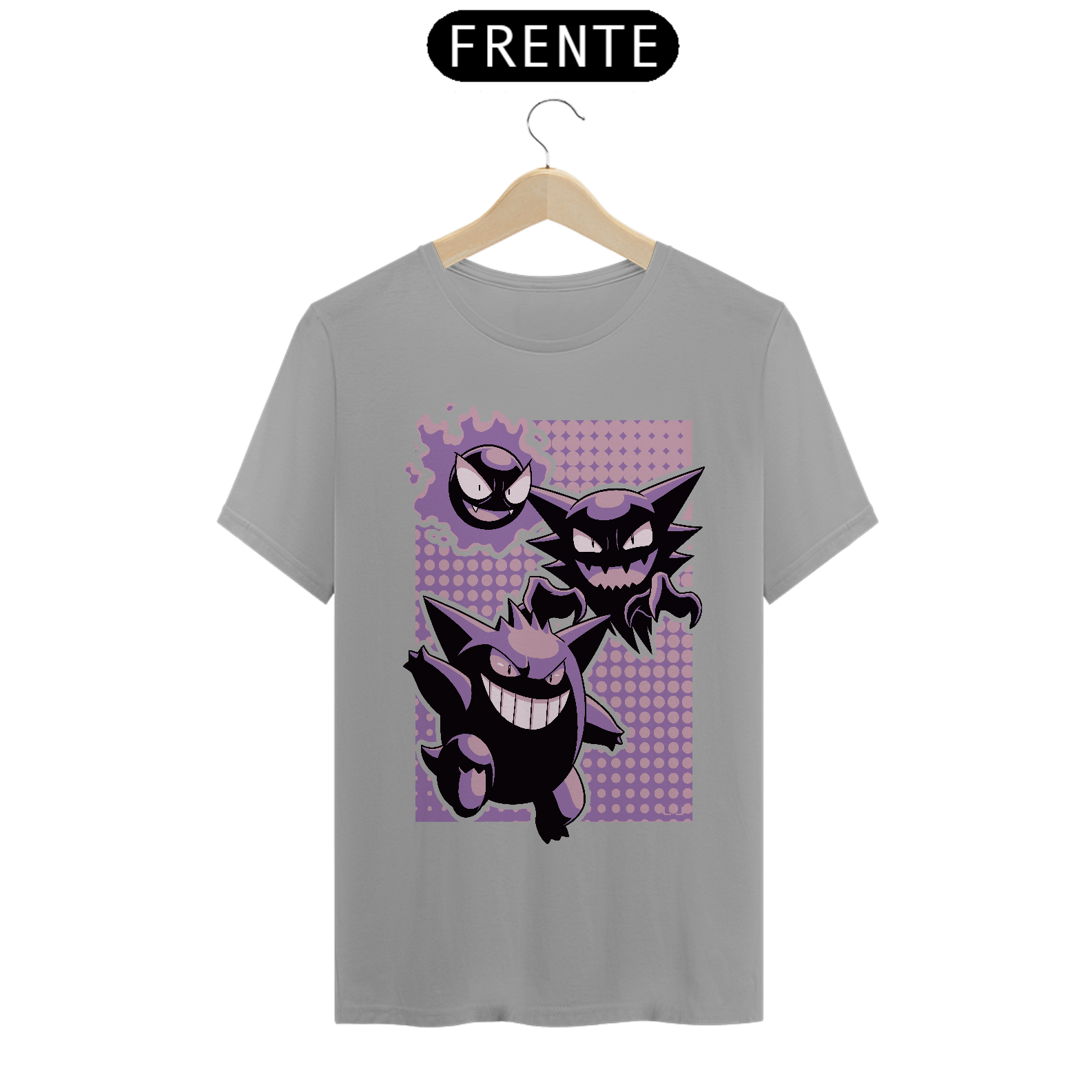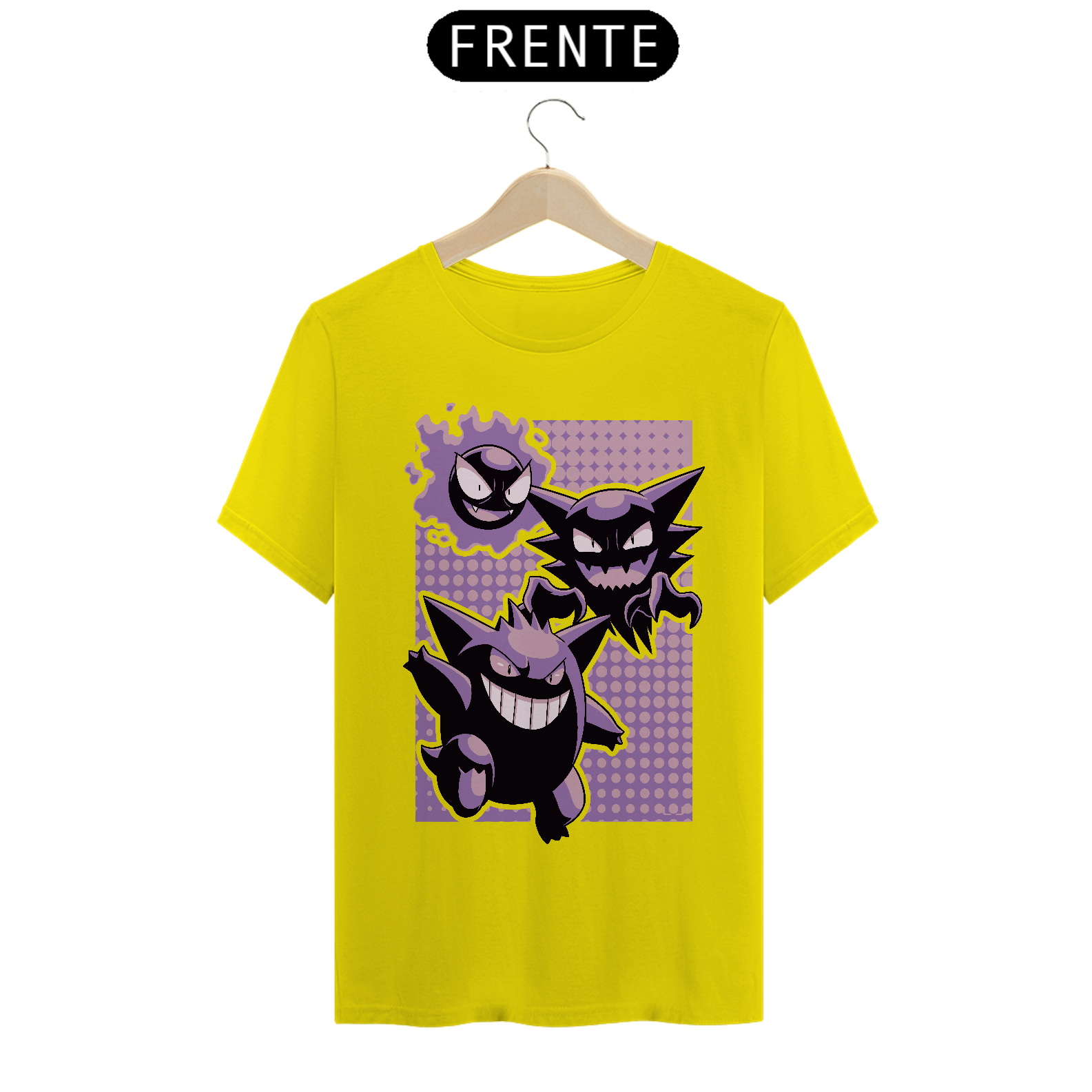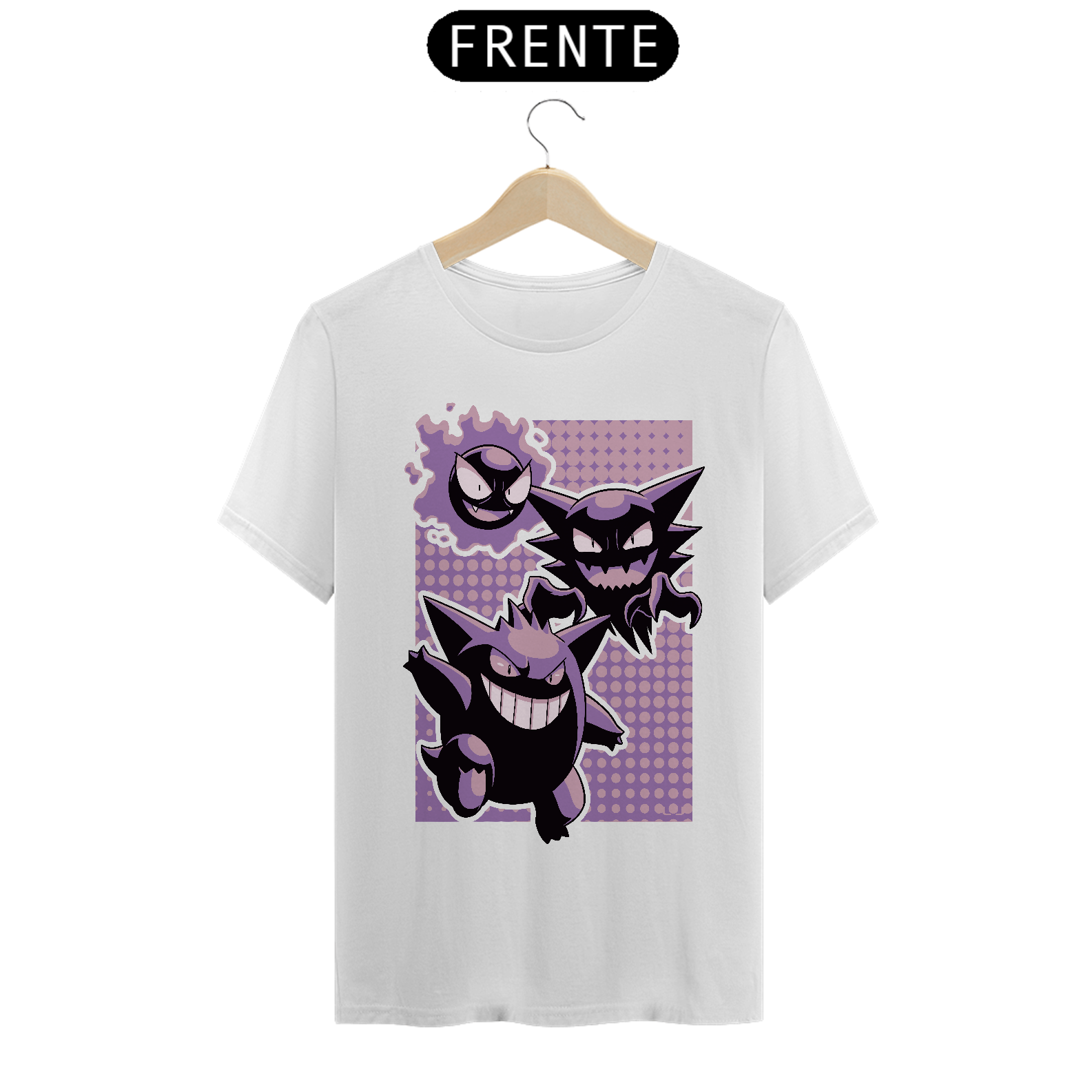 Camiseta Pokémon – Linha Evolutiva Gastly, Haunter e Gengar: Estilo Sobrenatural em Cada Fase!