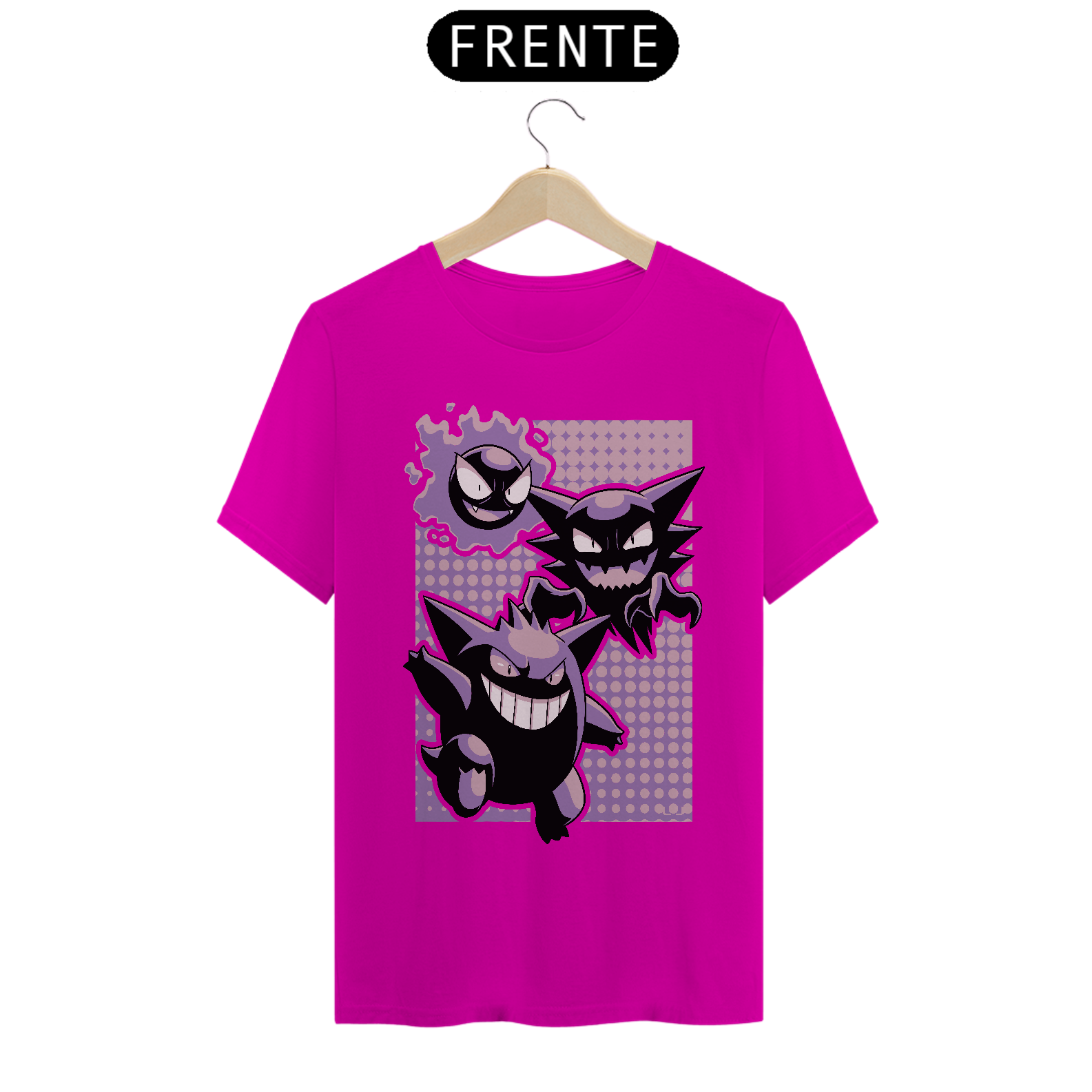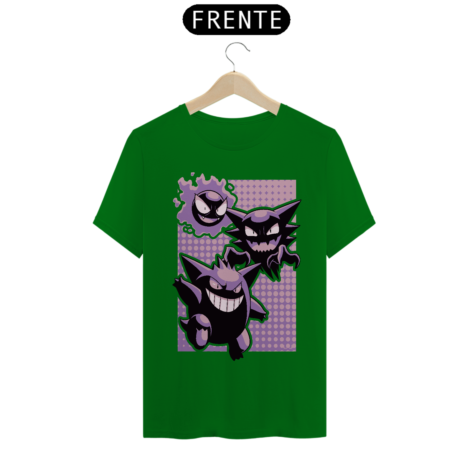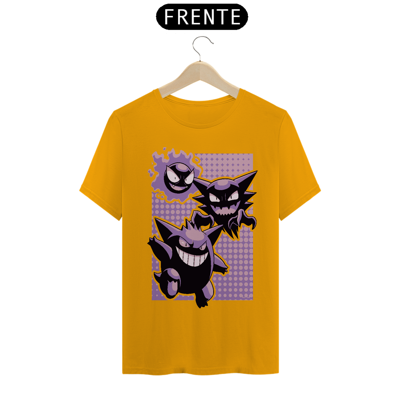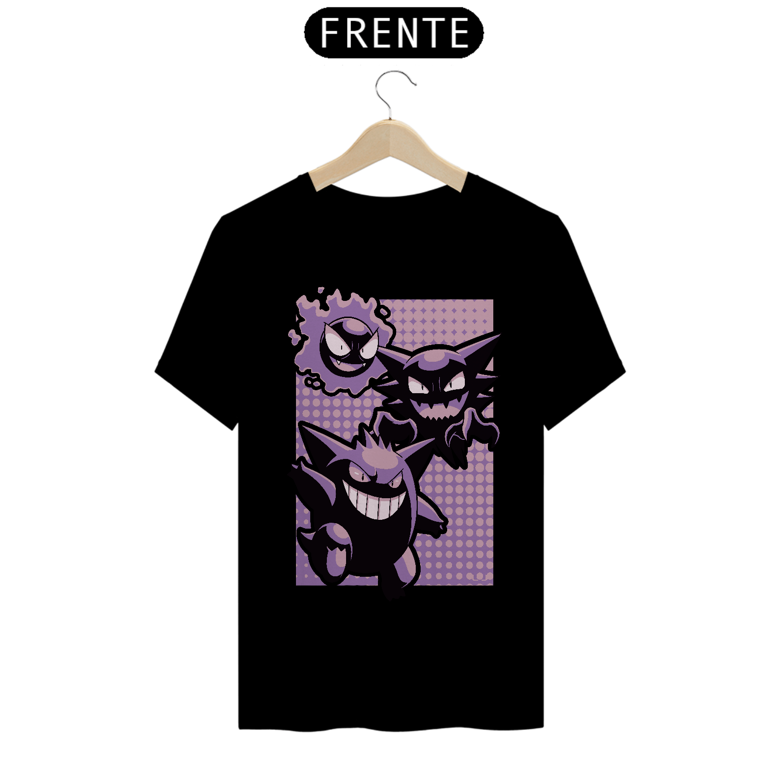 Camiseta Pokémon – Linha Evolutiva Gastly, Haunter e Gengar: Estilo Sobrenatural em Cada Fase!