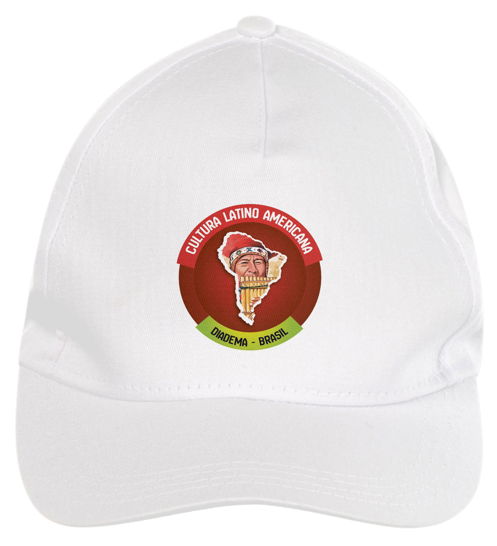 Boné americano com transfer frontal em alta qualidade, aba curva e fecho em tira totalmente regulável com pinos. O modelo veste tamanho "único".