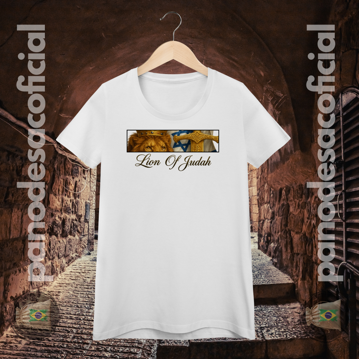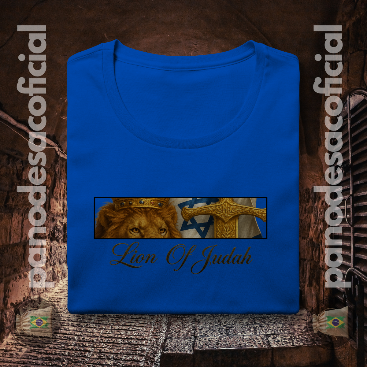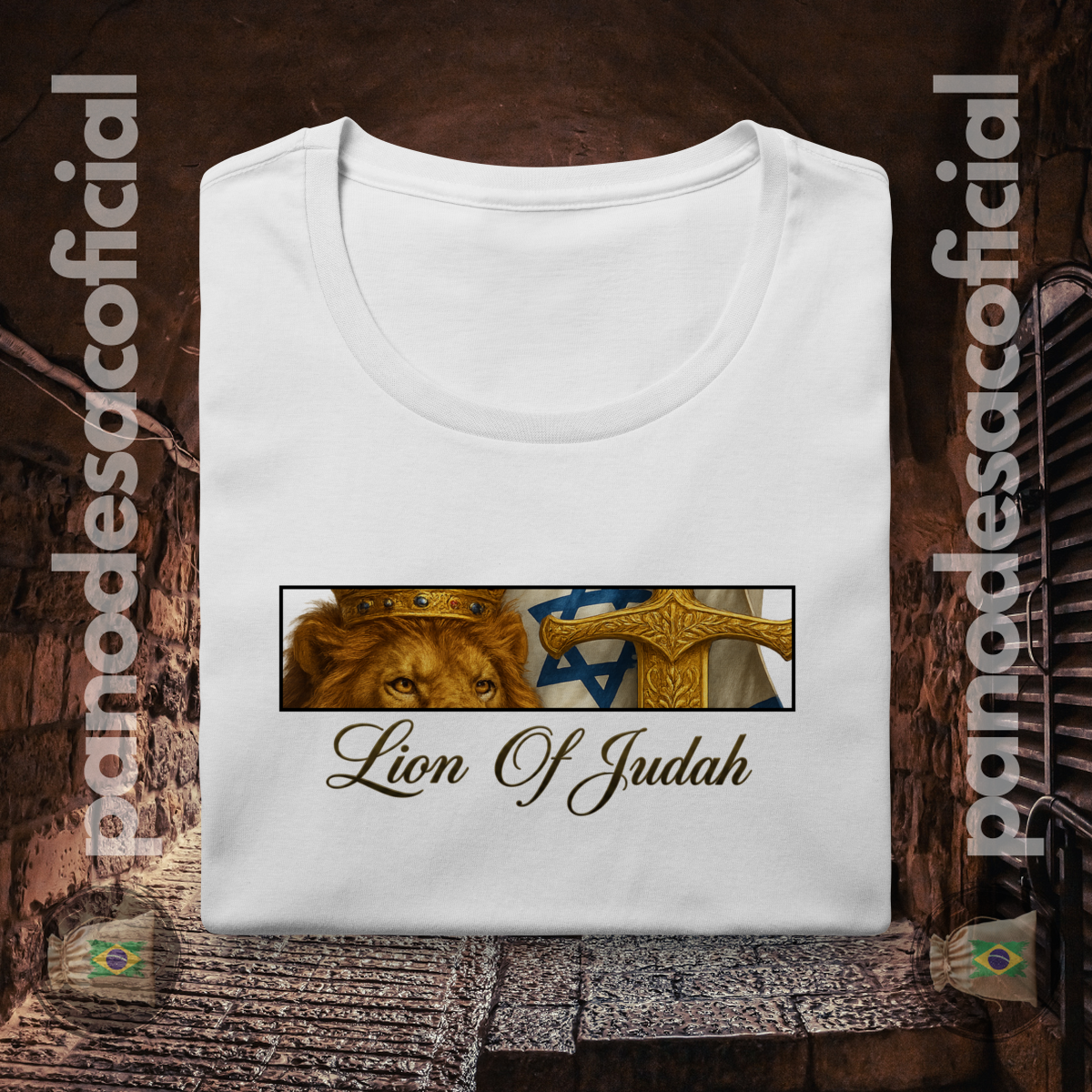 • Estampa Premium: A arte do Leão, do Cordeiro, da Espada Dourada e da Bandeira é aplicada com tecnologia premium, oferecendo detalhes realistas, cores ricas e altíssima durabilidade.