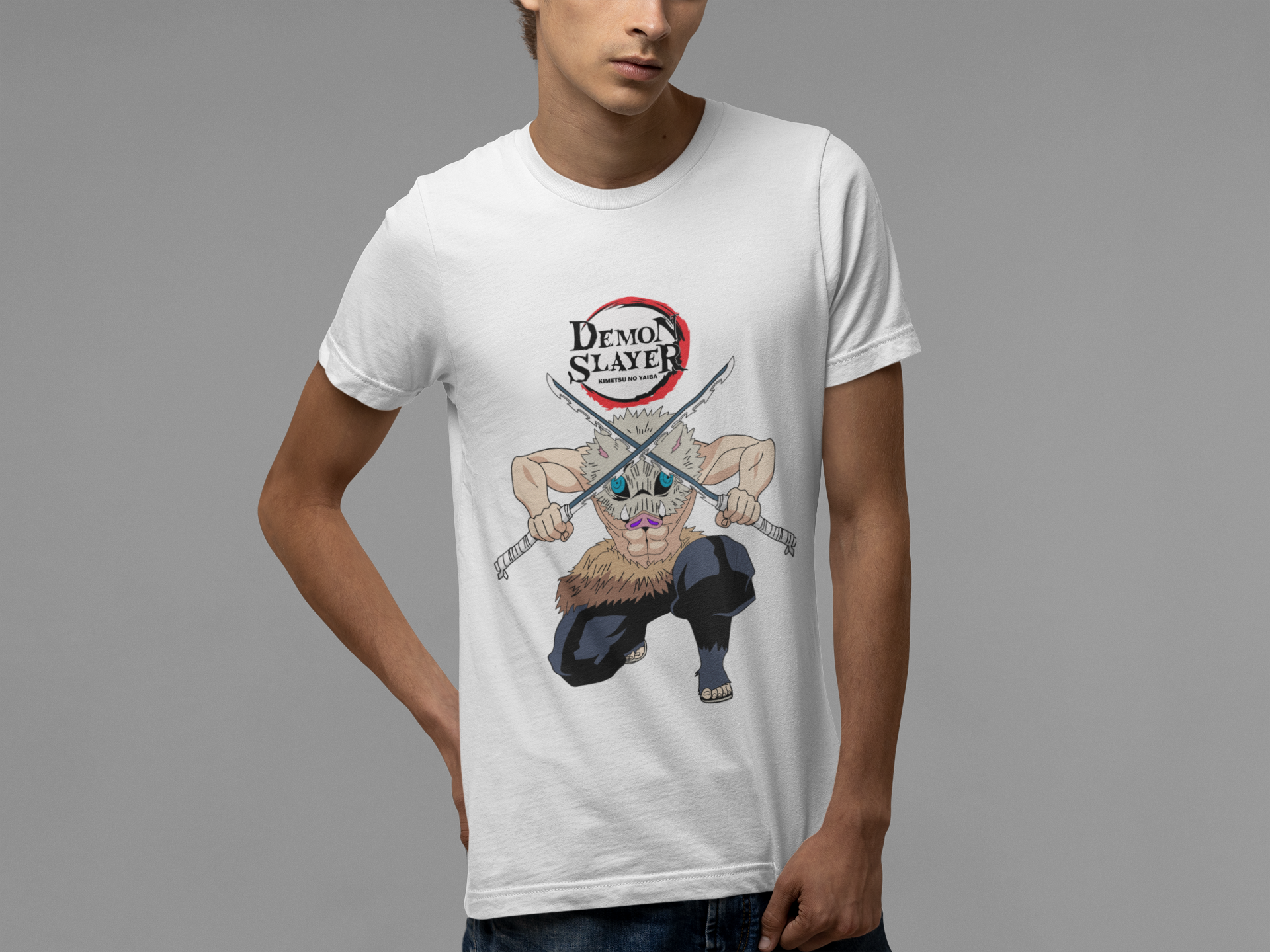 Esta camisa é uma homenagem vibrante e intrépida a Inosuke Hashibira, o membro selvagem e destemido dos Caçadores de Demônios de "Demon Slayer: Kimetsu no Yaiba". Projetada para os verdadeiros fãs de Inosuke, esta peça de vestuário captura a essência única e a bravura do personagem.