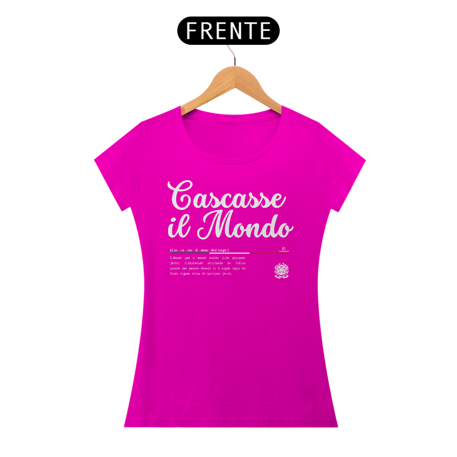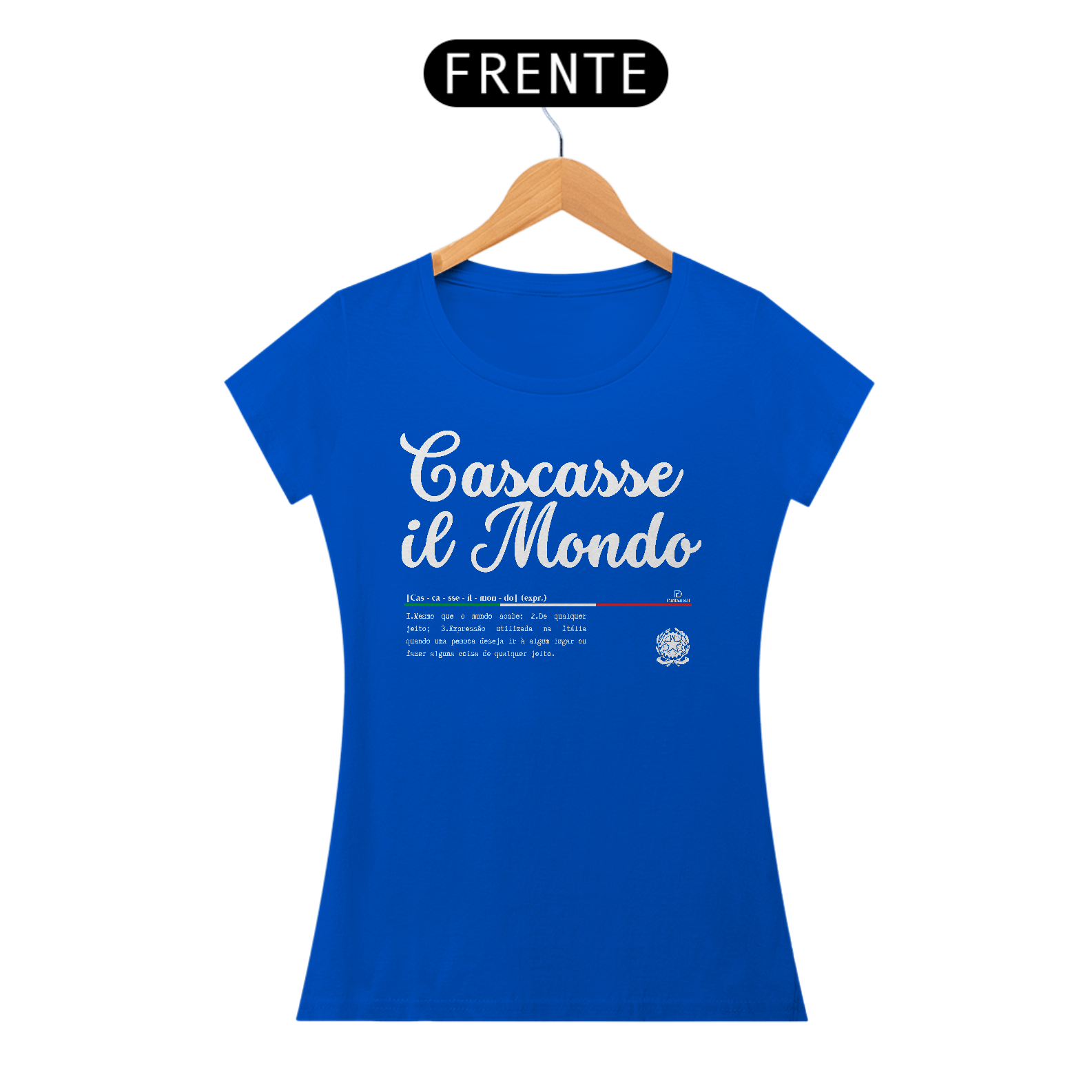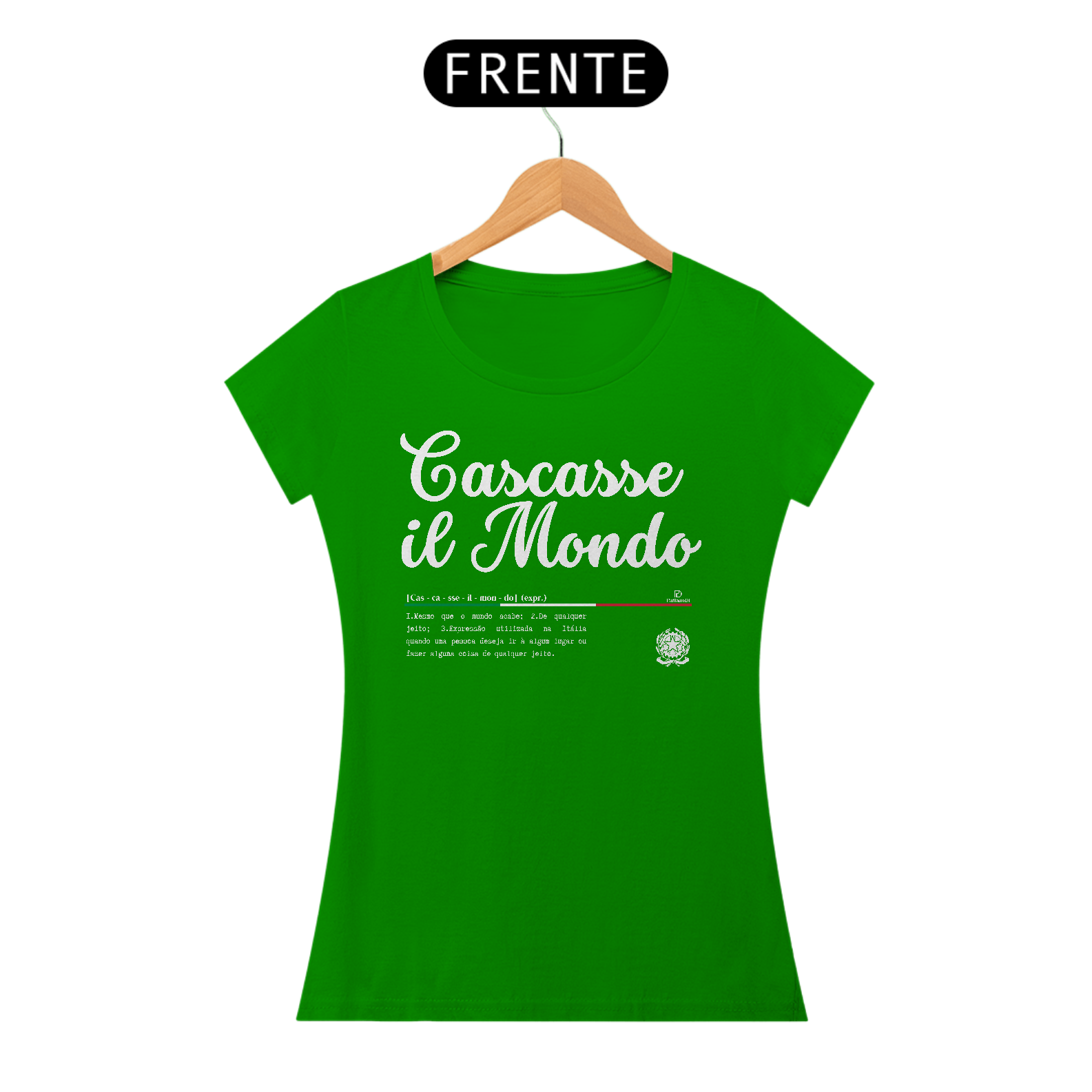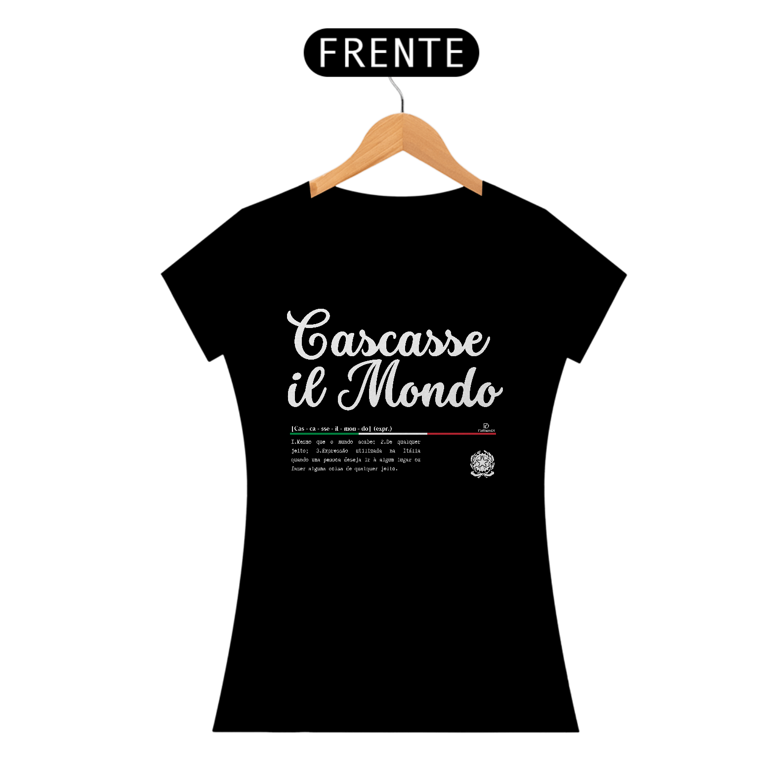 Esse é um produto idealizado para você expressar seu amor pela cultura Italiana pela ParliamoDi. Cascasse il Mondo significa: Mesmo que o mundo acabe, De qualquer jeito, Expressão utilizada na Itália quando uma pessoa deseja ir a algum lugar ou fazer alguma coisa de qualquer jeito. Esse é um produto de qualidade “QUALITY” 100% Algodão, fios penteados 30.1, acabamento reforçado na gola e nos ombros com gramatura de 165 G. Confira mais detalhes abaixo.