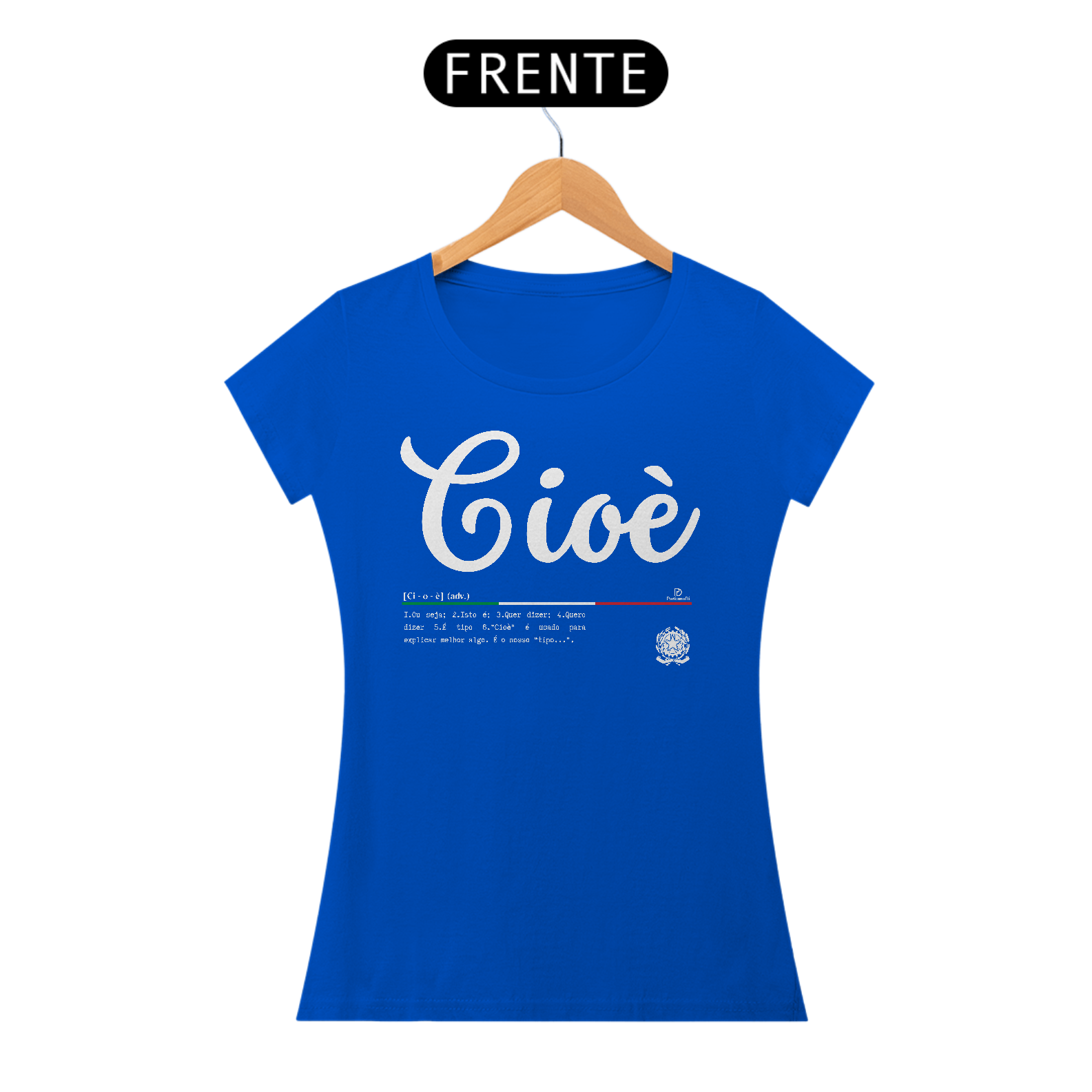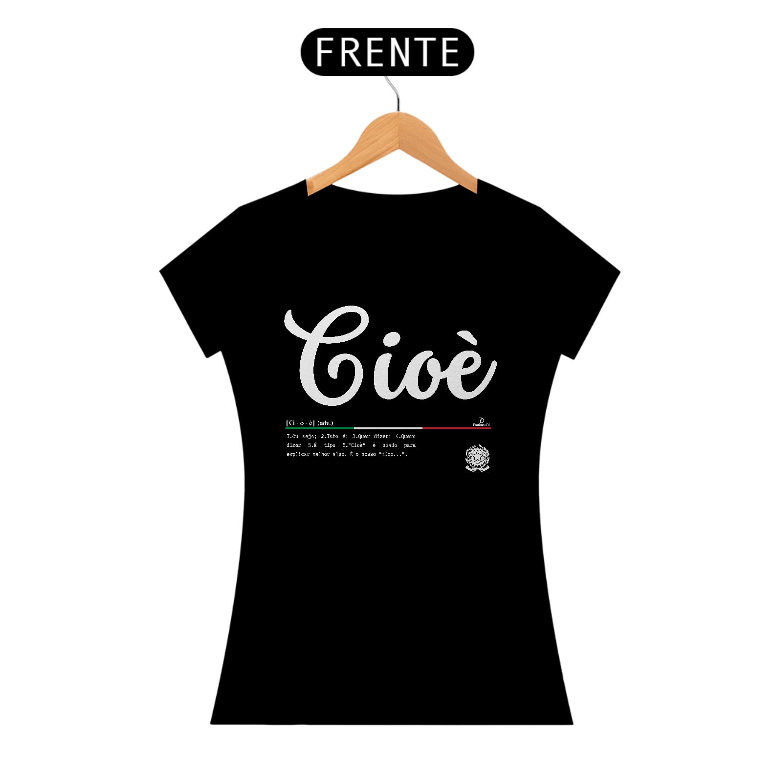 Esse é um produto idealizado para você expressar seu amor pela cultura Italiana pela ParliamoDi. A parola Cioè significa: Ou seja, Isto é, Quer dizer, Quero dizer, É tipo. ”Cioè” é usado para explicar melhor algo. É o nosso “tipo...”. Esse é um produto de qualidade “QUALITY” 100% Algodão, fios penteados 30.1, acabamento reforçado na gola e nos ombros com gramatura de 165 G. Confira mais detalhes abaixo.