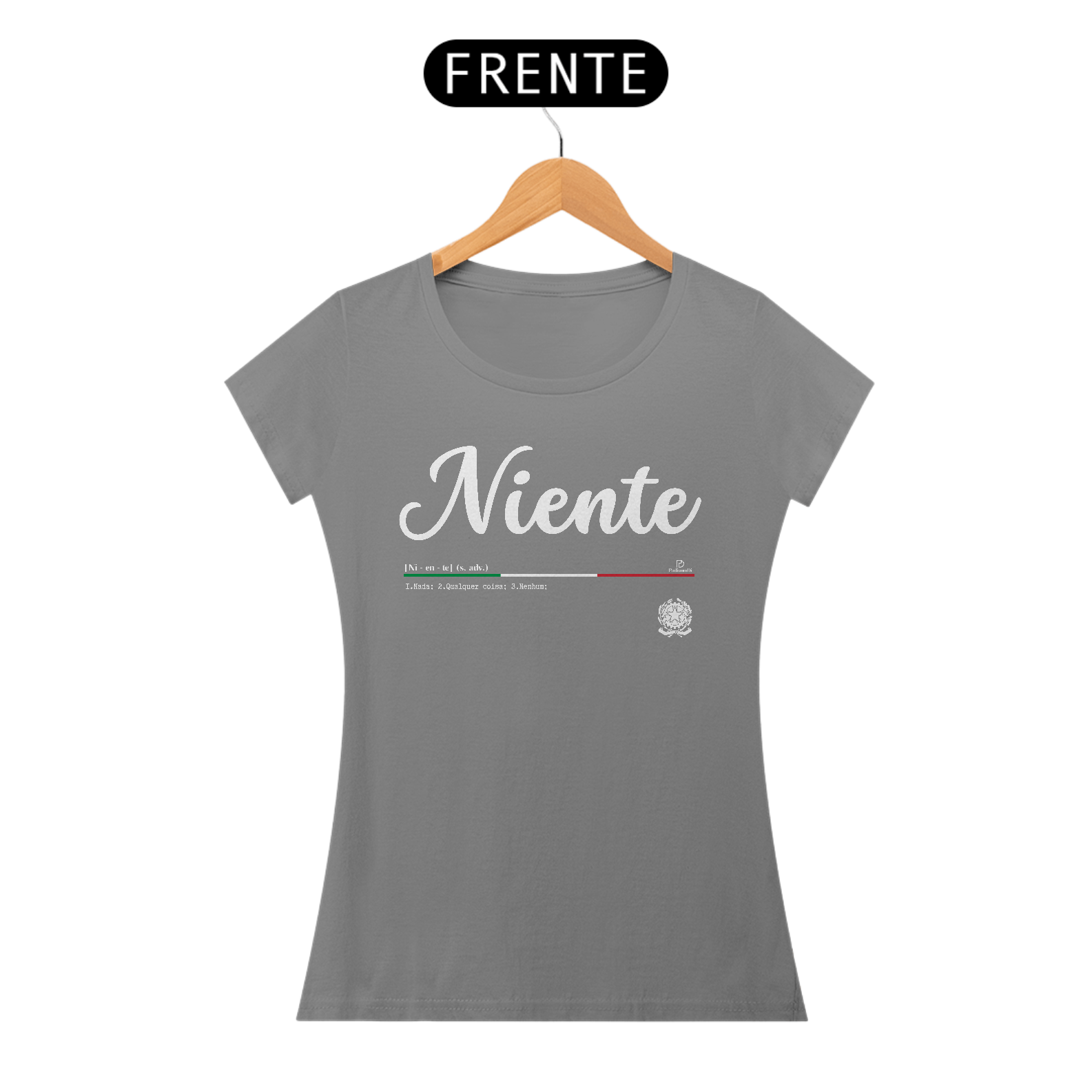 Esse é um produto idealizado para você expressar seu amor pela cultura Italiana pela ParliamoDi. A parola Niente significa: Nada, Qualquer coisa, Nenhum. Esse é um produto de qualidade “QUALITY” 100% Algodão, fios penteados 30.1, acabamento reforçado na gola e nos ombros com gramatura de 165 G. Confira mais detalhes abaixo.