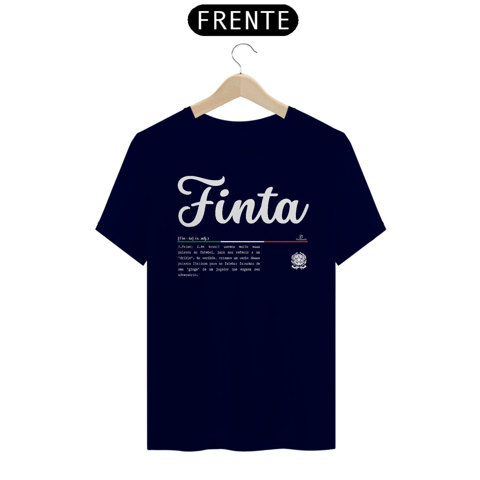 Esse é um produto idealizado para você expressar seu amor pela cultura Italiana. A parola Finta significa FALSO em italiano. No Brasil usamos muito essa palavra no futebol para nos referir a um “drible”. Na verdade, criamos um verbo dessa palavra Italiana para no futebol falarmos de uma “ginga” de um jogador que engana seu adversário. Esse é um produto de qualidade “QUALITY” 100% Algodão, fios penteados 30.1, acabamento reforçado na gola e nos ombros com gramatura de 165 G. Confira mais detalhes abaixo.
