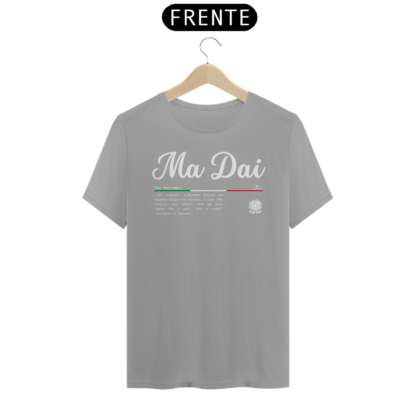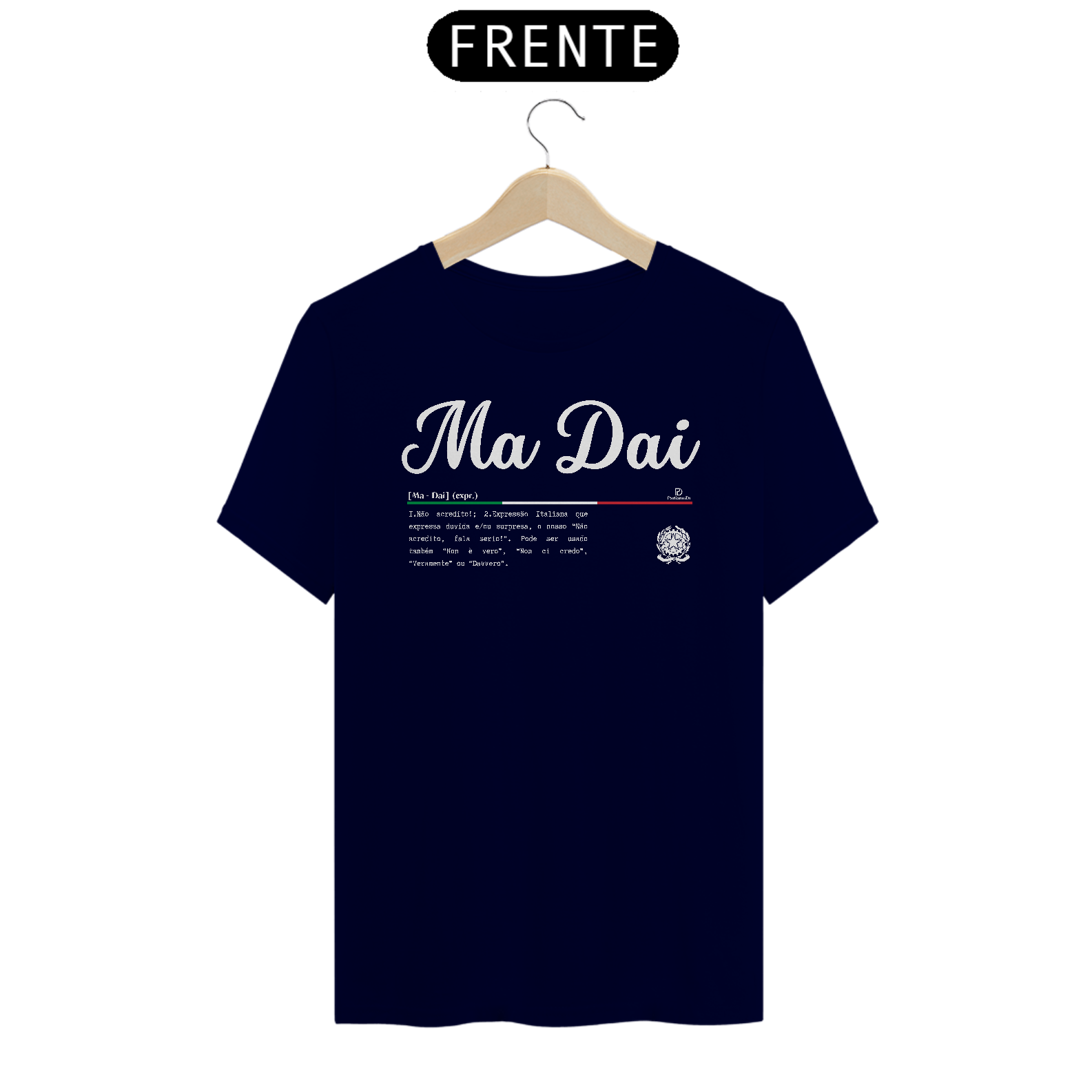 Esse é um produto idealizado para você expressar seu amor pela cultura Italiana pela ParliamoDi. Ma Dai significa: Não acredito!. Expressão Italiana que expressa dúvida e/ou surpresa, o nosso “Não acredito, fala sério!”. Pode ser usado também “Non è vero”, “Non ci credo”, “Veramente” ou “Davvero”. Esse é um produto de qualidade “QUALITY” 100% Algodão, fios penteados 30.1, acabamento reforçado na gola e nos ombros com gramatura de 165 G. Confira mais detalhes abaixo.