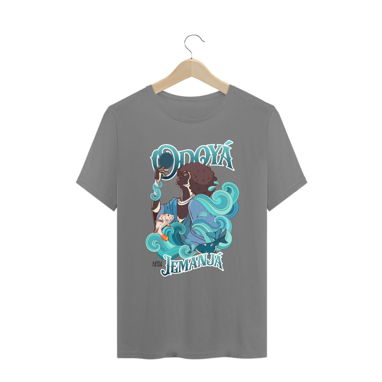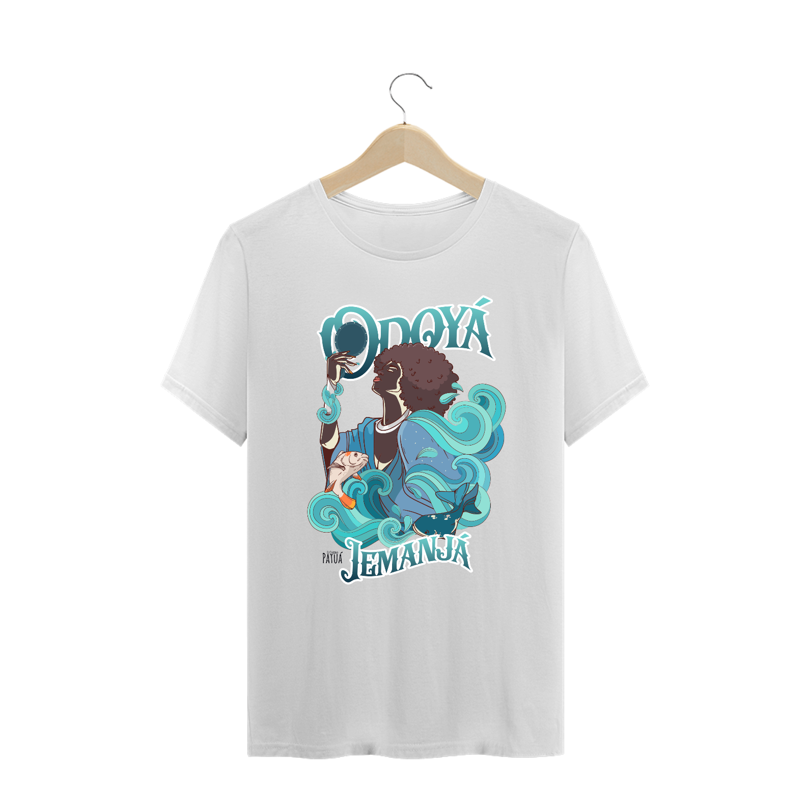 Eu Carrego no Peito: A verdadeira essência da Patuá de Axé se revela na estampa frontal cuidadosamente personalizada. Cada imagem é meticulosamente representada, capturando a energia e a beleza de Orixás e Entidades veneradas na cultura afro-brasileira. A frente da camisa exibe a presença forte e protetora de Iemanjá com a nossa firmeza "Eu Carrego Patuá".