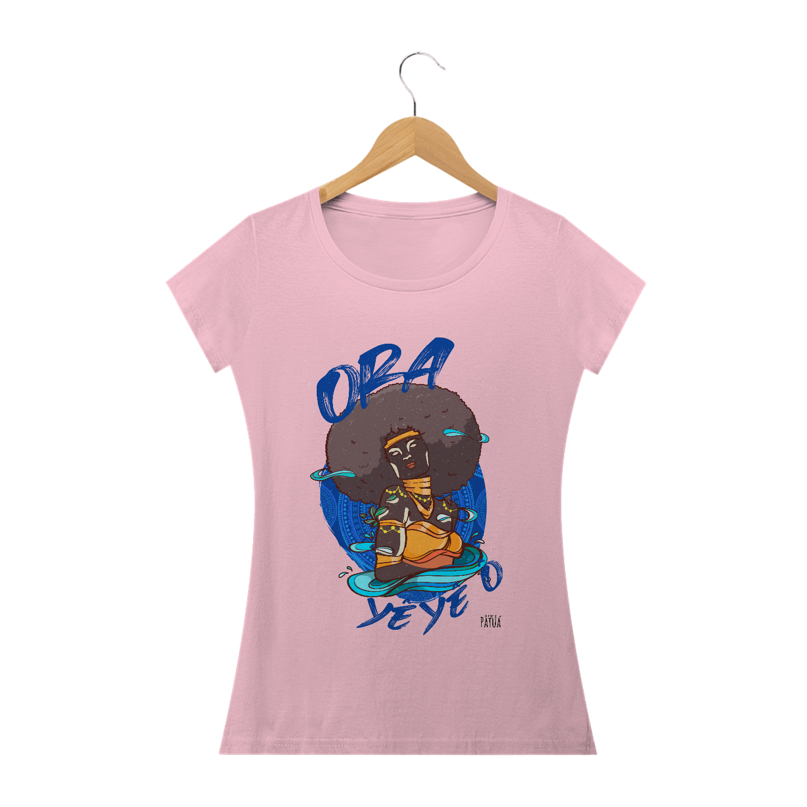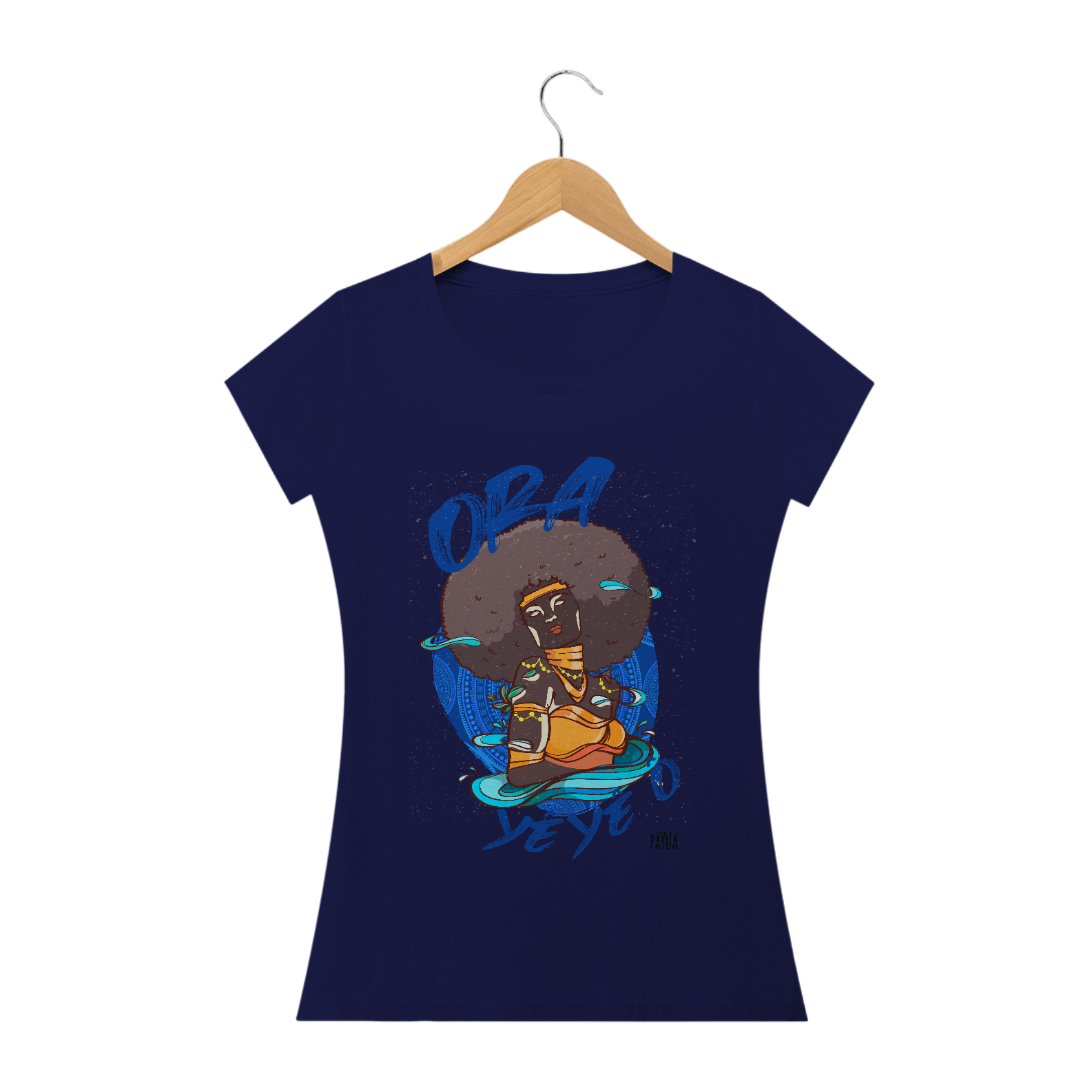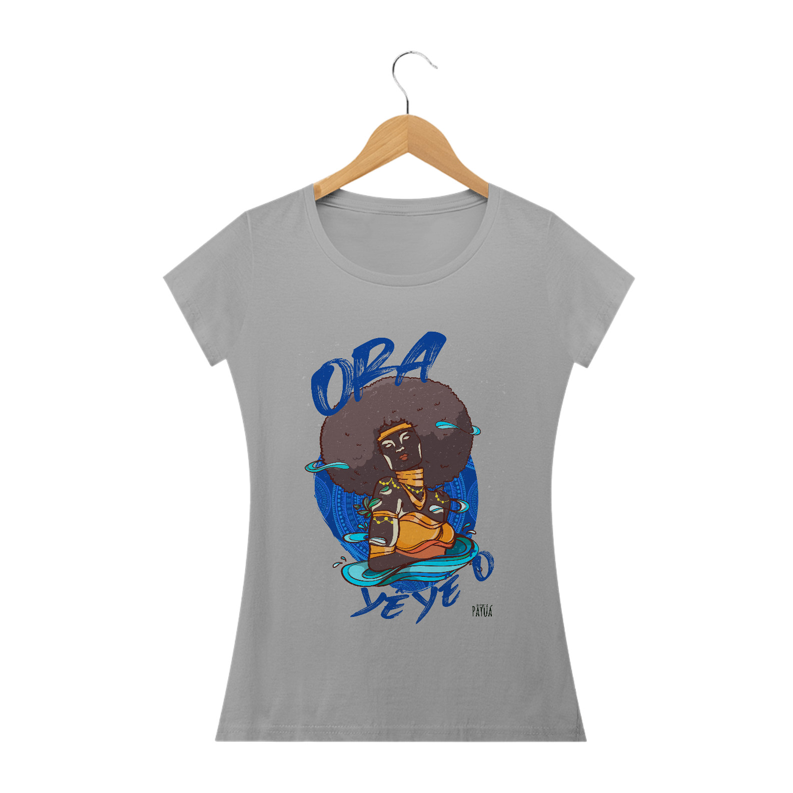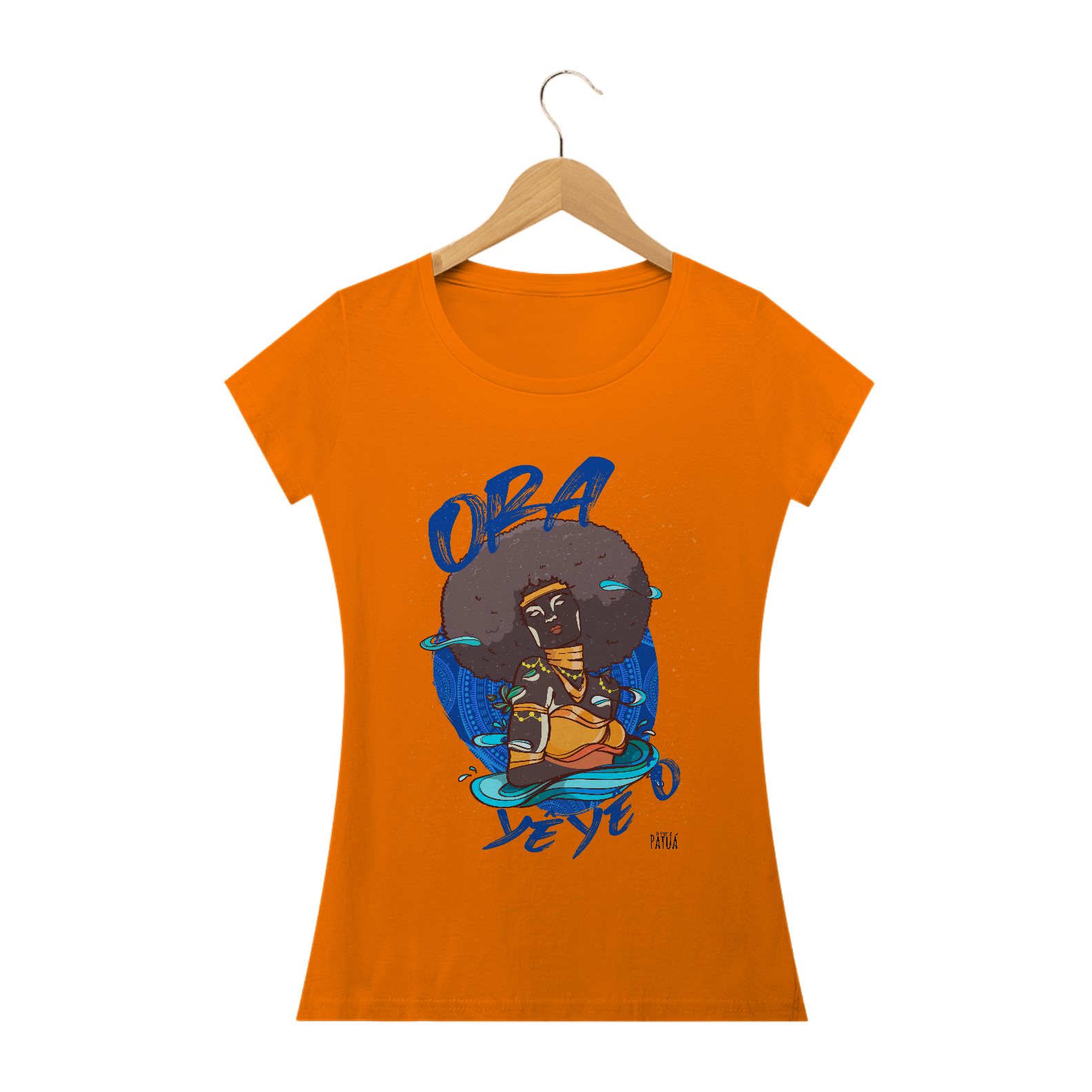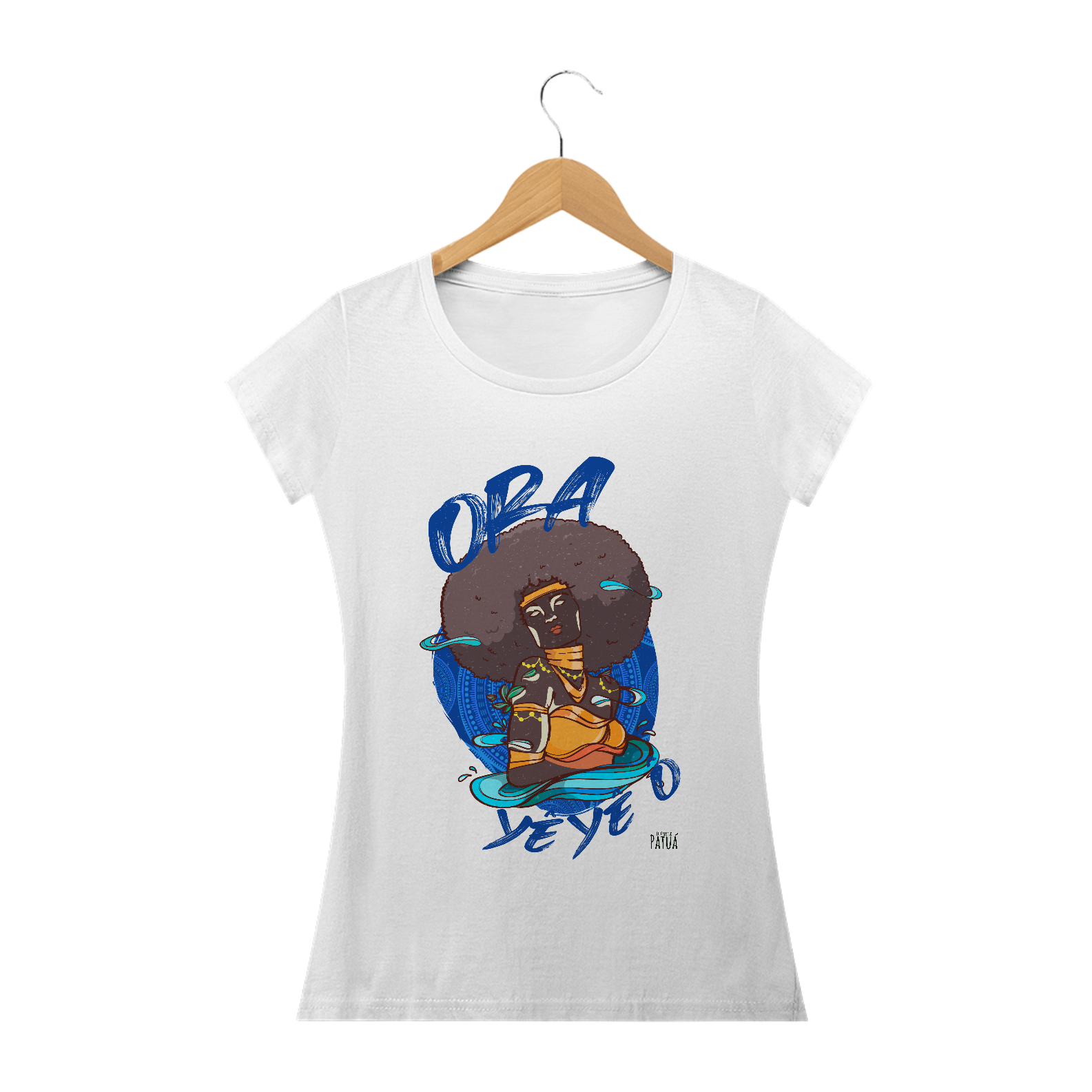 Eu Carrego no Peito: A verdadeira essência da Patuá de Axé se revela na estampa frontal cuidadosamente personalizada. Cada imagem é meticulosamente representada, capturando a energia e a beleza de Orixás e Entidades veneradas na cultura afro-brasileira. A frente da camisa exibe a presença forte e protetora de Oxum com a nossa firmeza "Eu Carrego Patuá".