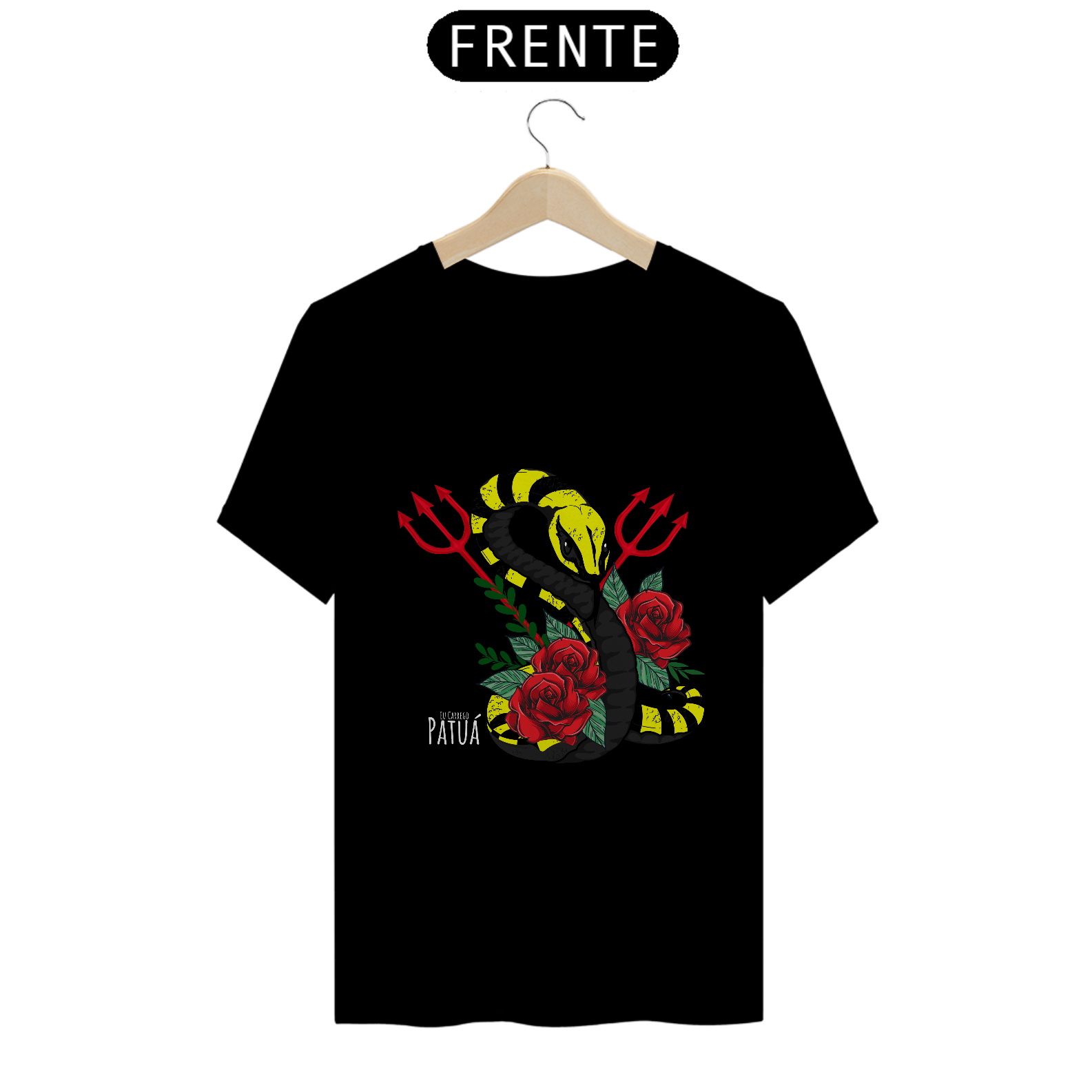 Eu Carrego no Peito: A verdadeira essência da Patuá de Axé se revela na estampa frontal cuidadosamente personalizada. Cada imagem é meticulosamente representada, capturando a simbologia e os elementos dos Orixás e Entidades da cultura afro-brasileira junto com a nossa firmeza "Eu Carrego Patuá".