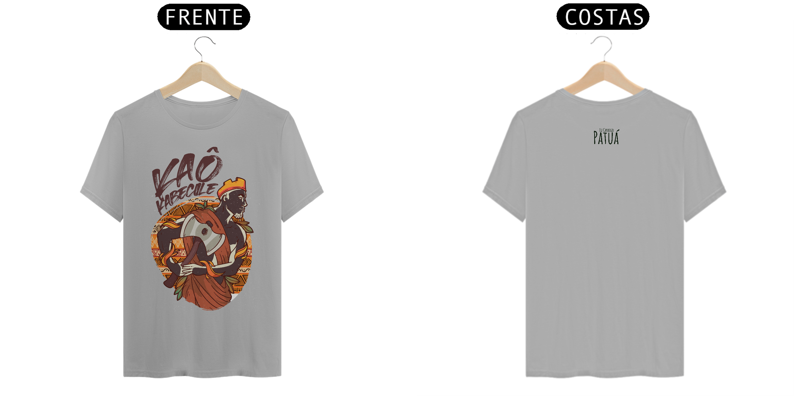 Estampa Frente e Verso: A verdadeira essência da Patuá de Axé se revela na estampa frontal e traseira cuidadosamente personalizada. Cada imagem é meticulosamente representada, capturando a energia e a beleza de Orixás e Entidades veneradas na cultura afro-brasileira. A frente da camisa exibe a presença forte e protetora de Xangô, enquanto a parte de trás carrega a nossa firmeza "Eu Carrego Patuá".