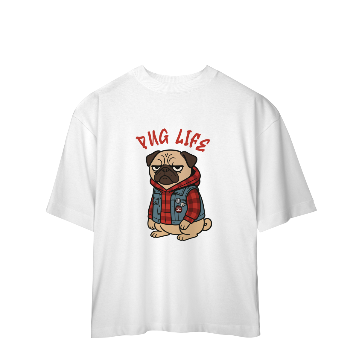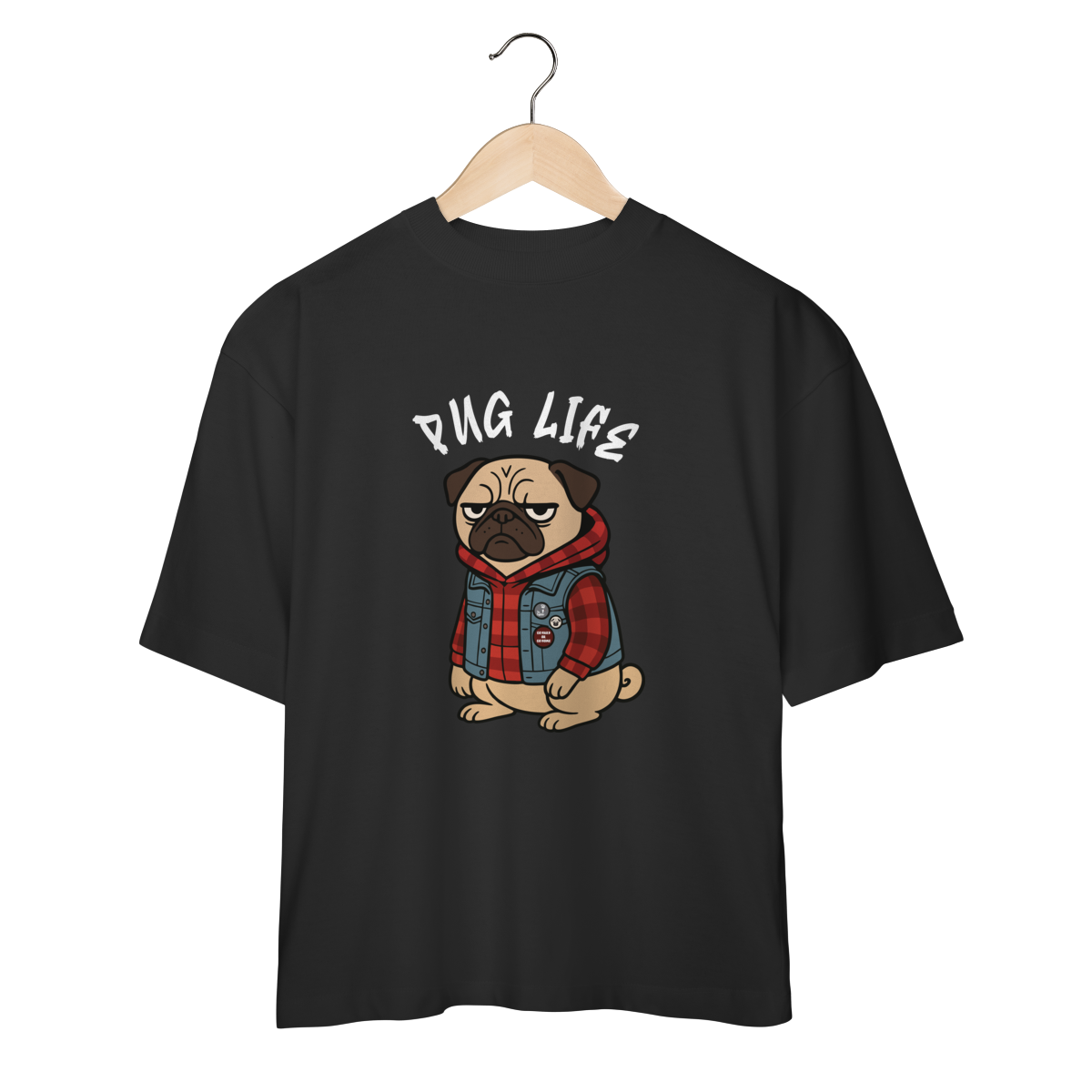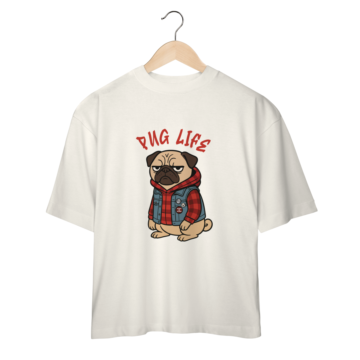 Para os pequenos que já nasceram com atitude, a camiseta “Pug Life” traz um pug cheio de estilo, com vibe séria e aquele look street que transforma qualquer visual. A arte exclusiva combina jaqueta jeans, xadrez e muita personalidade, perfeita para crianças que gostam de peças marcantes e divertidas.