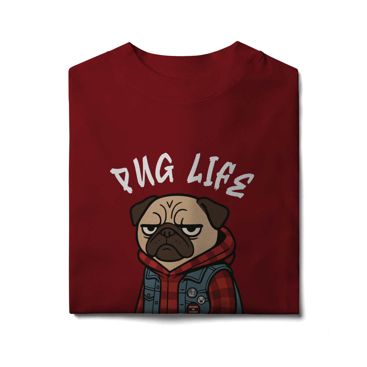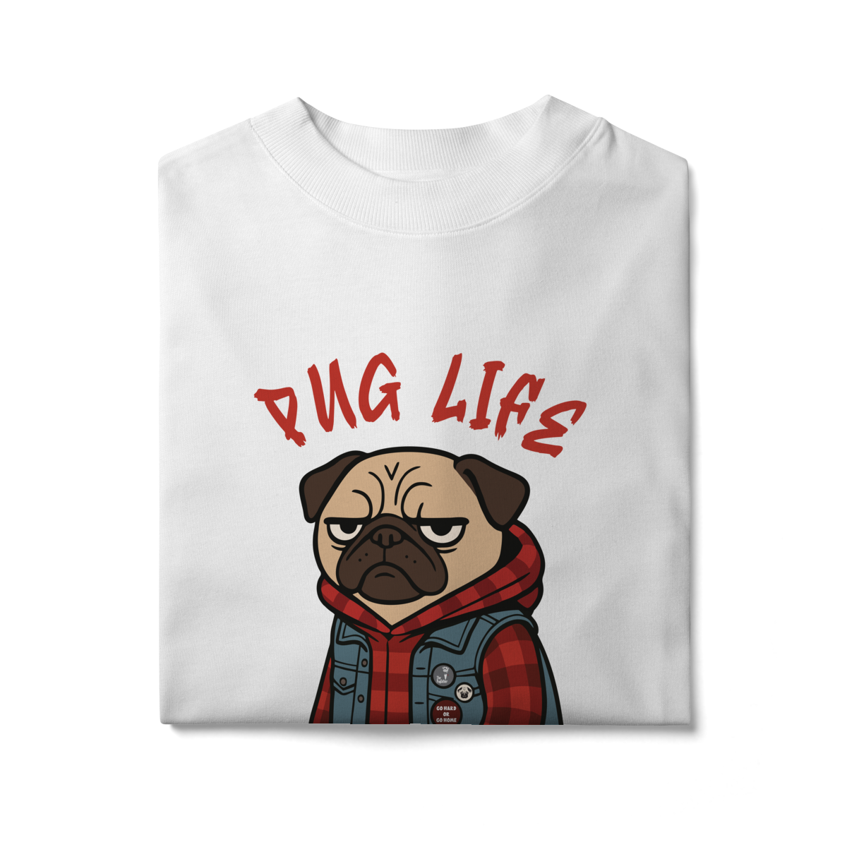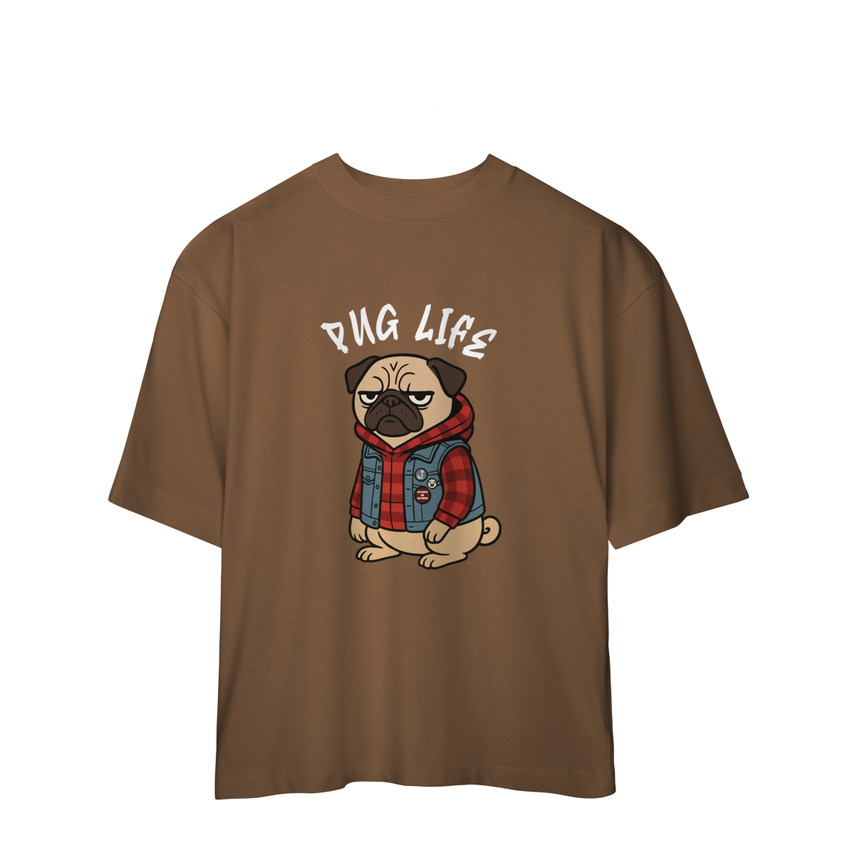 Para os pequenos que já nasceram com atitude, a camiseta “Pug Life” traz um pug cheio de estilo, com vibe séria e aquele look street que transforma qualquer visual. A arte exclusiva combina jaqueta jeans, xadrez e muita personalidade, perfeita para crianças que gostam de peças marcantes e divertidas.