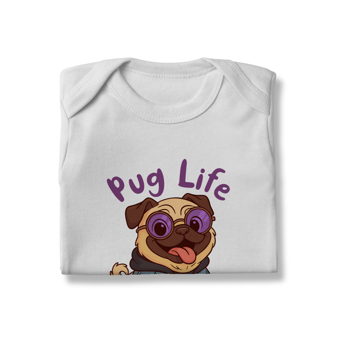 A atitude mais fofa do mundo pet agora virou estampa! A camiseta “Pug Life” traz um design divertido e cheio de personalidade, perfeita para os pequenos que adoram conforto, estilo e um toque de humor no look.