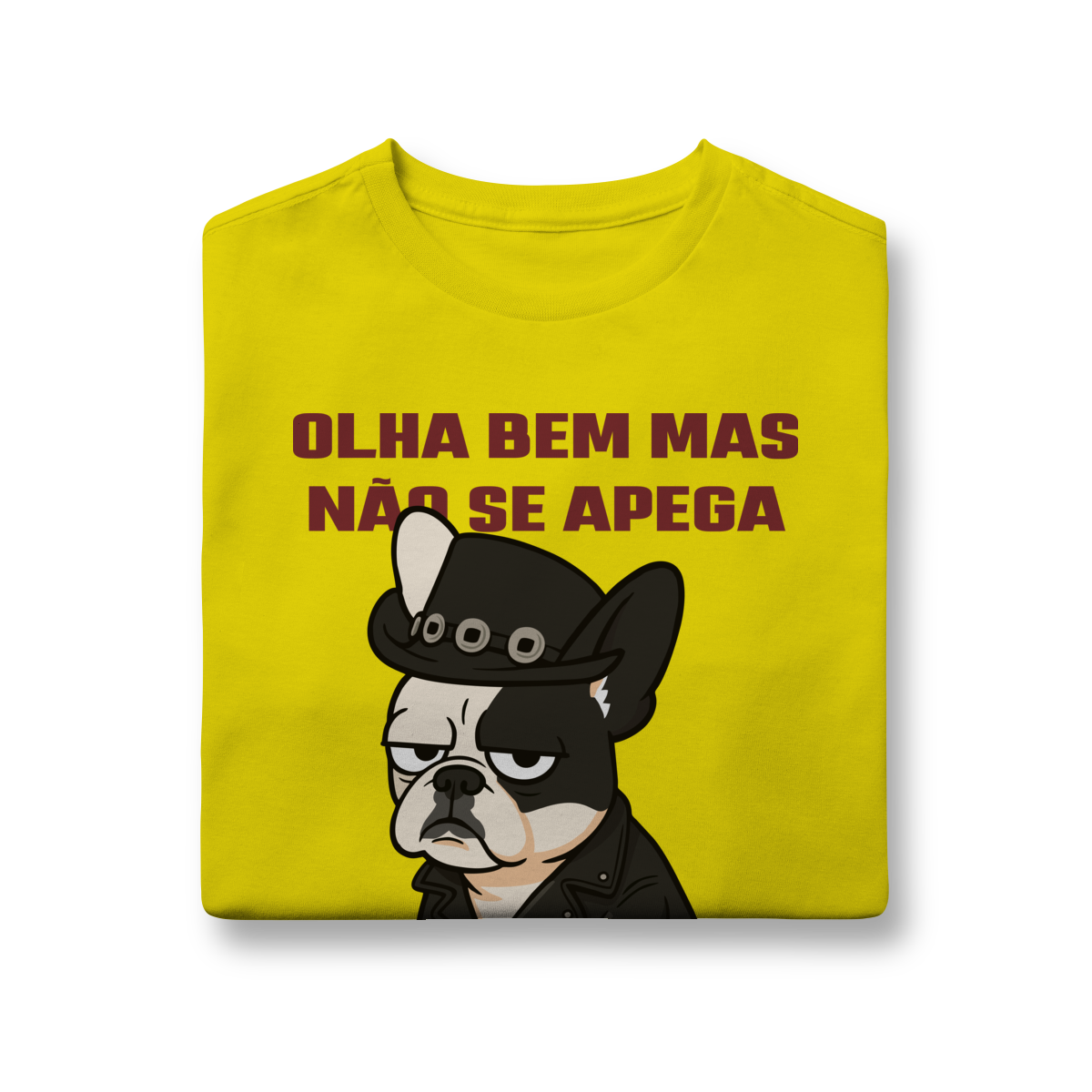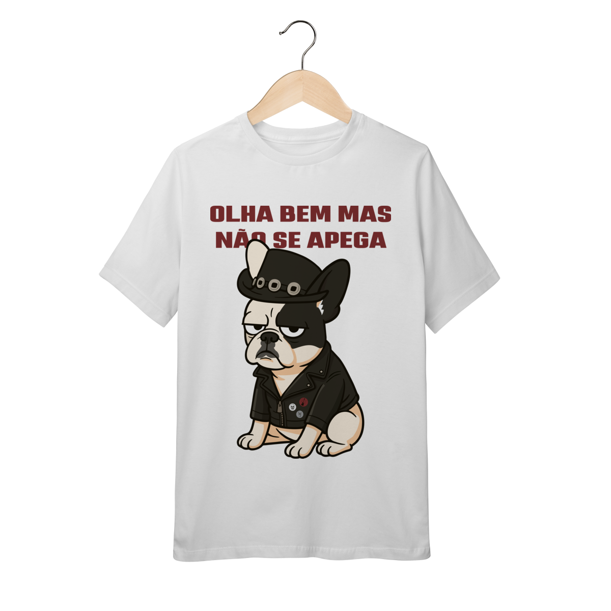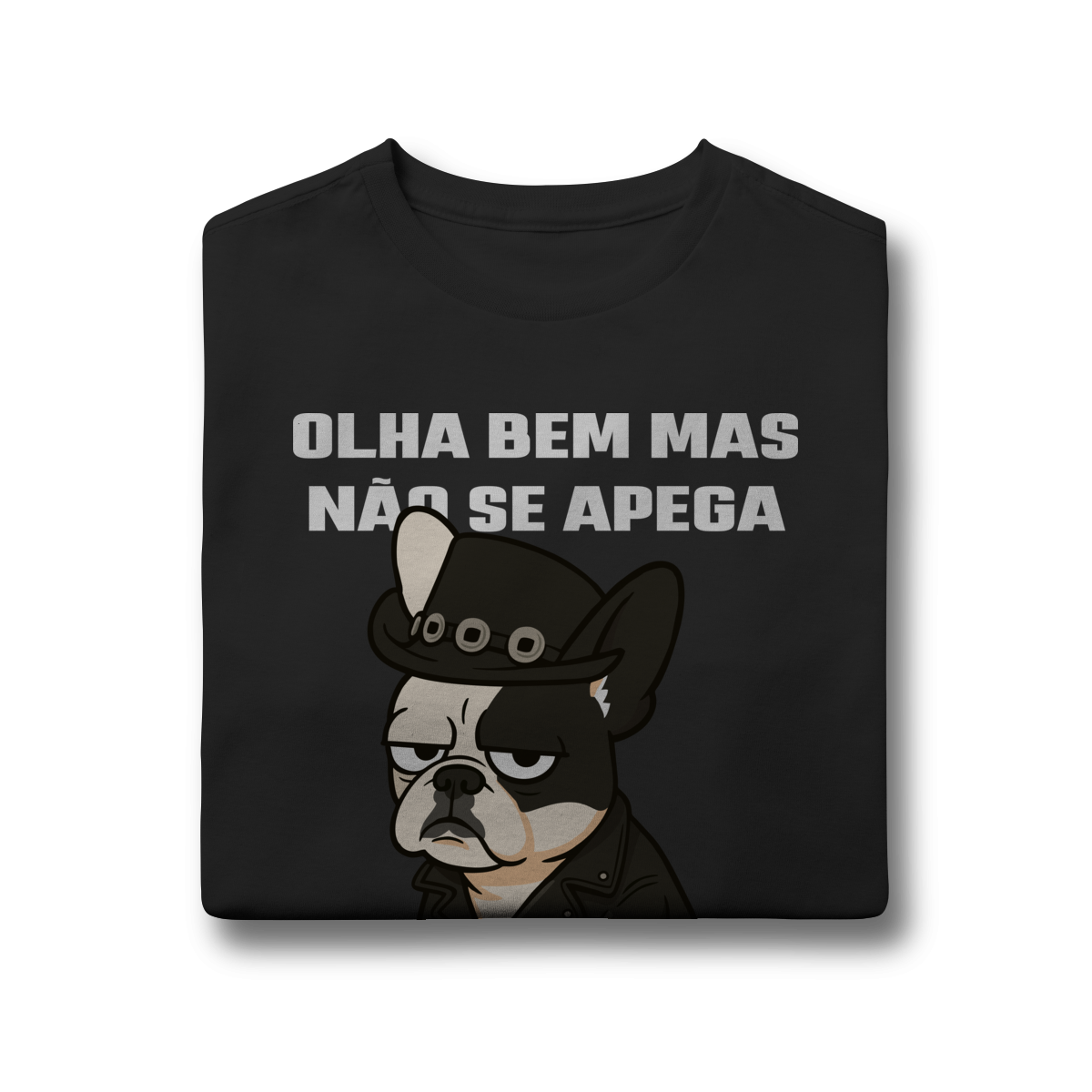 Deixe o look dos pequenos ainda mais estiloso com essa camiseta superconfortável, estampada com um buldog cheio de personalidade e a frase divertida “Olha bem… mas não se apega”.