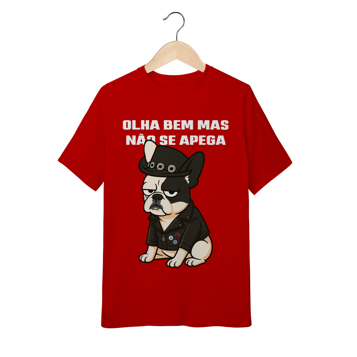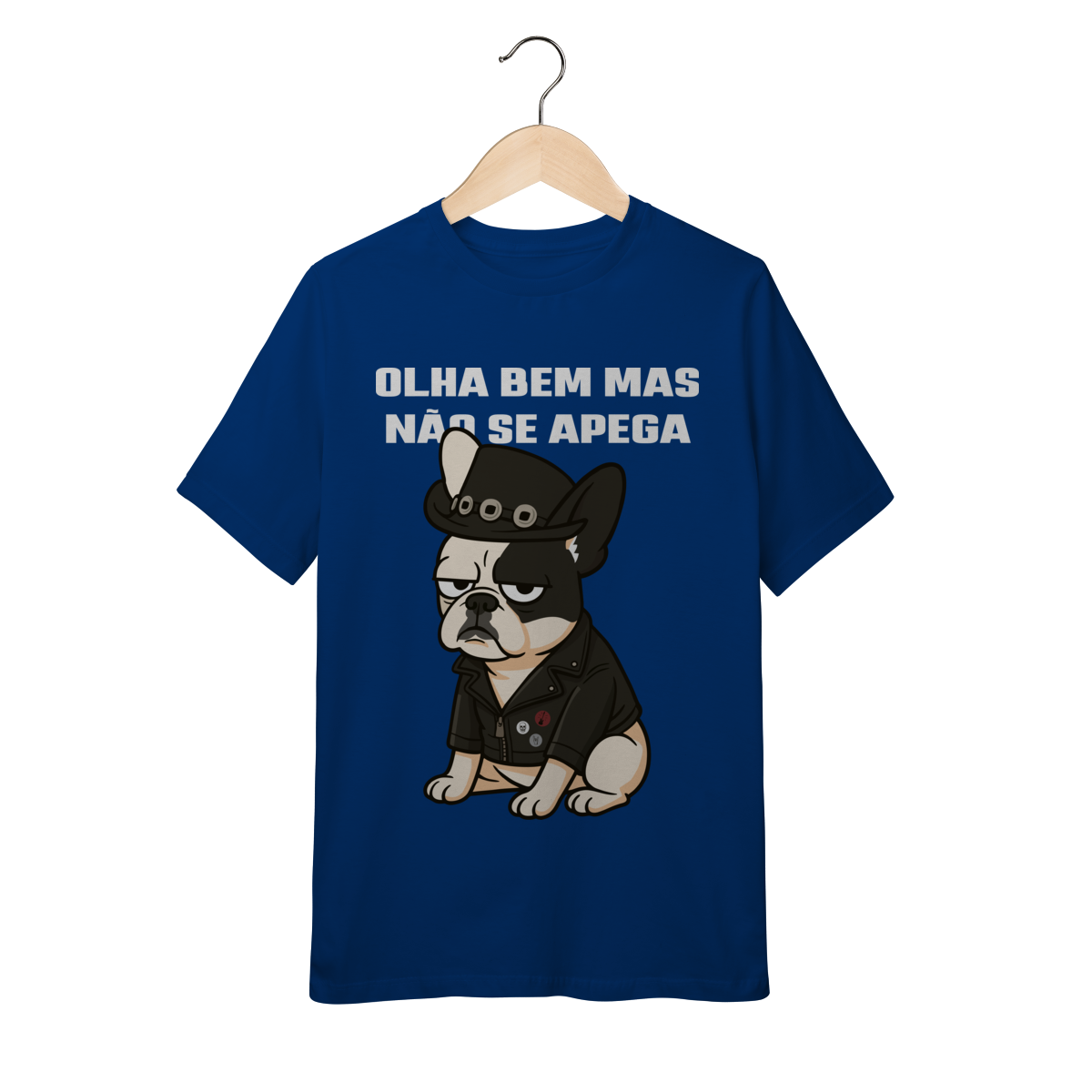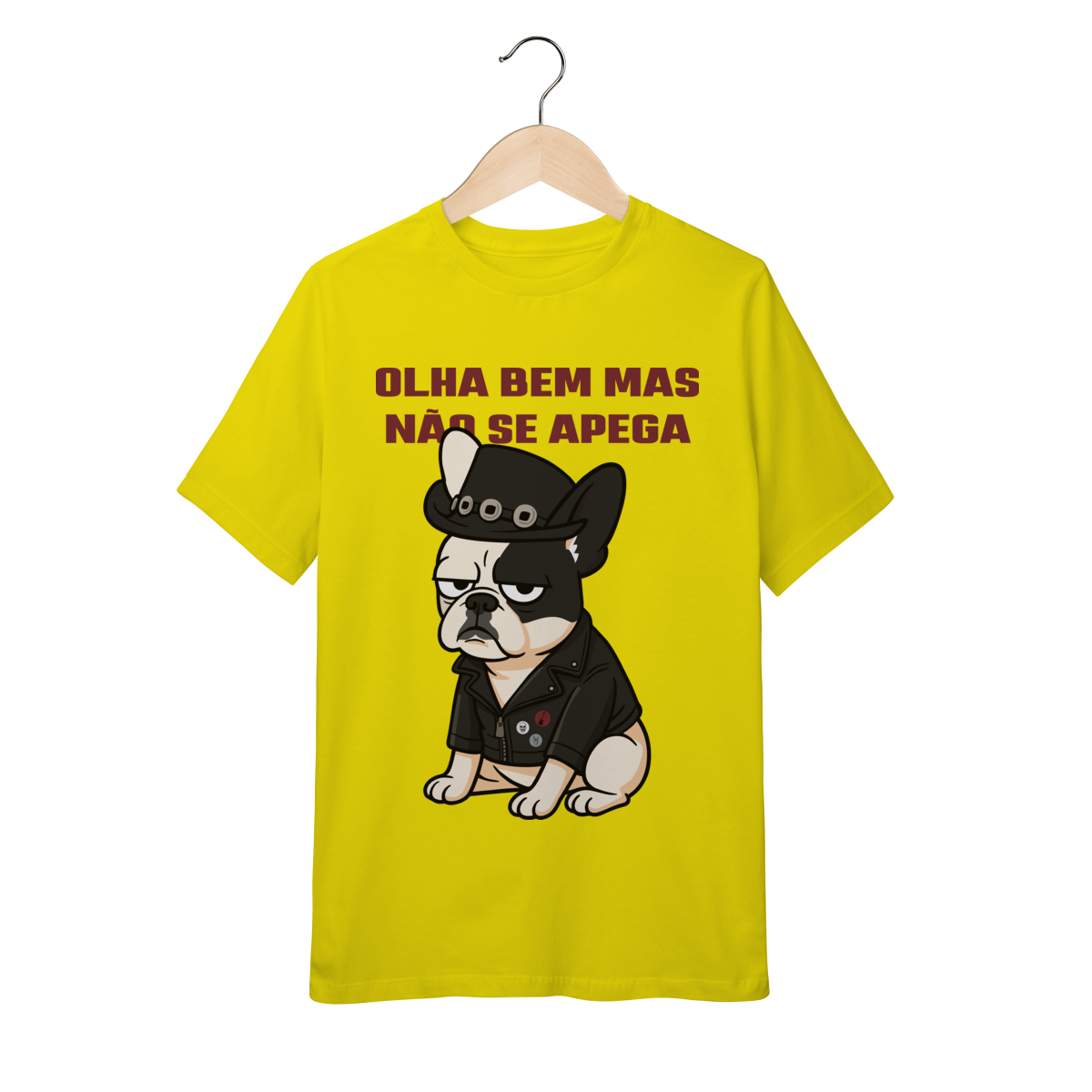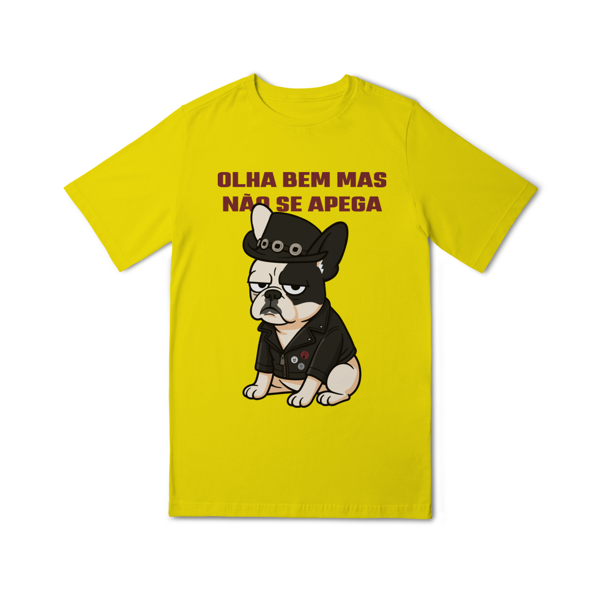 Deixe o look dos pequenos ainda mais estiloso com essa camiseta superconfortável, estampada com um buldog cheio de personalidade e a frase divertida “Olha bem… mas não se apega”.