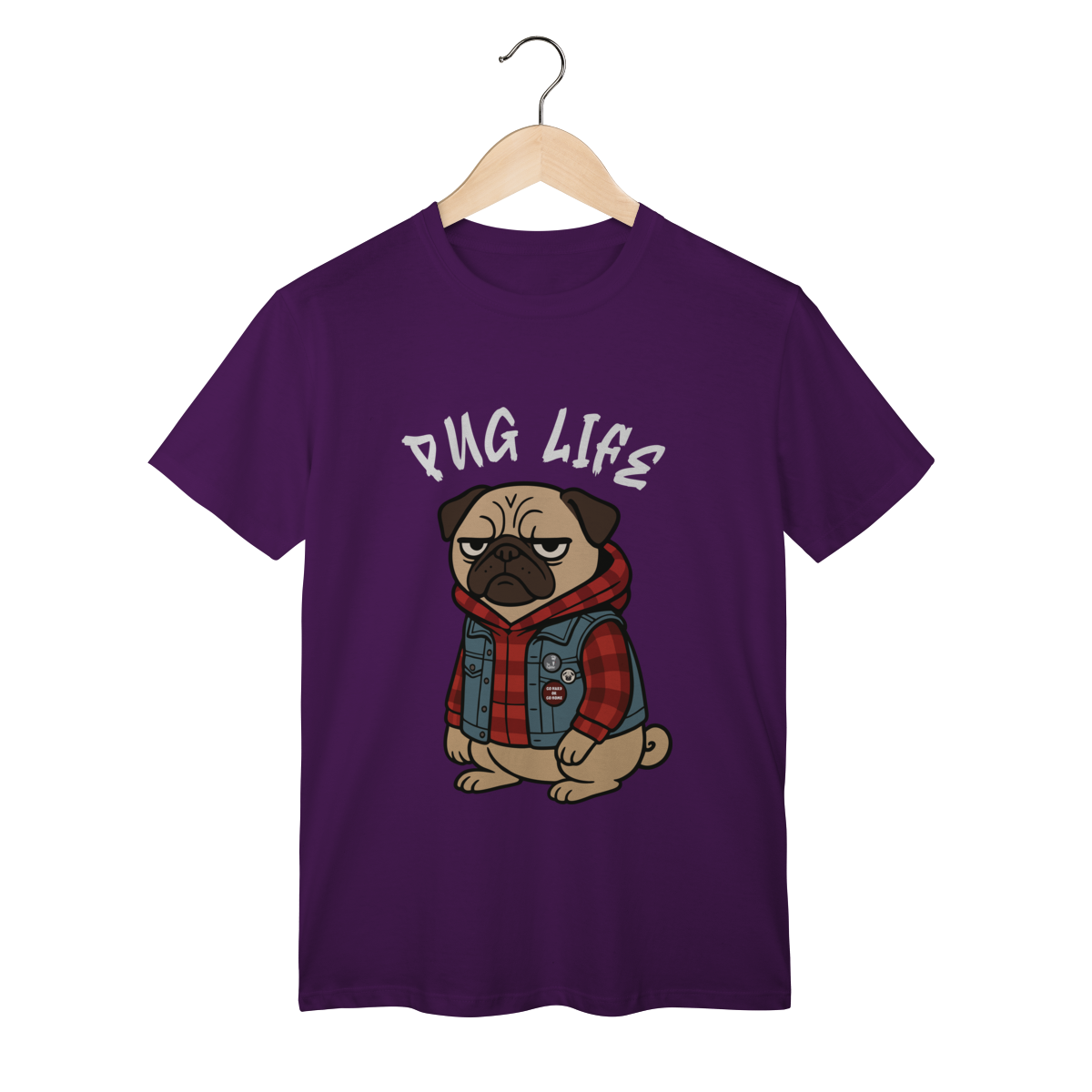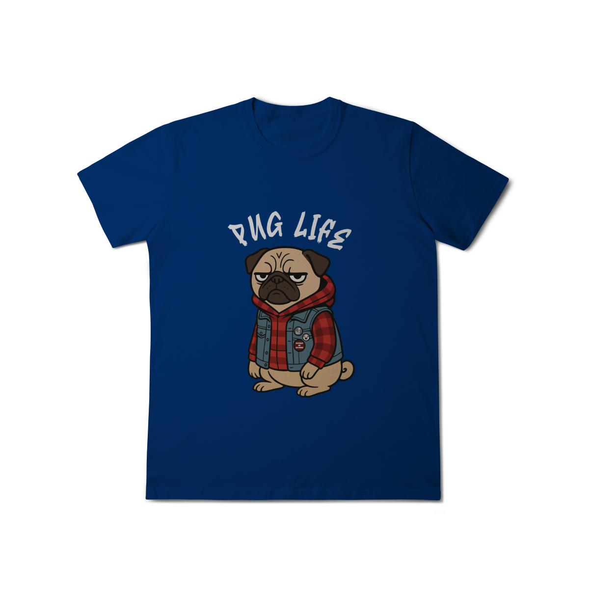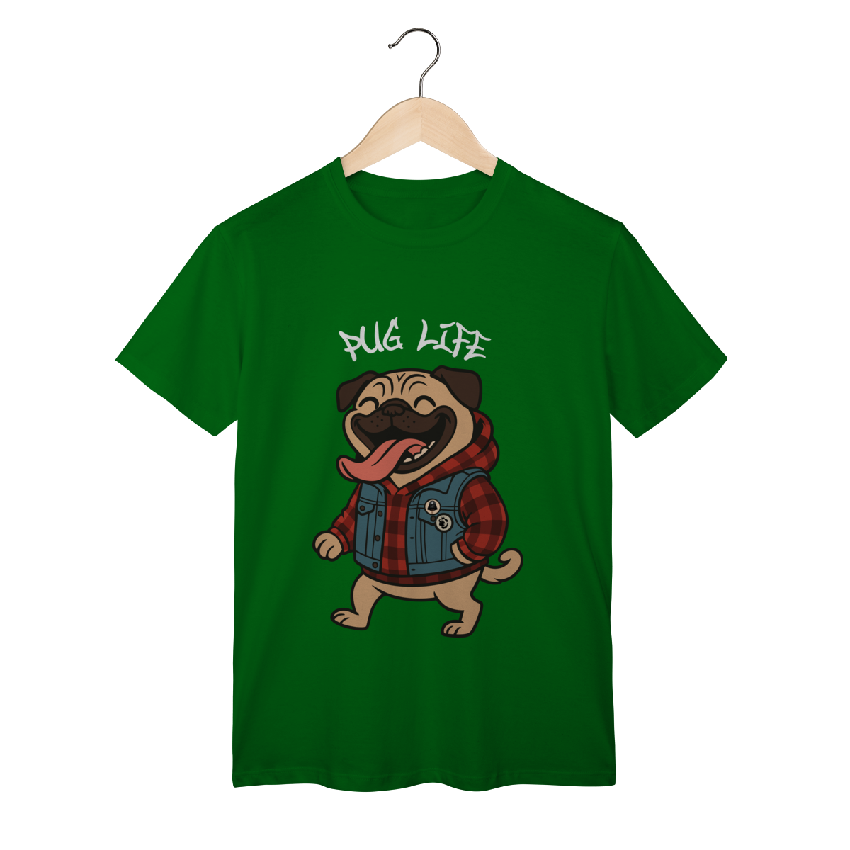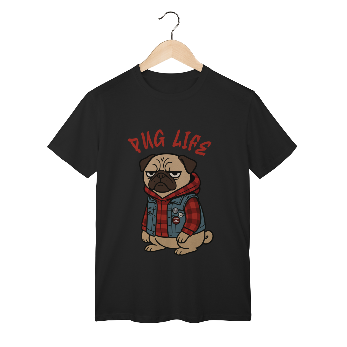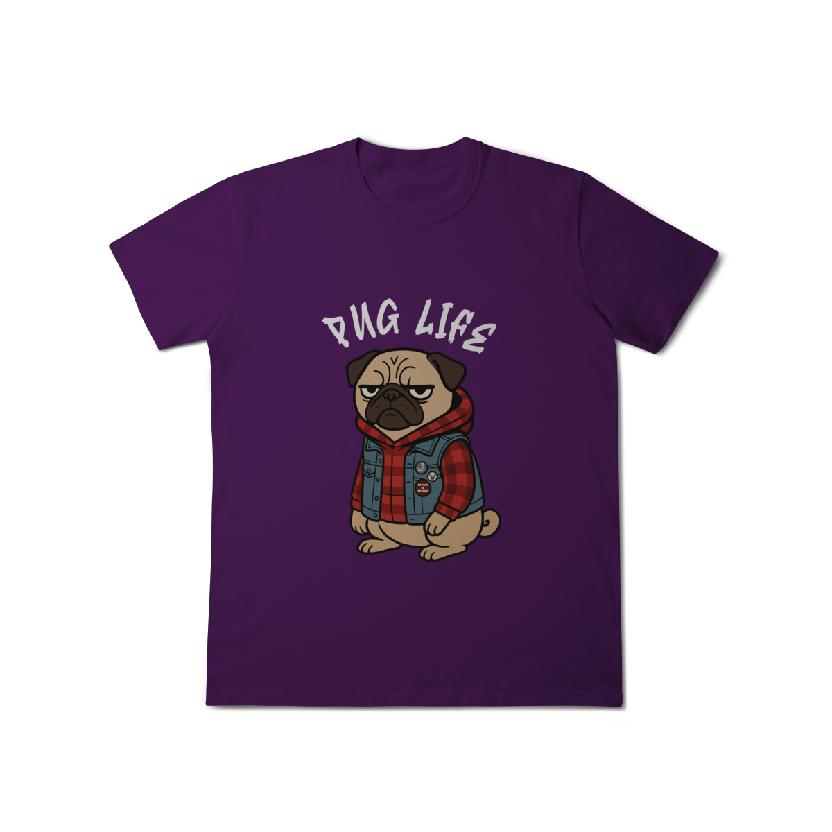 Para os pequenos que já nasceram com atitude, a camiseta “Pug Life” traz um pug cheio de estilo, com vibe séria e aquele look street que transforma qualquer visual. A arte exclusiva combina jaqueta jeans, xadrez e muita personalidade, perfeita para crianças que gostam de peças marcantes e divertidas.