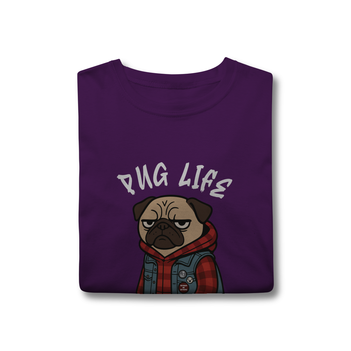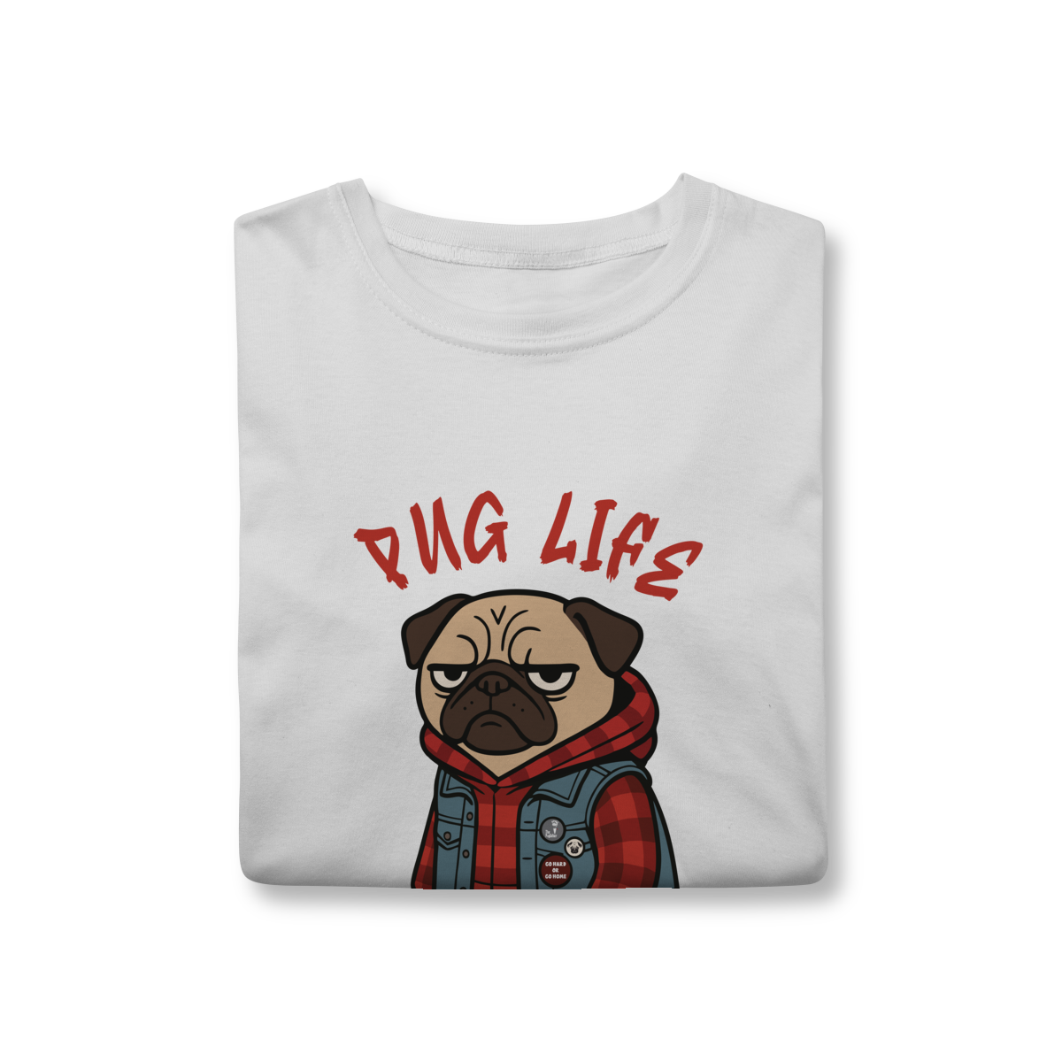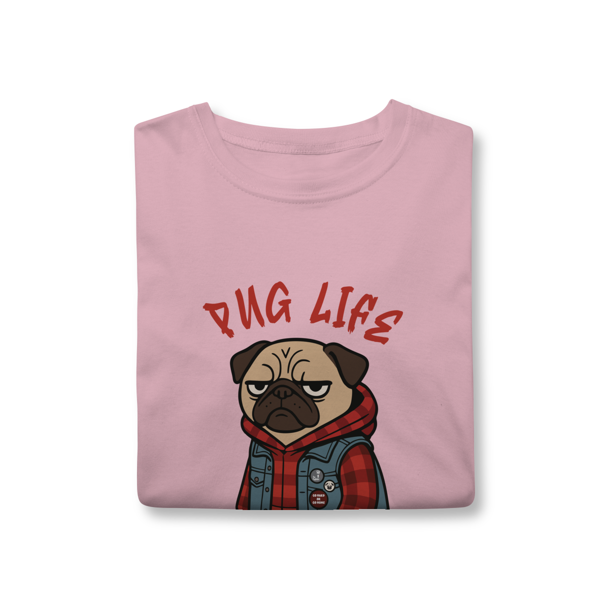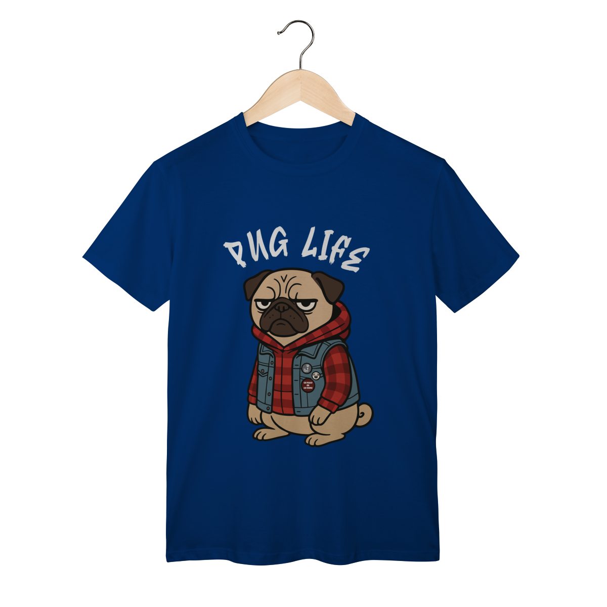 Para os pequenos que já nasceram com atitude, a camiseta “Pug Life” traz um pug cheio de estilo, com vibe séria e aquele look street que transforma qualquer visual. A arte exclusiva combina jaqueta jeans, xadrez e muita personalidade, perfeita para crianças que gostam de peças marcantes e divertidas.