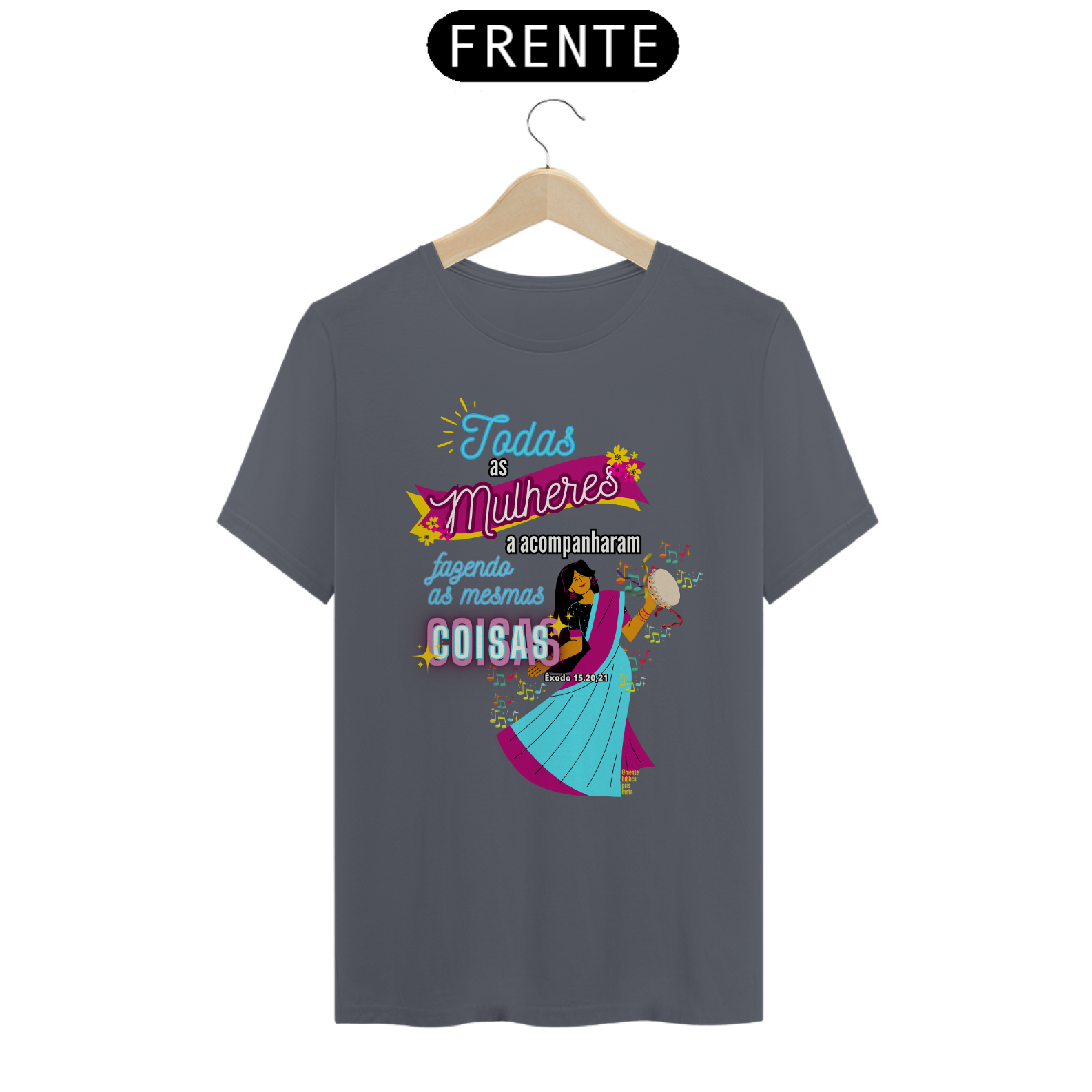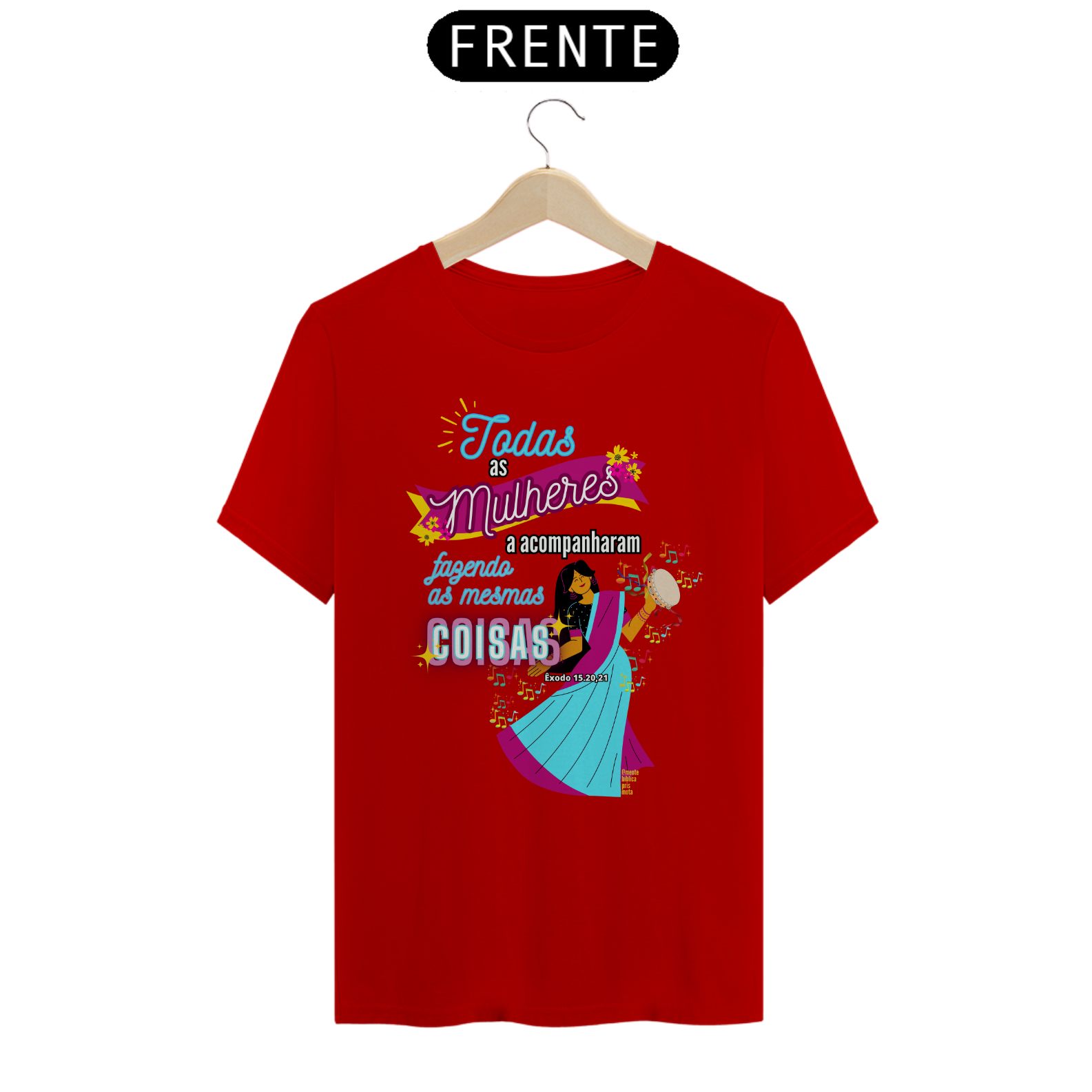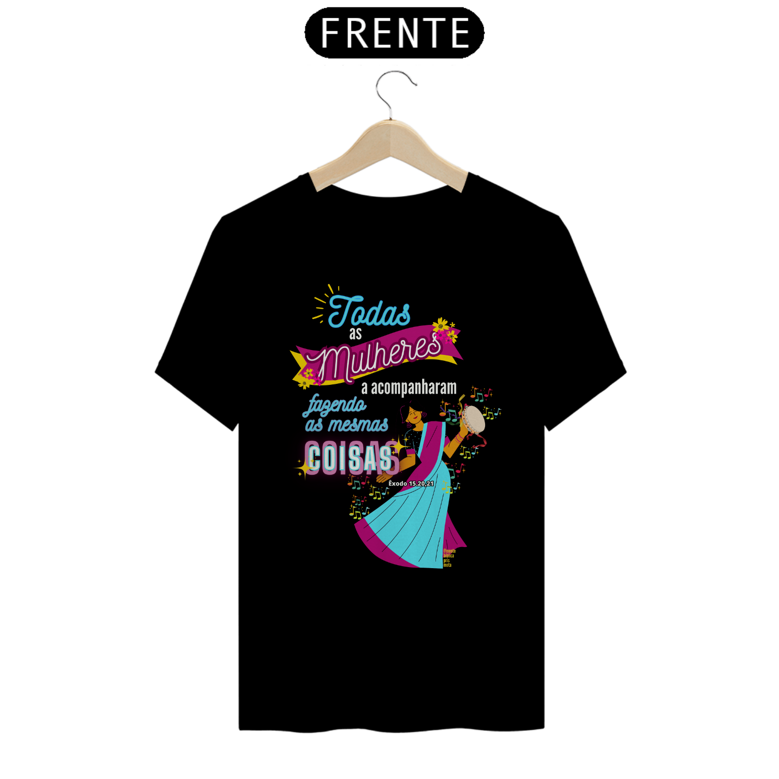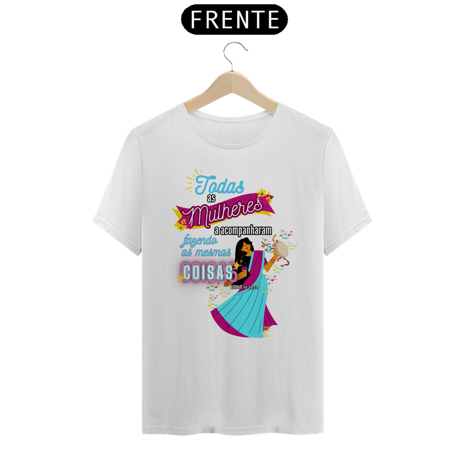 Uma Estampa que se inspira na história Bíblica de uma mulher, Miriã Dançou, a profetisa que liderou as mulheres em louvor e adoração a Deus após a travessia do Mar Vermelho.