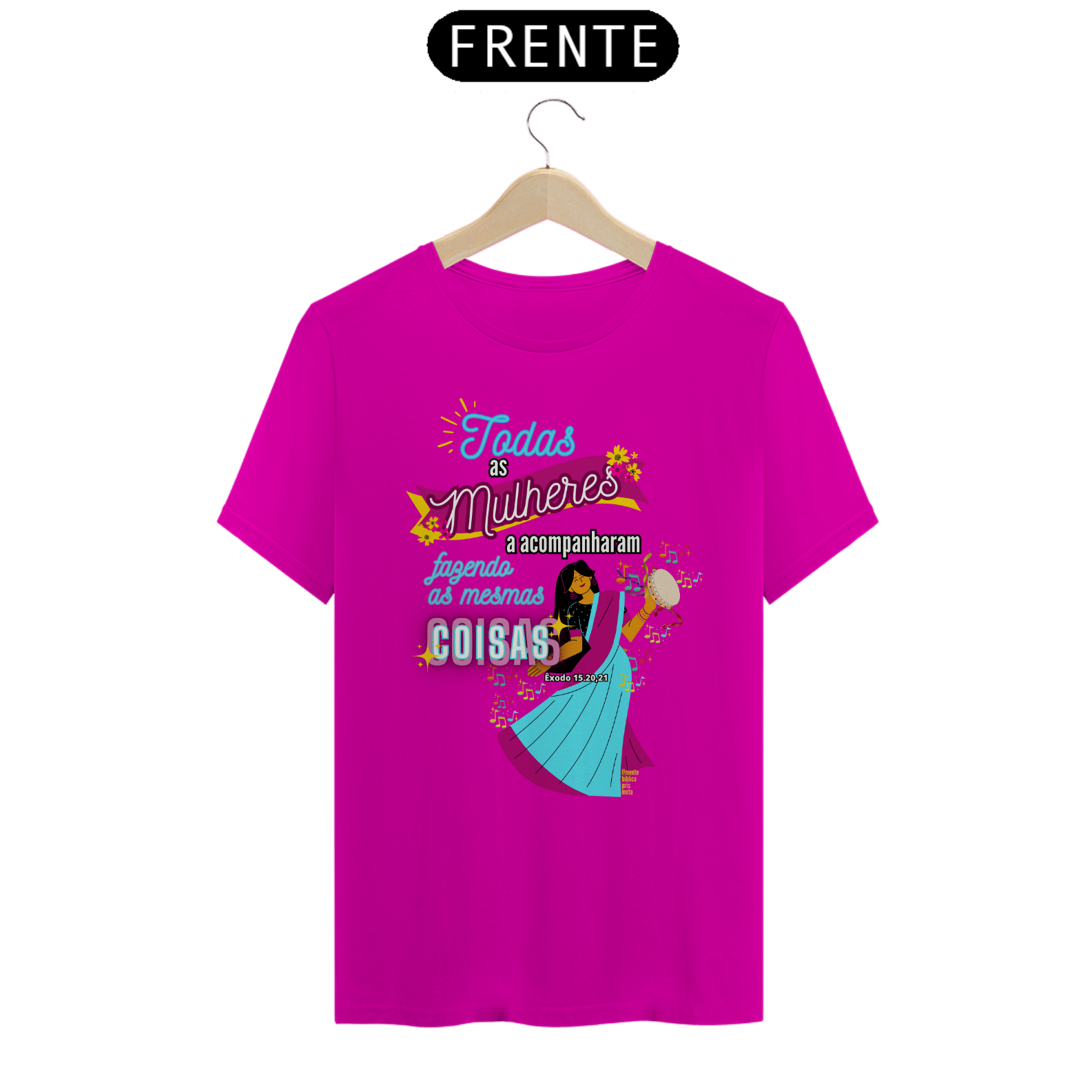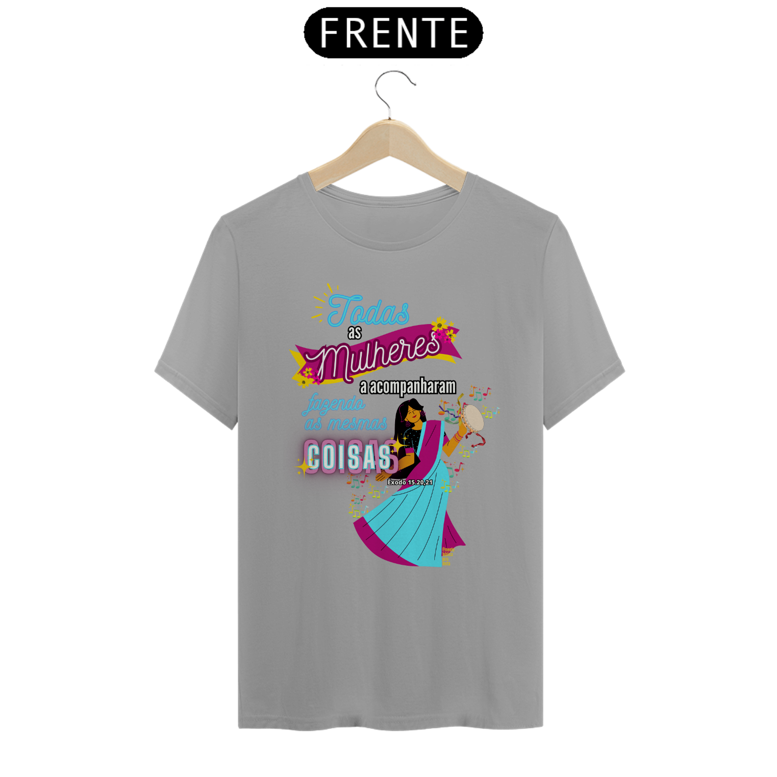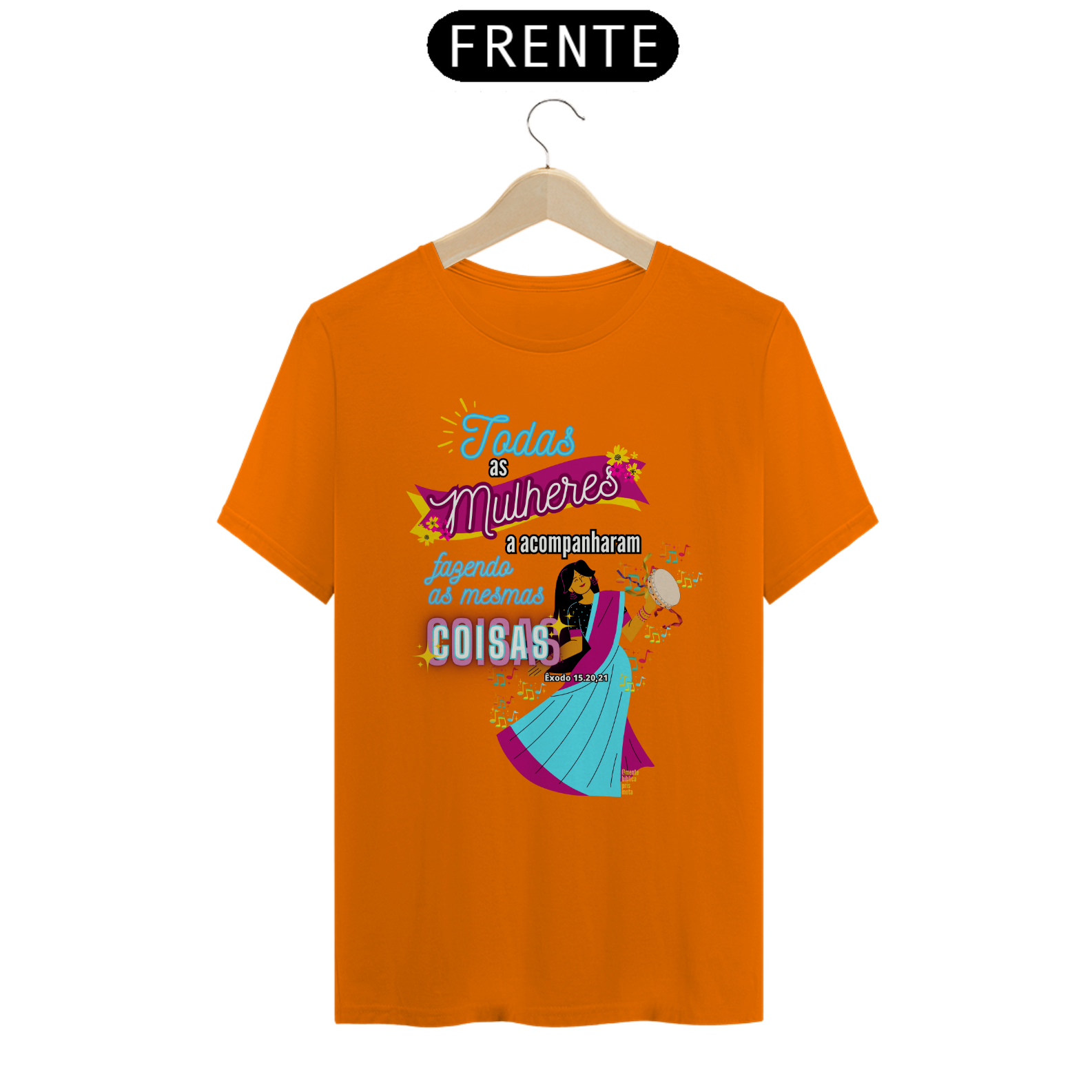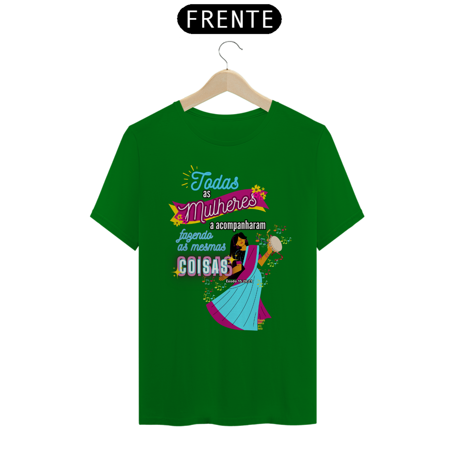 Uma Estampa que se inspira na história Bíblica de uma mulher, Miriã Dançou, a profetisa que liderou as mulheres em louvor e adoração a Deus após a travessia do Mar Vermelho.