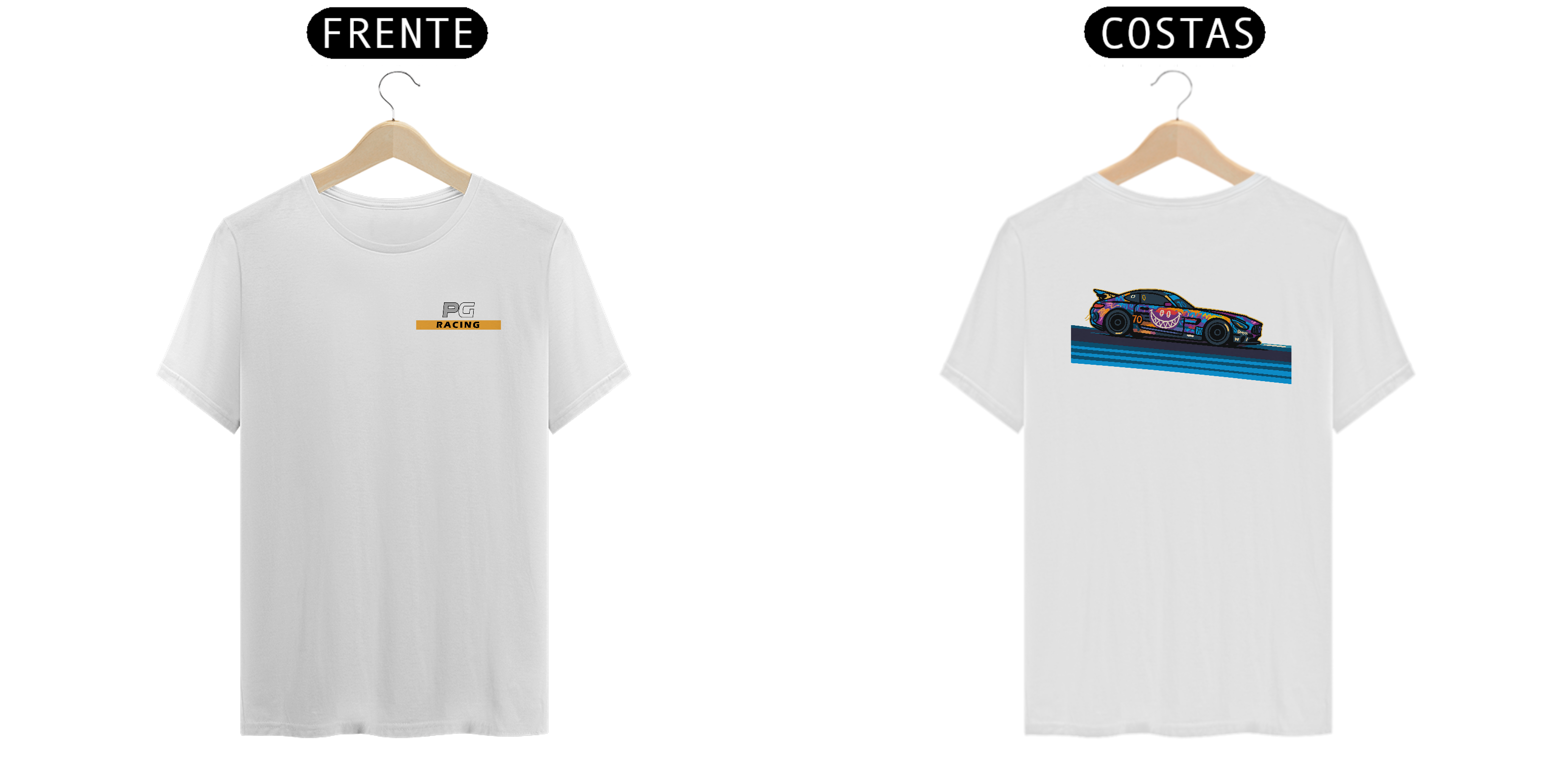 Na frente, o clássico logotipo da PG Racing. Nas costas, a estrela da vez: a AMG GT4 #70 com seu novo gráfico exclusivo — um visual grafitado, ousado e cheio de personalidade, assim como a equipe que desafia os limites em cada curva.