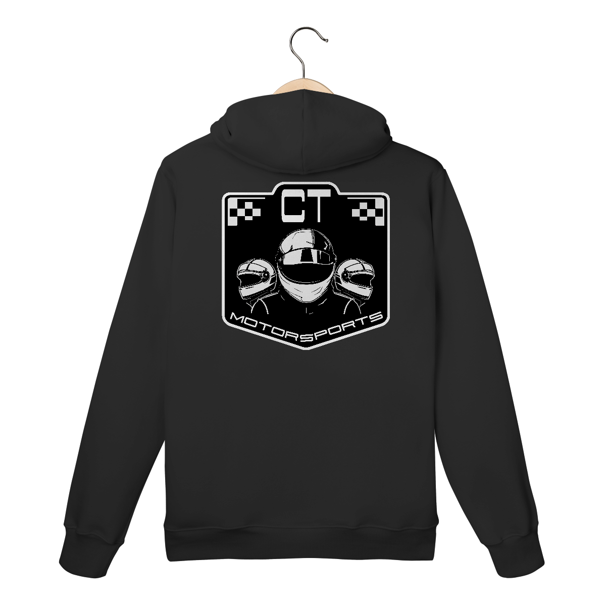 Moletom canguru exclusivo com logotipo PG Racing estampado na parte frontal e logotipo CT Motorsports estampado nas costas. Confortável e estiloso, possui bolso frontal e capuz ajustável, perfeito para dias frios ou para compor um visual casual com personalidade.