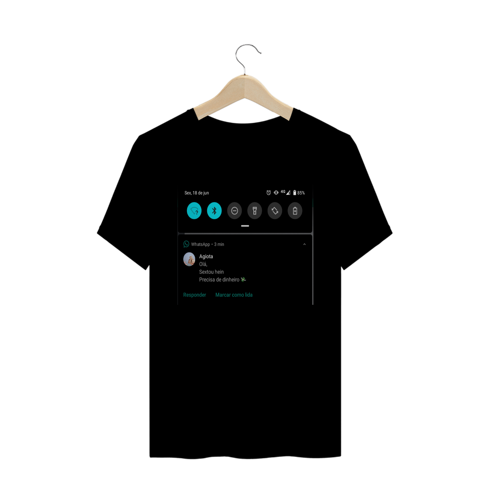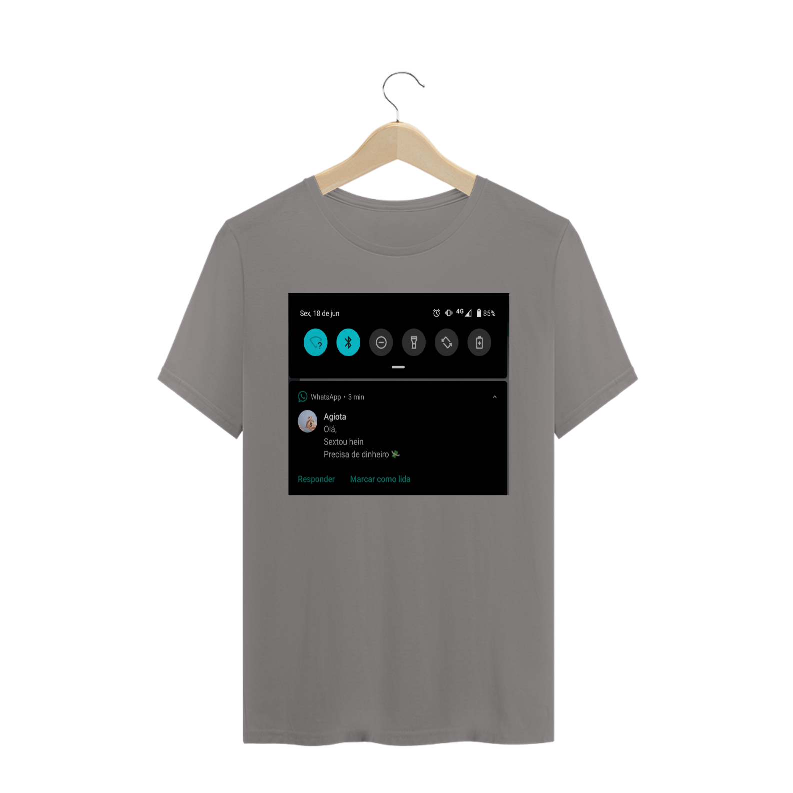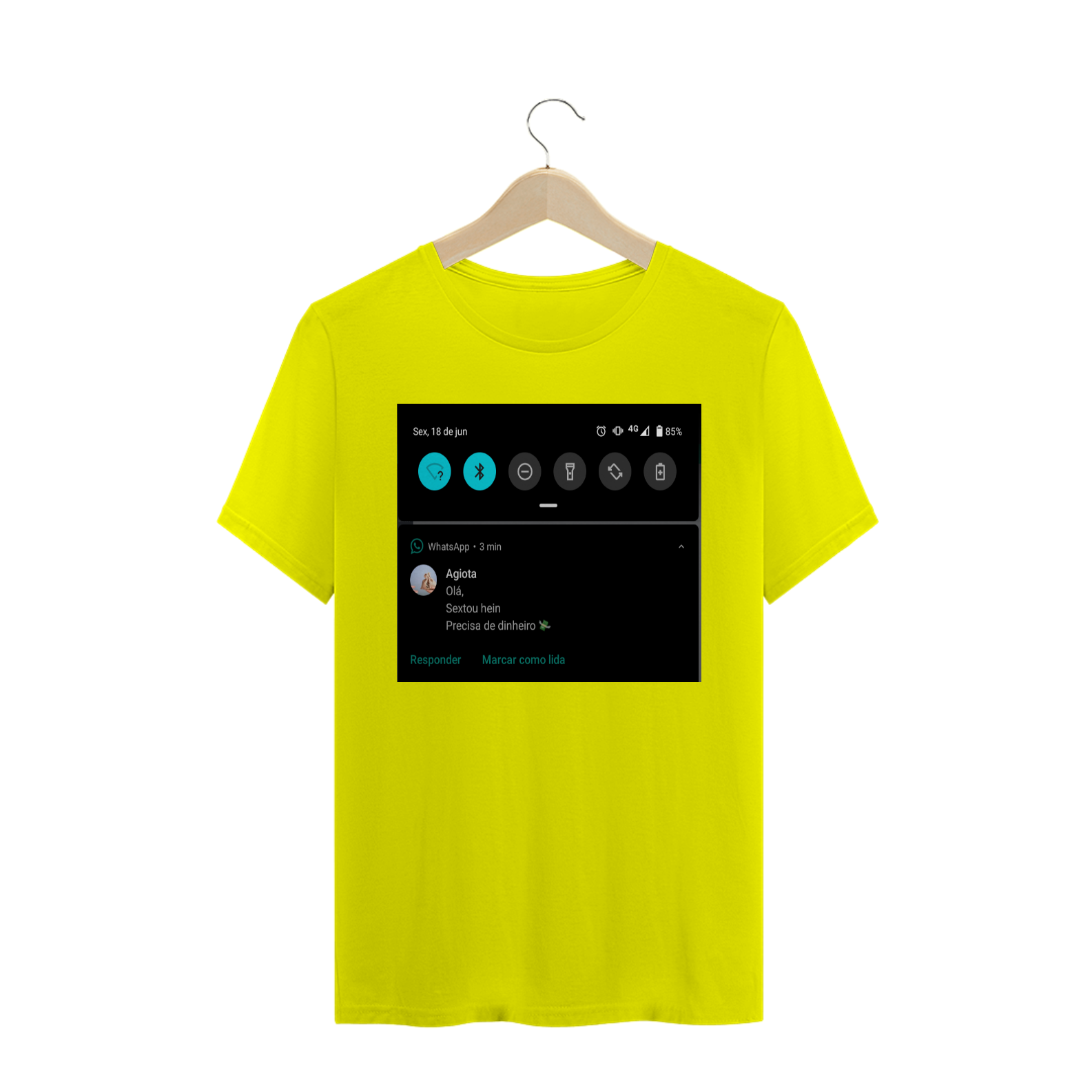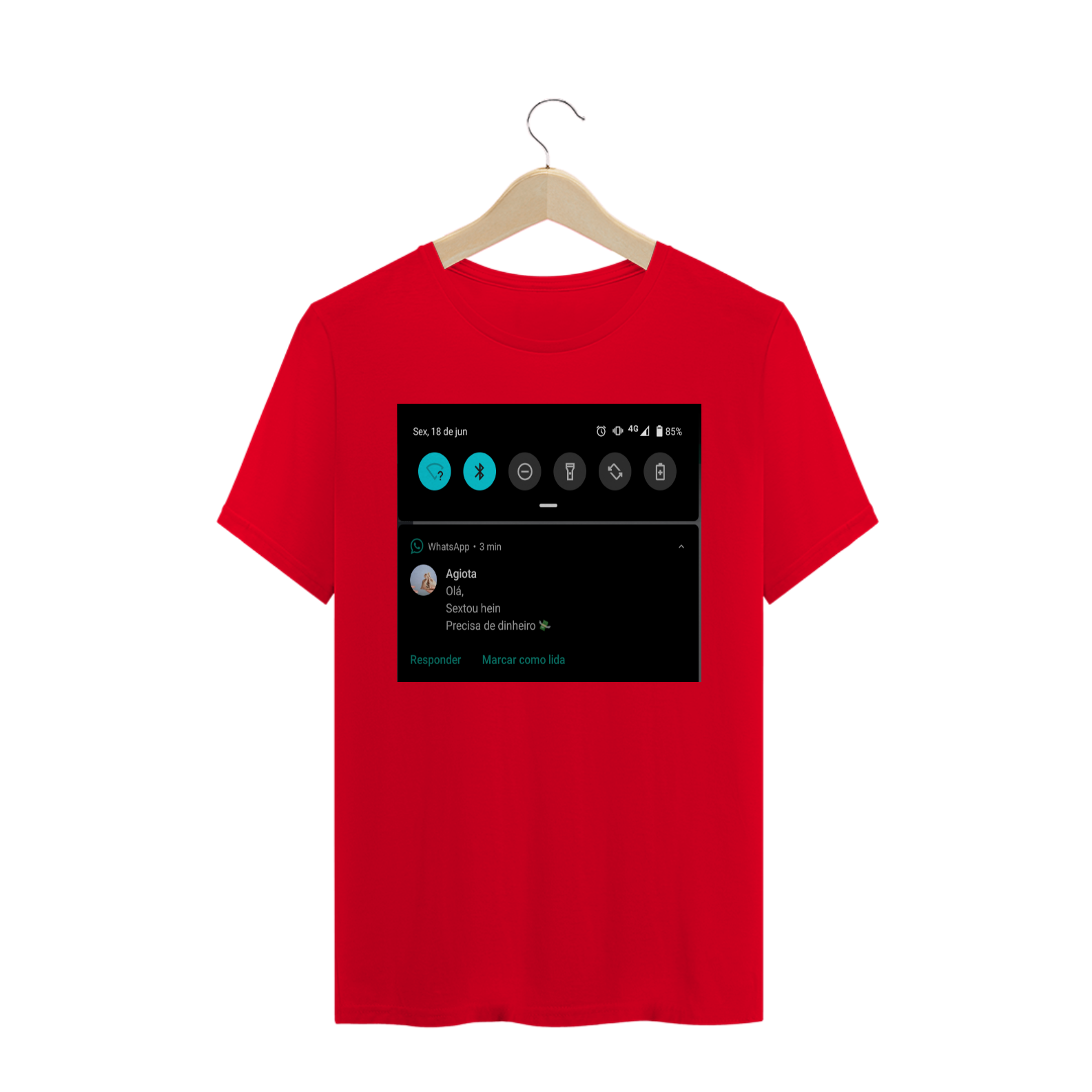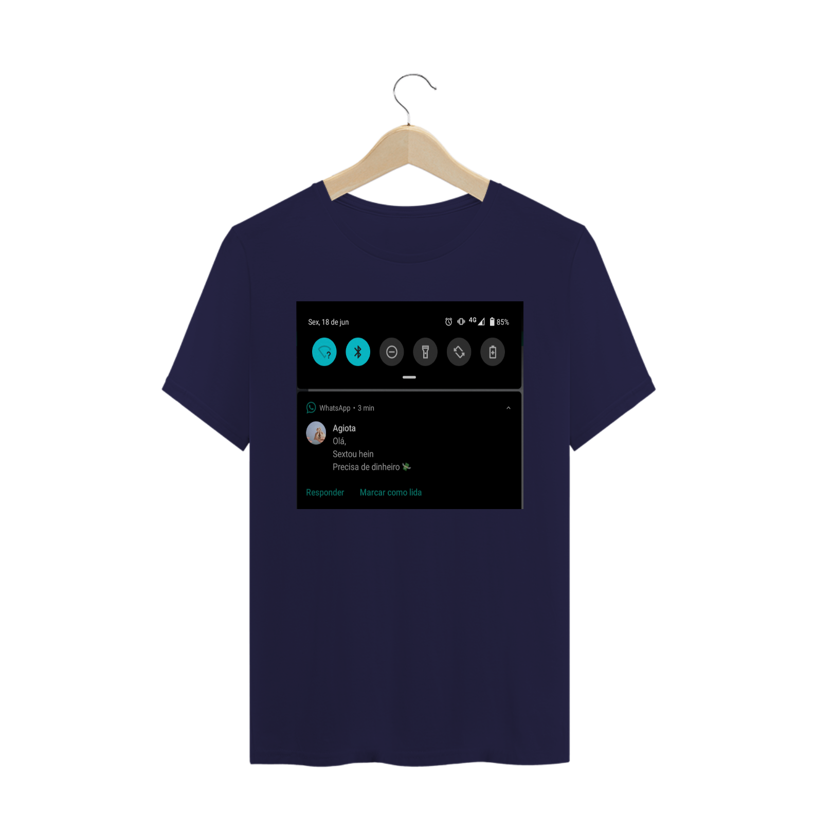 Cores do produto: Como cada tela de computador ou celular tem seu próprio jeito de mostrar cores, então a cor da sua camiseta e da estampa pode ser um pouco diferente do que você viu online.