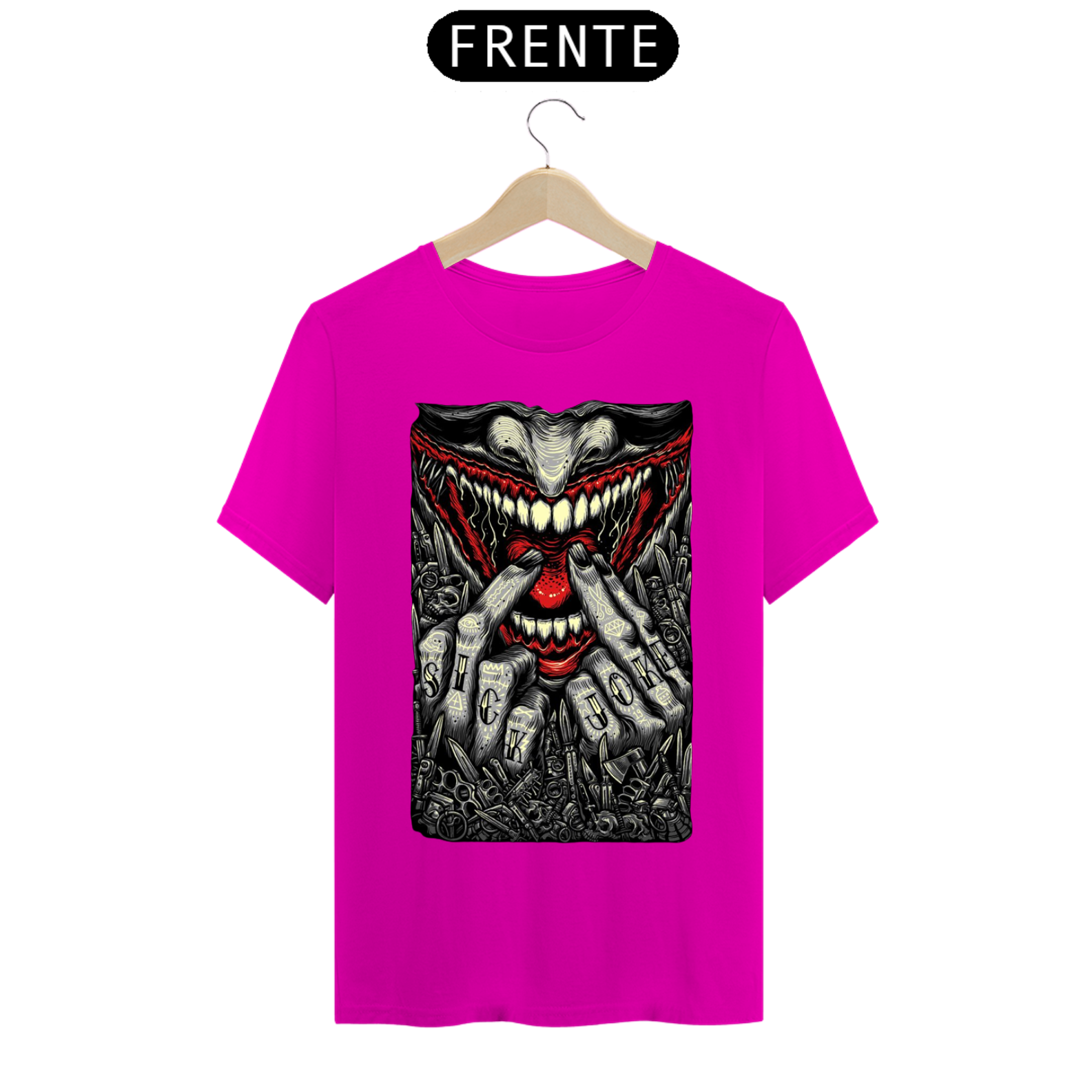 Cores do produto: Como cada tela de computador ou celular tem seu próprio jeito de mostrar cores, então a cor da sua camiseta e da estampa pode ser um pouco diferente do que você viu online.