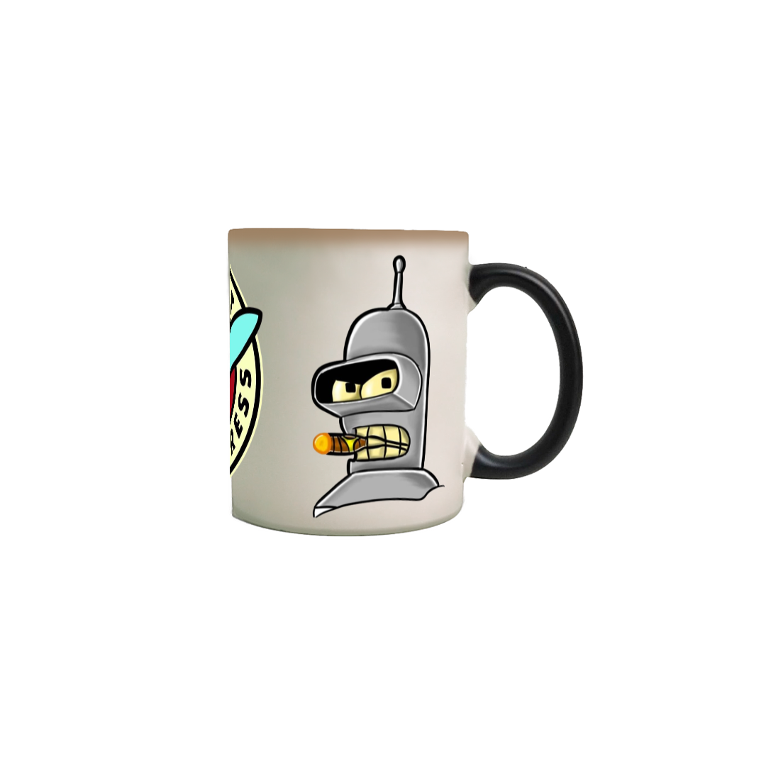 Transforme sua bebida quente com a Caneca Mágica Patrulheiro Bender! Quando aquecida, revela Bender em ação como o melhor patrulheiro do futuro. Ideal para fãs de Futurama, é perfeita para café, chá ou qualquer bebida que mereça uma dose extra de diversão intergaláctica!