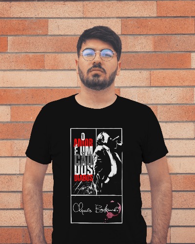Para os amantes da literatura visceral e autêntica, esta camiseta traz a icônica frase 'O amor é um cão dos diabos', do lendário Charles Bukowski. Mais que uma citação, ela carrega o espírito de uma escrita crua, intensa e repleta de verdades sobre a vida e o amor.
