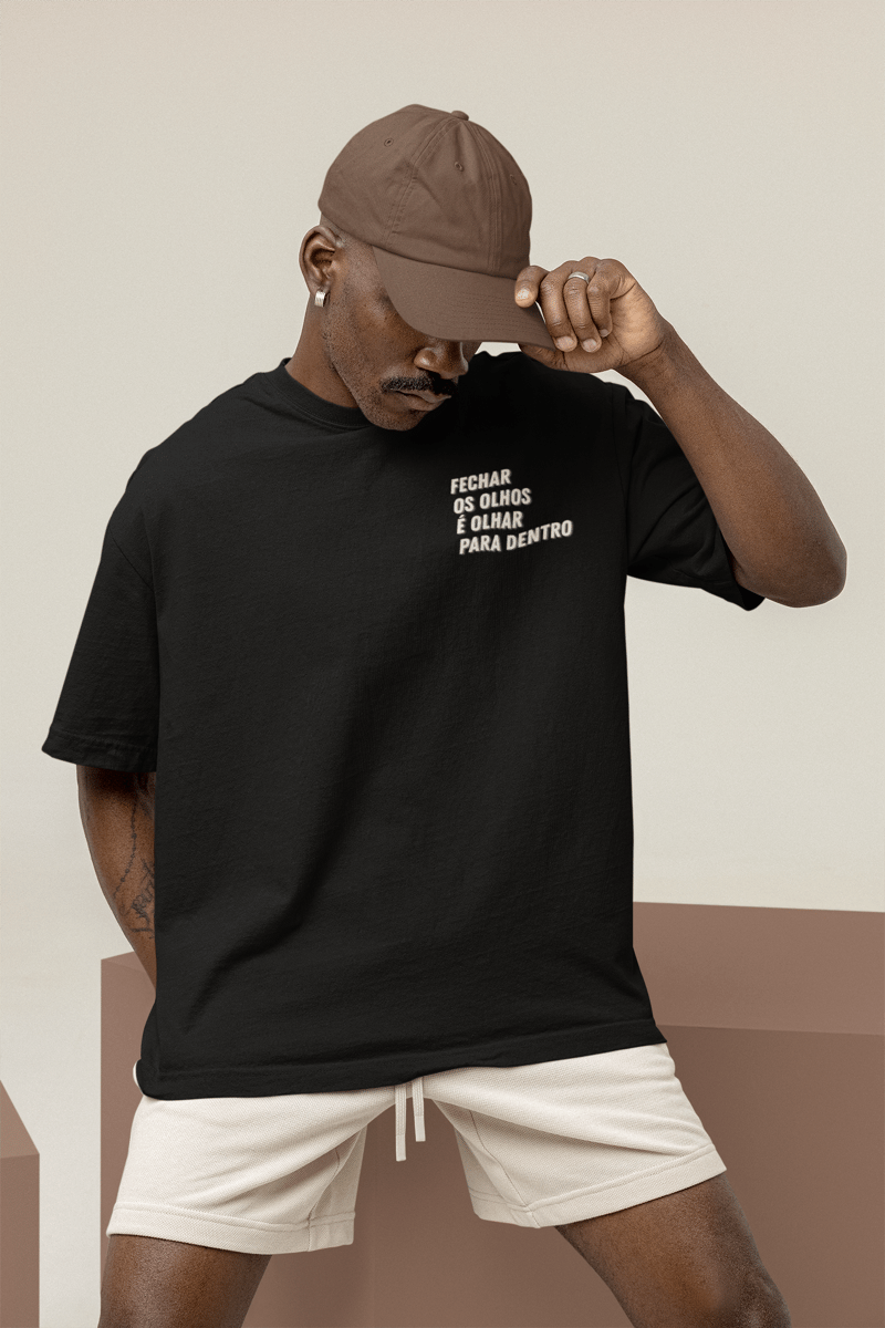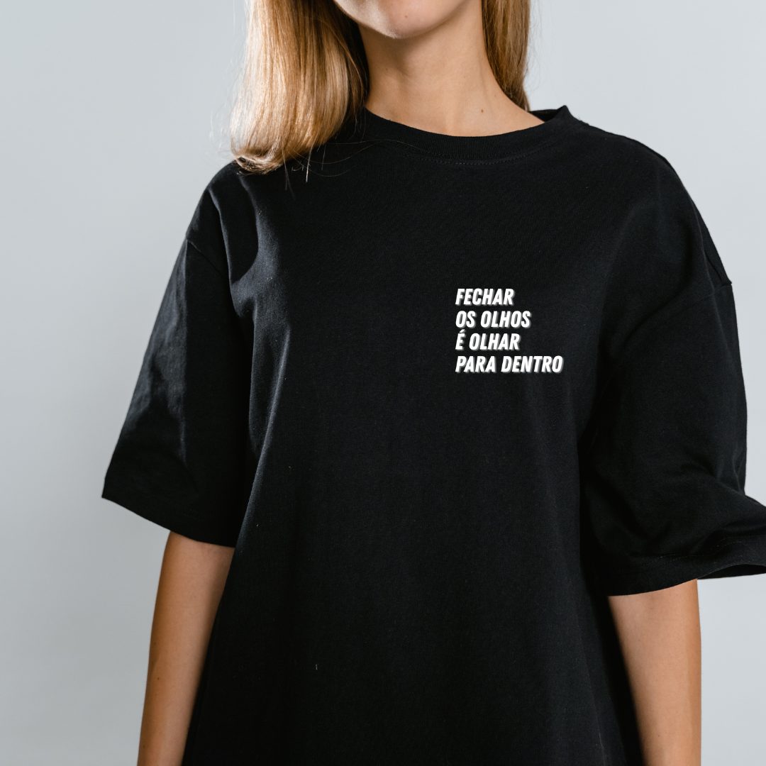 Camiseta inspirada no poema "Dentro", de 2019, e que consta nas fotos das camisetas.