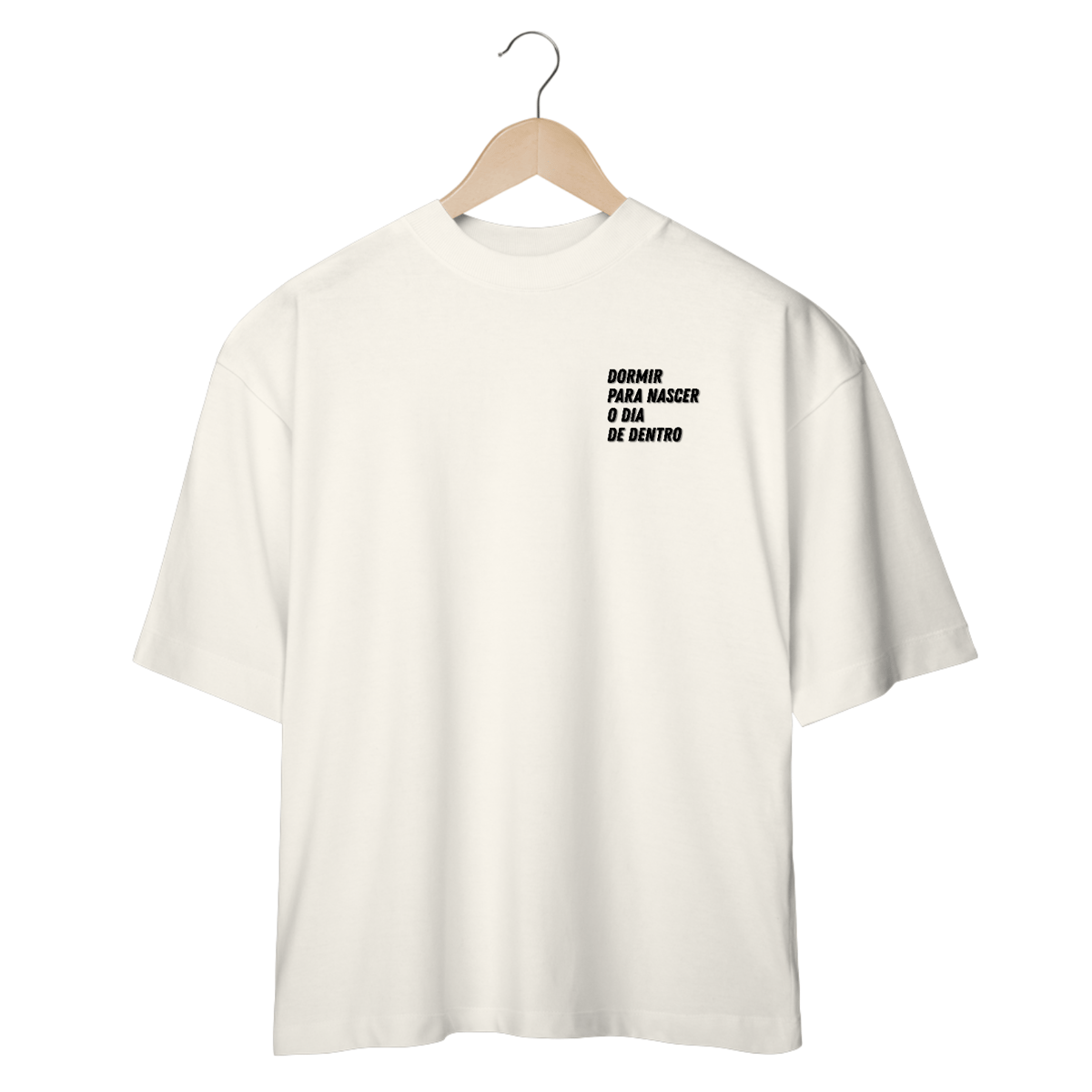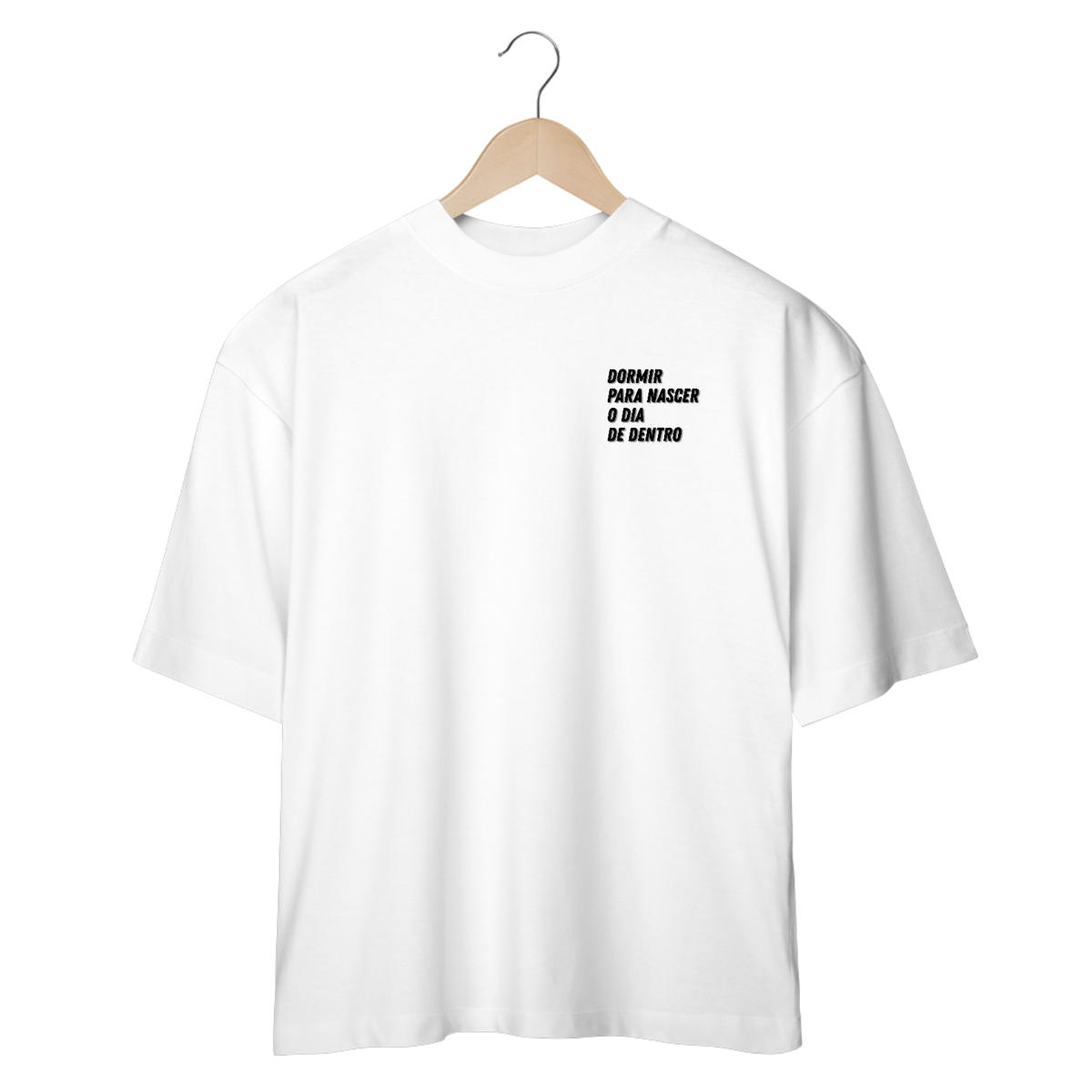 Camiseta inspirada no poema "Dentro", de 2019, e que consta nas fotos das camisetas.