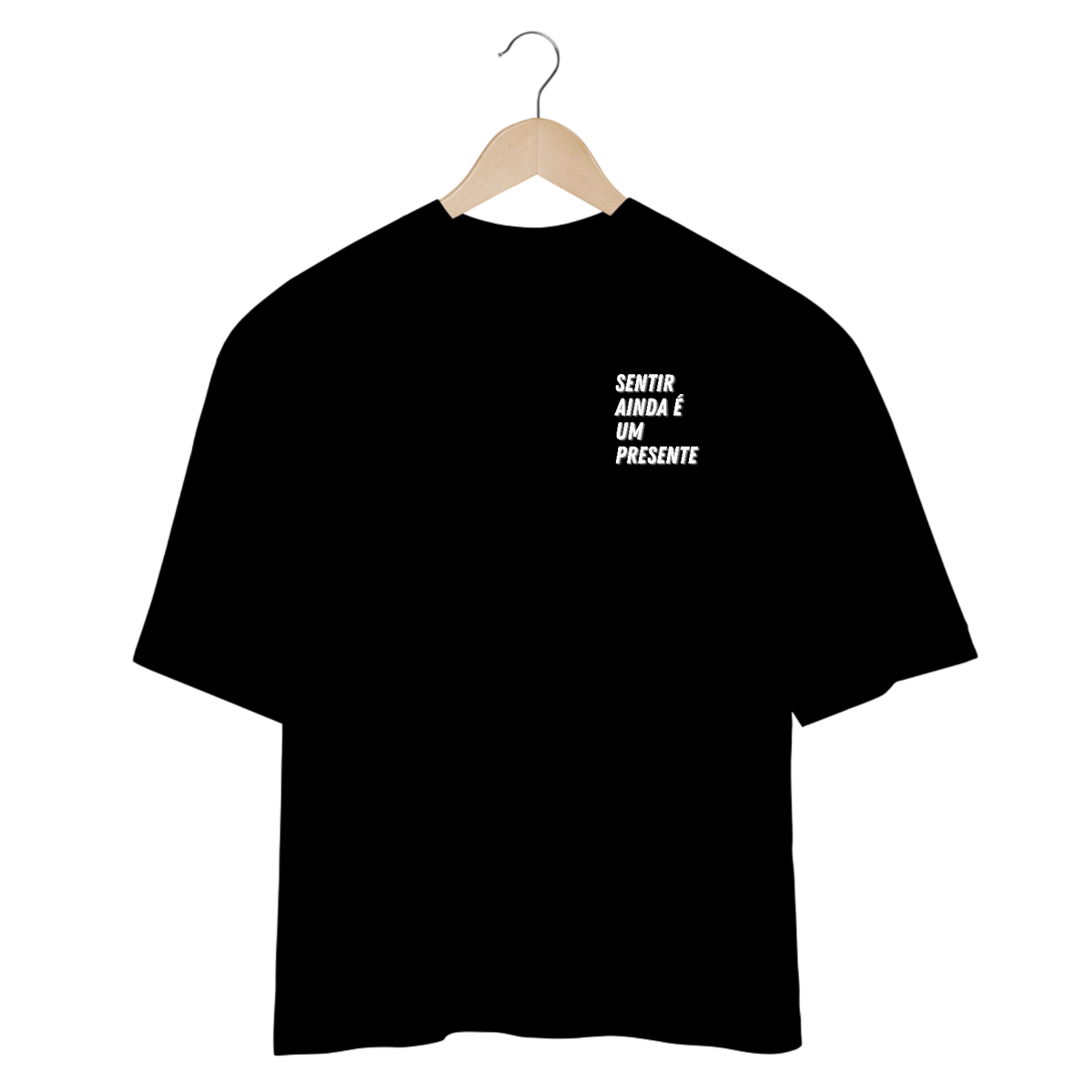 Camiseta inspirada no poema "Um presente", de 2019, e que consta nas fotos das camisetas.