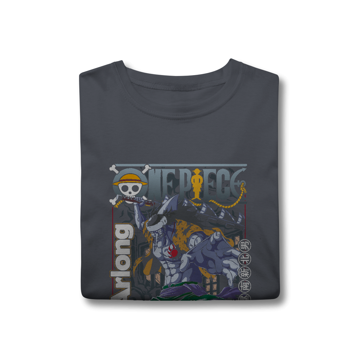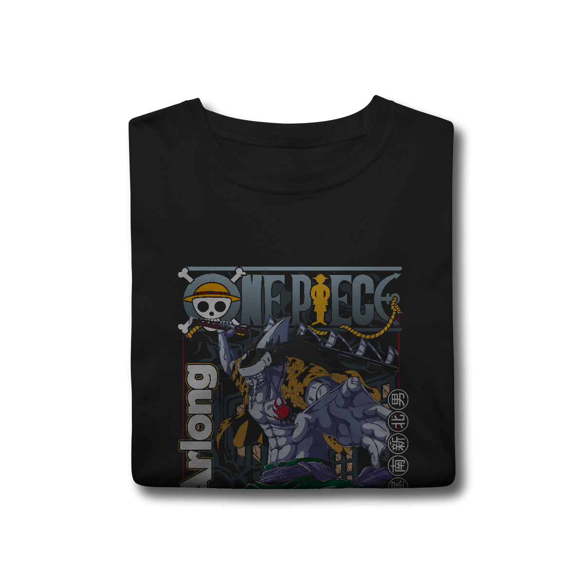 A estampa do Arlong One Piece é impressa em alta definição, com cores vibrantes e detalhes que capturam a personalidade forte e a imponência do personagem, trazendo toda a intensidade do mundo One Piece para o seu visual.