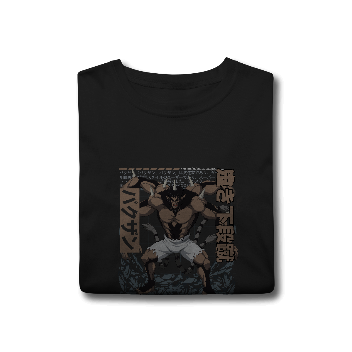 A estampa é produzida em alta definição, com cores vibrantes e detalhes fiéis ao design original do anime, capturando toda a ferocidade de Bakuzan após sua transformação como monstro da Associação.