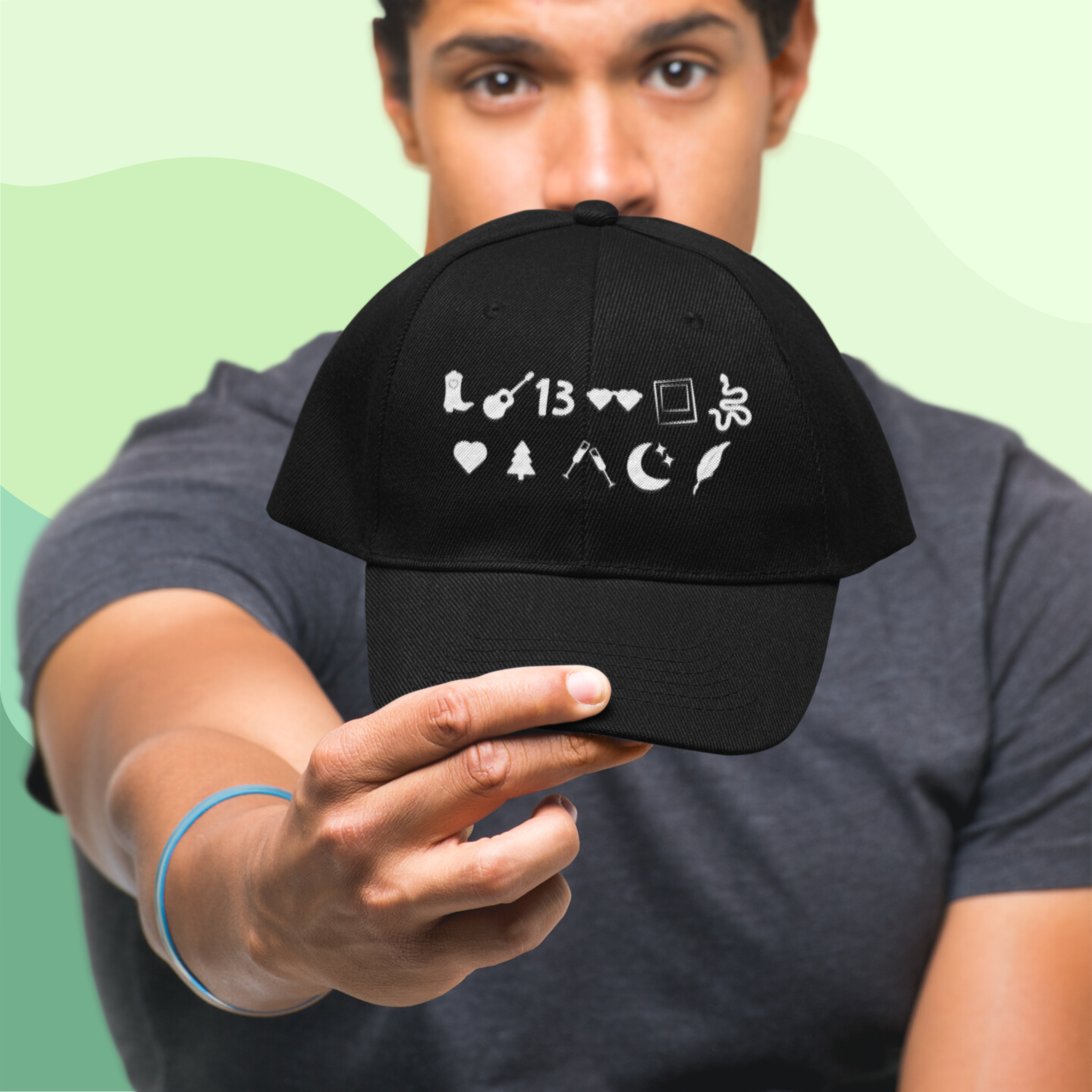 Arrase com o bonezinho que mostra as eras da TayTay de forma bem elegante e minimalista. Esse é pros Swifties que prezam pelo bom gosto e pela sofisticação.